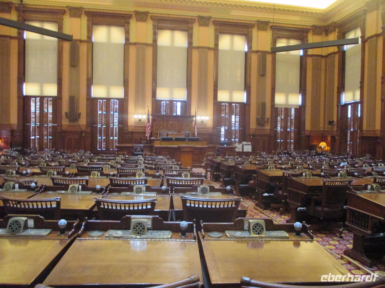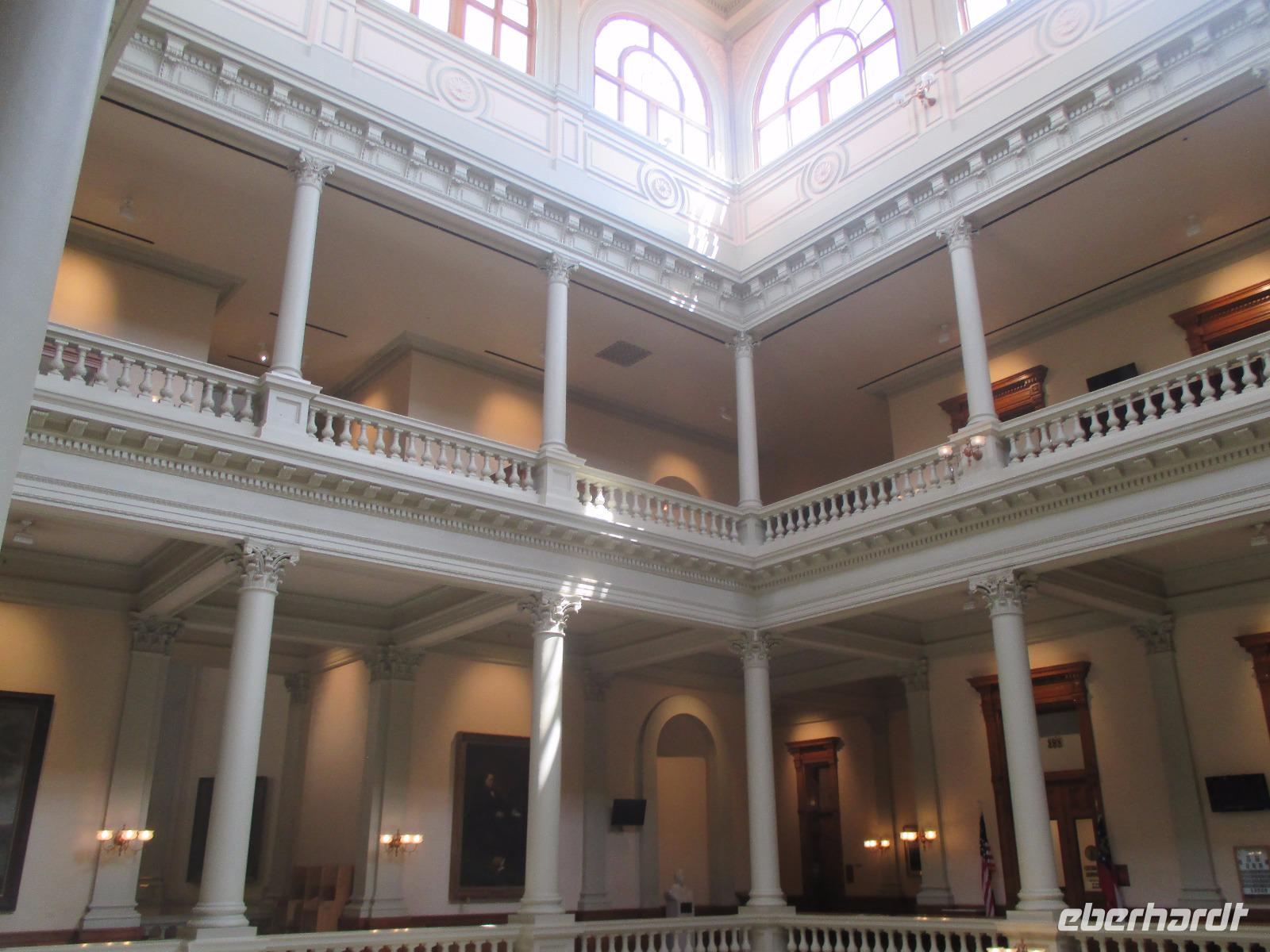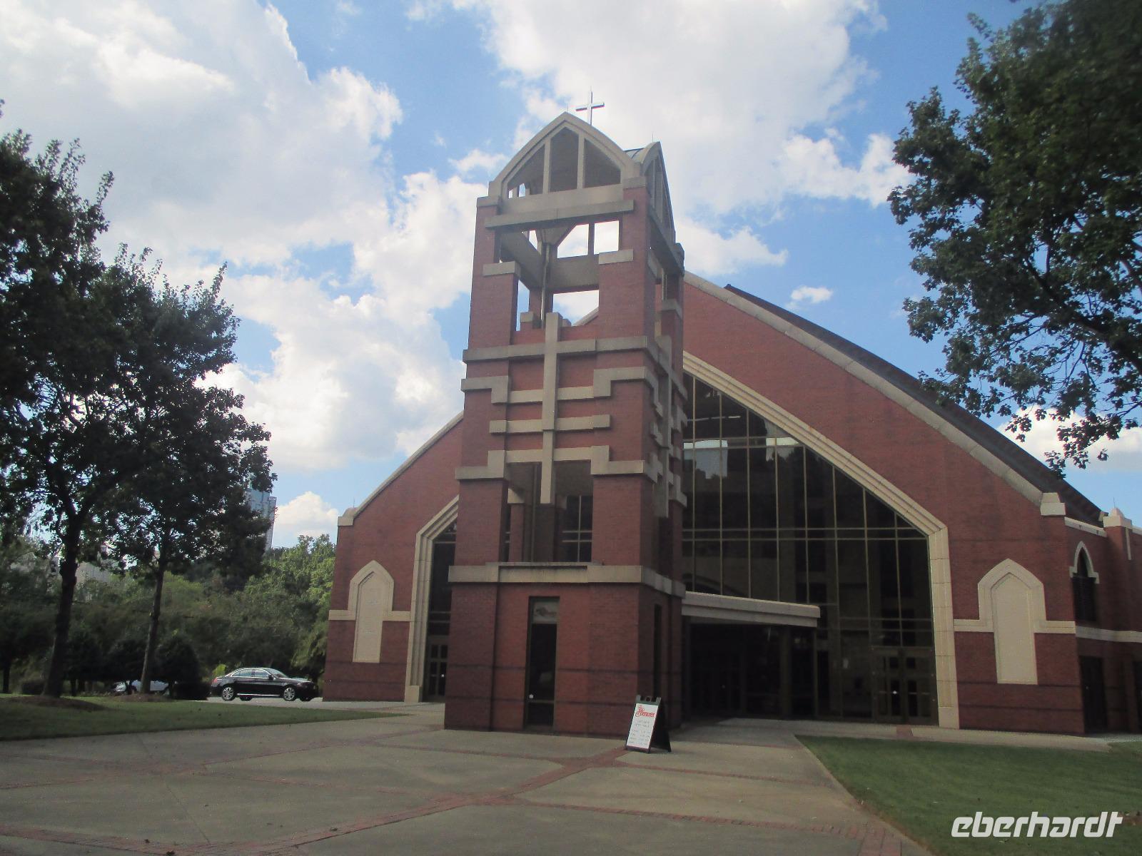 Leider ist heute unser letzer vollständiger Tag in den Südstaaten der USA angebrochen. Leo bringt uns in rund anderthalb Stunden Fahrt nach Atlanta. Schon von weitem sehen wir die Hochhäuser von Downtown Atlanta. Auf dem Highway kommen wir auch an der Statue des olympischen Feuers vorbei. Vorbei am Coca-Cola-Museum erreichen wir das Hauptgebäude von CNN. In der Eingangshalle gibt es zahlreiche Verkaufsstände für Nahrungsmittel sowie Souvenirläden. Von Marguerite erhalten wir ein mehrseitiges Formular mit der deutschen Erklärung zur Führung, die wir gleich erhalten werden, da eine Übersetzung leider nicht möglich ist. Nach einer sehr strengen Personenkontrolle fahren wir mit einer steilen Rolltreppe nach oben und kommen in einem Raum hinein, wo uns der Guide die verschiedenen CNN-Beschilderung (regional und international) erklärt als auch die Aufgabe des Aufnahmeleiters, der aus mehreren Bildern entscheiden muss, wann welches Bild auf Sendung geht. Der nächste Stopp ist in einem Studio, wo unser Guide den Teleprompter erklärt, warum die Nachrichtensprecher trotz Ablesens der Nachrichten zusätzlich die Blätter umblättern als auch die „green wall". Lustig wird es als ein Freiwilliger vor der grünen Wand einen blauen Umhang bekommt. Plötzlich sehen wir im Fernseher nur noch seinen Kopf. Unser nächster Halt ist der Newsroom, in dem wir von oben in das Großraumbüro hineinschauen können. Wir haben noch einige andere Stopps von Untersender von CNN und mittels unser Übersetzung auf Papier erhalten wir sogar noch mehr Informationen, als der englischsprachige Guide an die anderen Teilnehmer weitergibt. Danach gehen wir weiter zum Bus und kommen sowohl am Basketball- und Football-Station vorbei. Leider hat Atlanta nicht viel zu bieten und daher fahren wir weiter zum Kapital. Maguerite schlägt vor, unsere Pässe mitzunehmen, damit wir versuchen, ins Innere des Kapitols zu kommen. Und wir haben auch Glück und dürfen hinein. Nach Pass- und Personenkontrolle erklärt sich ein netter Mann sogar dazu bereit, eine kleine Führung mit uns zu unternehmen. Er erklärt uns einige Bilder, die Bildung des Houses of Parliament und wir dürfen sogar in einen Sitzungssaal hinein. Die Möbel sind alle noch original aus dem 19. Jahrhundert. Er erklärt uns die Vorgehensweise hier und wir dürfen alle Fragen stellen, die uns einfallen. Wir sind beeindruckt. Nachdem sich der nette Mann verabschiedet hat, schauen wir uns noch die Ausstellung in der dritten Etage an. Unser nächster Programmpunt ist Martin Luther King. Wir halten an der Kirche, in der er seine Reden gehalten hat. Diese werden mittels eines Lautsprechers eingespielt und erzeugen bei uns Gänsehaut. Vorbei an seinem Grab führt uns Marguerite im Anschluss zu seinem Geburtshaus. Über die bekannten Shotgun-Häuser erreichen wir das Martin-Luther-King-Museum für die Bürgerrechtsbewegung. Zahlreiche Videos zu seinem Leben und seiner Beerdigung eingespielt und viele Plakate zu seiner Mission sind zu sehen. Nach einem Stopp an einem Hotel mit besonderer Architektur (das Hotel hat mehr als 47 Etagen die schief nach oben gebaut sind), checken wir in unserem Hotel ein. Leider müssen wir uns nun von Leo verabschieden, der zurück nach New Orleans fahren muss. Da wir bis zum Abendessen noch ein wenig Zeit haben, fahren Marguerite und ich auf Gästewünsch mit einigen Reiseteilnehmern zu einer Mall, um noch ein wenig zu shoppen. Unser Abschiedsabendessen nehmen wir im „Vom-Winde-verweht"-Restaurant Pittypat´s Porch ein. Und hier bekommen meine lieben Gäste auch, auf Wunsch, endlich ihre langersehnten Steaks;-)