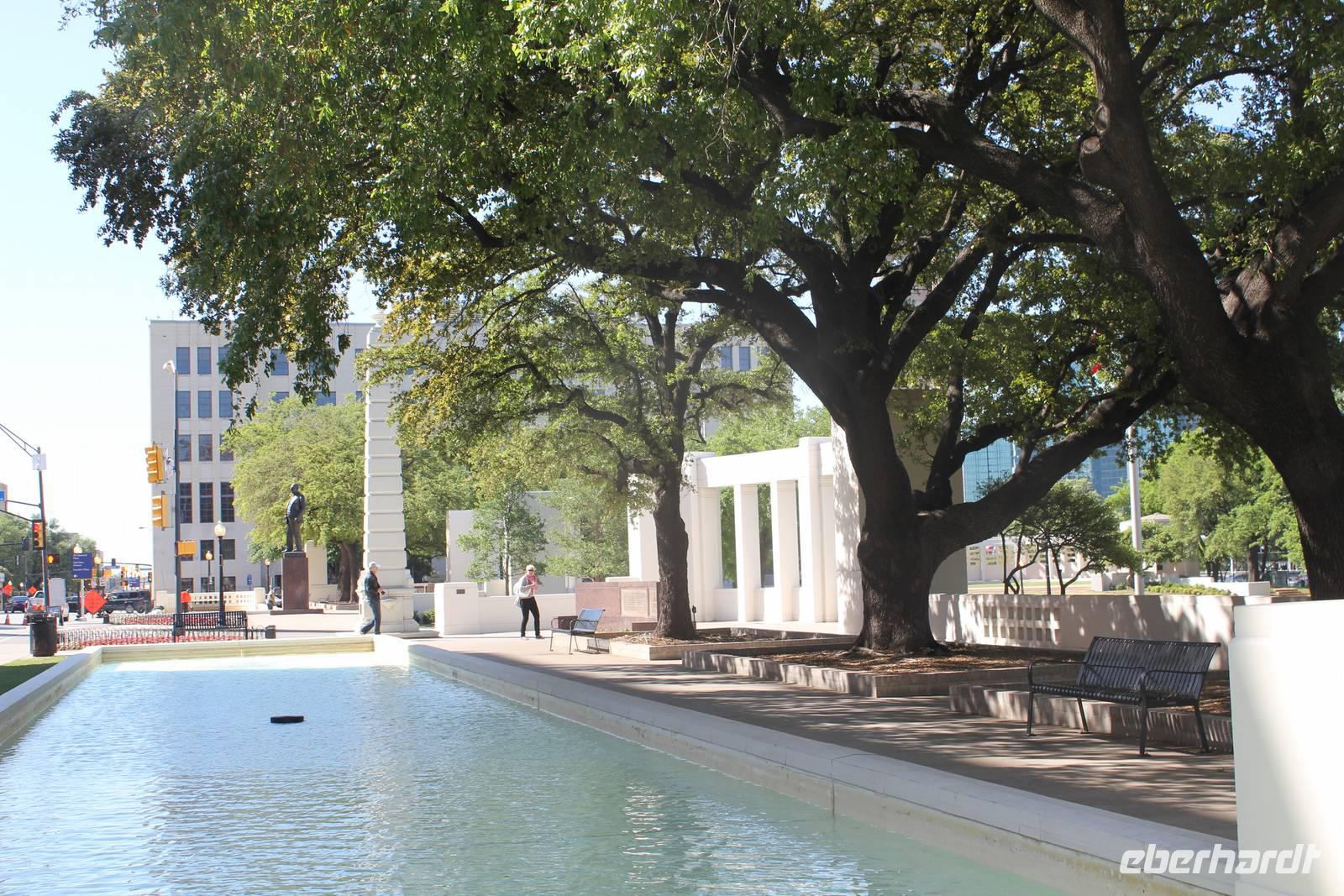 Im Anschluss besuchen wir nun das „Sixth Floor Museum" auf dem Dealey Plaza, das Gebäude von dem aus der 35. Präsident der USA, John F. Kennedy, am 22. November 1963 erschossen wurde. Zuvor schauen wir uns noch das weiße Kreuz auf dem Asphalt vor dem Museum an, das die Stelle markiert wo Kennedy in seiner Limousine von dem tödlichen Schuss getroffen wurde. Begleitet von deutschen Erklärungen wandeln wir durch das liebevoll und anschaulich gestaltete Museum und werden „Zeitzeuge" des schrecklichen Attentats auf den jüngsten je gewählten und ersten christlichen Präsidenten der Vereinigten Staaten. Damals beherbergte das Haus ein Schulbücherlager und aus dem Eckfenster der 6. Etage hat Oswald sein Opfer tödlich verletzt. Die Ausstellung beschäftigt sich eindrucksvoll mit dem Leben, dem Wahlkampf Kennedy's, sowie seinem Besuch in Texas und den verschiedenen Ermittlungsverfahren die es nach dem schrecklichen Ereignis gab.