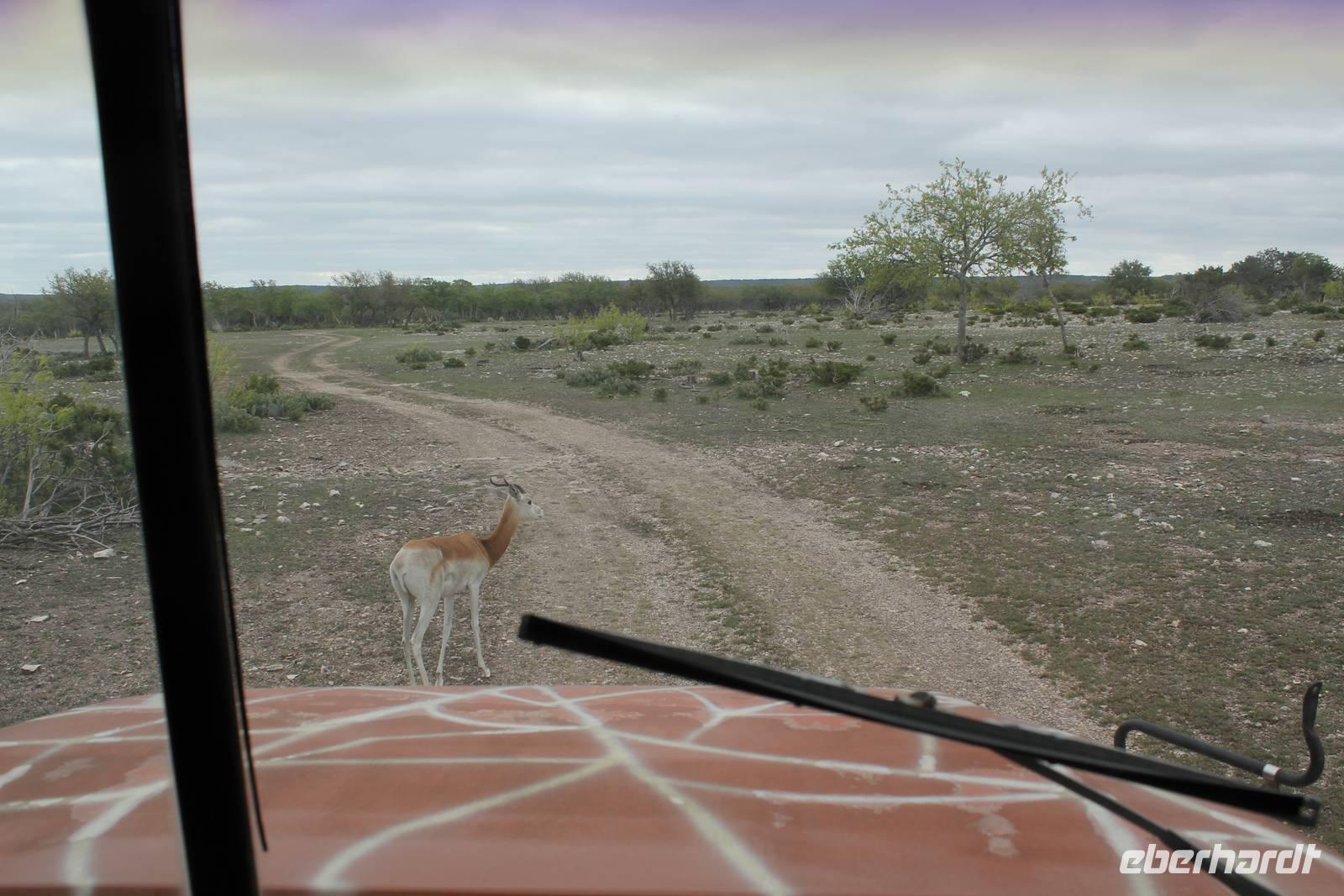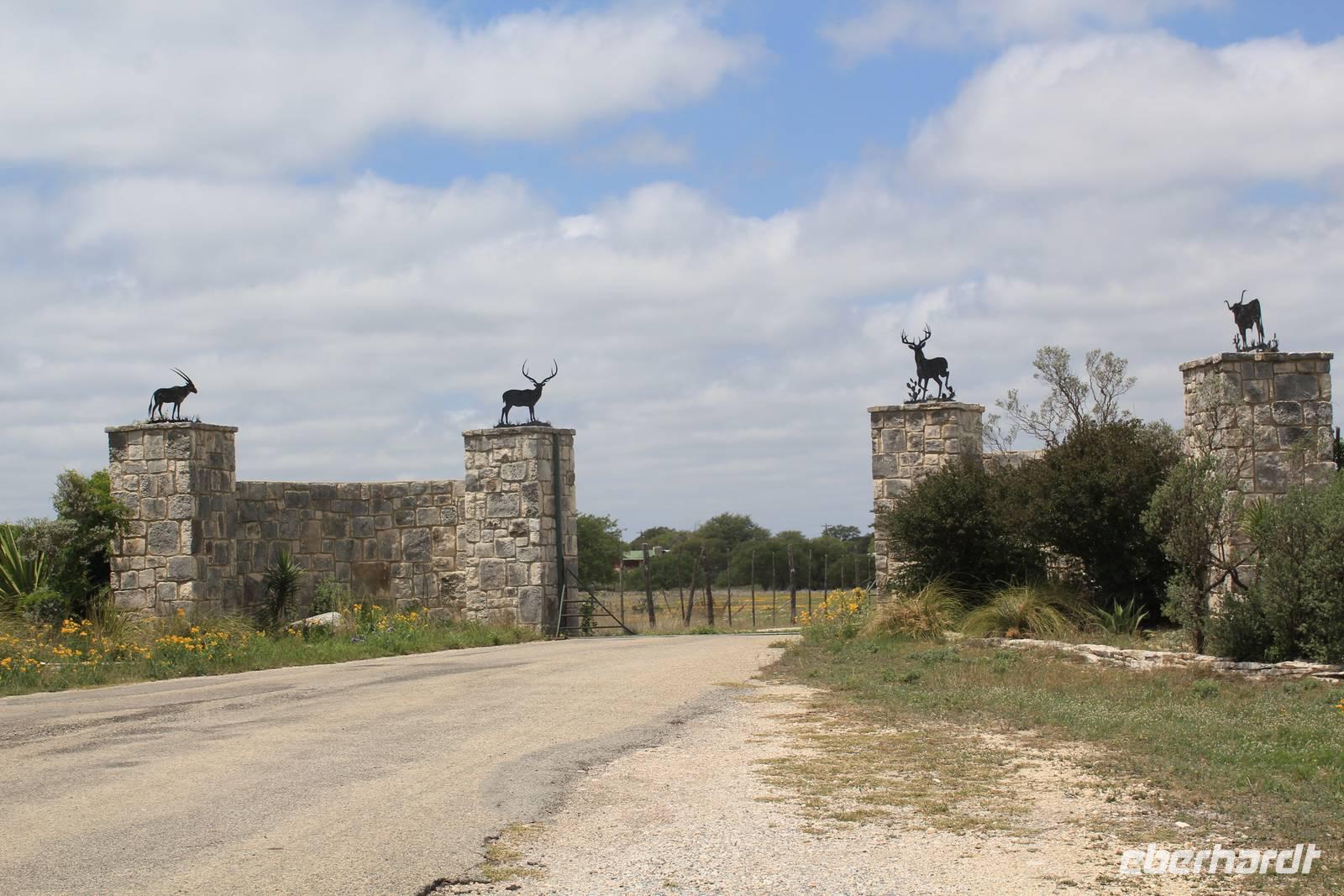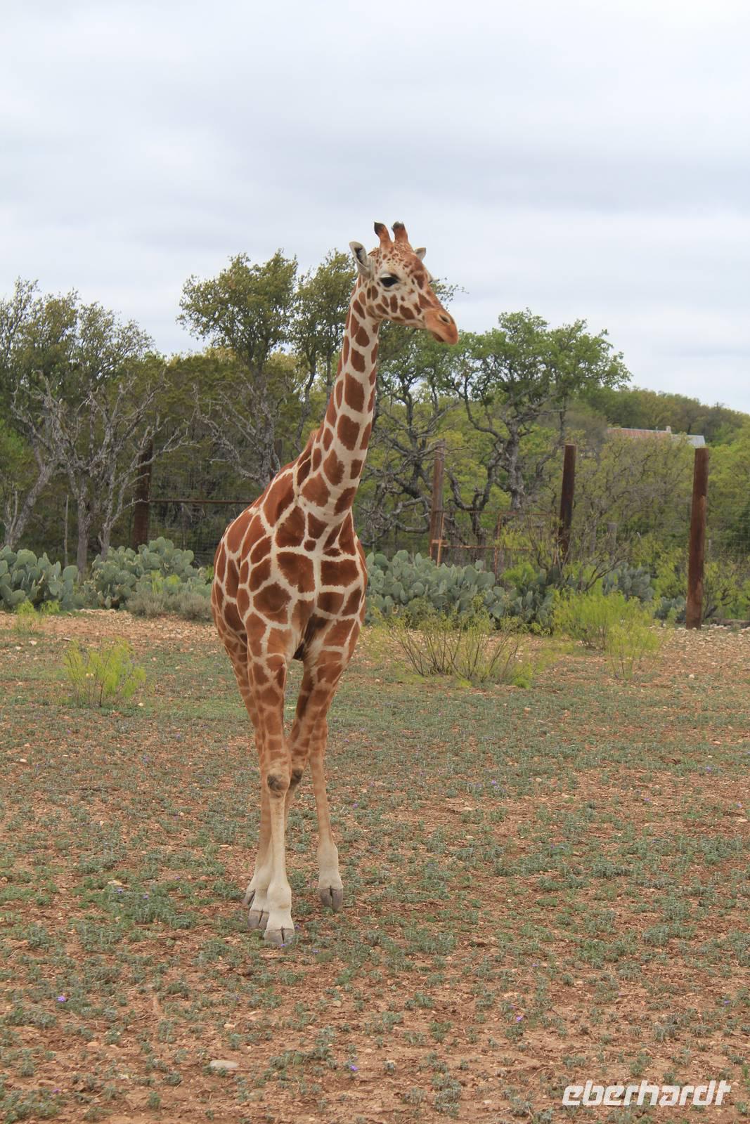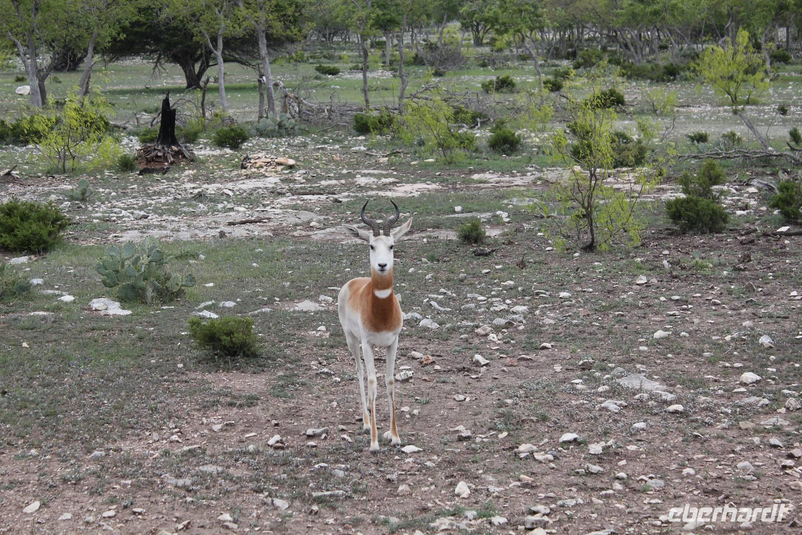 Ein traumhaftes Frühstück lässt uns heute energiegeladen in den Tag starten! Um 8:30 Uhr machen wie uns auf in Richtung „Y.O. Ranch", der ältesten familienbetriebenen und noch aktiven Ranch in Texas! 1880 kaufte Familie Schreiner die heutzutage 12.140 ha große Farm, die sich inzwischen von nur traditioneller Rinderzucht zur einer wahren Attraktion für Touristen und Einheimischen entwickelt hat: über 50 verschiedene Tierarten, darunter viele die vom Aussterben bedroht sind, haben hier ihr zu Hause und werden tagtäglich liebevoll umsorgt, leben aber dennoch in freier Wildbahn. Bevor wir das eigentliche Hauptgebäude der Ranch erreichen, holpern wir bereits eine halbe Stunde über das endlos weit scheinende Gelände und erspähen die ersten trägen Langhornrinder und Antilopen zwischen steinigen Feldern und Kaktusfeigen. Bei unserer Safari durch 2 Teile der Ranch, auf unbefestigten Wegen, werden wir nicht nur ordentlich durchgeschüttelt, sondern sehen auch zahlreiche wunderbare Tiere: verschiedene Antilopen- und Hirscharten, das mit der Flache aufgezogene Zebra Tobi, Damwild, Kudus und viele mehr! Unsere Fotoapparate laufen heiß, doch es sollte noch besser kommen: Gnus, Emus, Strauße und schließlich 3 Giraffen kommen wir mit unserem ausgedienten Schulbus ganz nah! Unsere Führerin Debbie füttert ihre Lieblinge mit Keksen und frischem Gemüse und bietet uns somit einmalige Fotomotive, wie zum Beispiel der leidenschaftliche Giraffenkuss für Matt! Auch der Strauß schaut neugierig in unser Busfenster und versucht mit seinem langen Hals über das Lenkrad hinweg einen Keks zu ergattern! Ein wahres Spektakel. Einige der hier lebenden exotischen Tiere aus Indien, Pakistan, China oder Afrika sind in ihren Herkunftsländern bereits ausgestorben. Nach dem Spaß stärken wir uns nun bei einem typisch texanischen Ranch-Mittagessen, mit Rindfleisch, braunen Bohnen und unglaublich leckerem selbstgemachten Mandel-Käsekuchen!