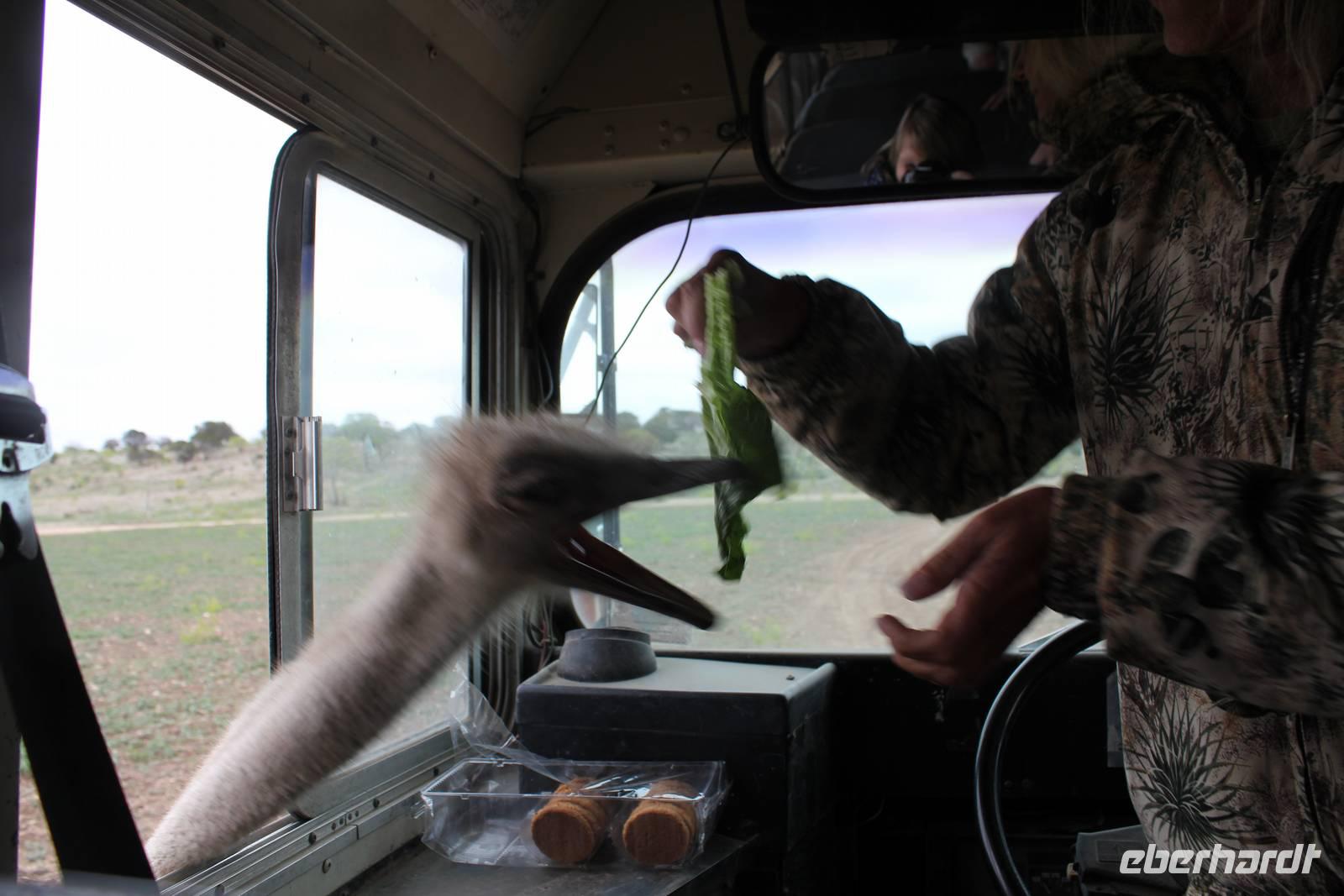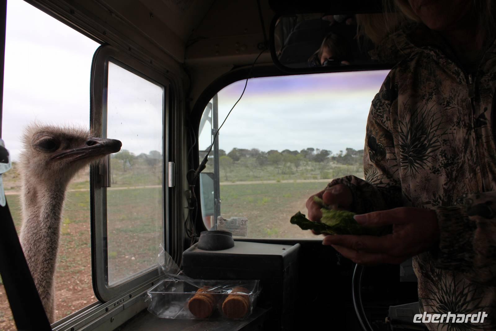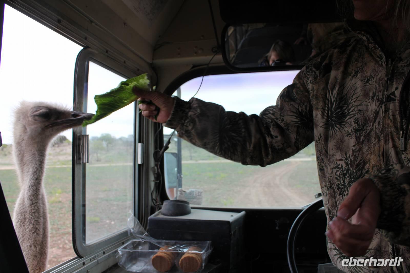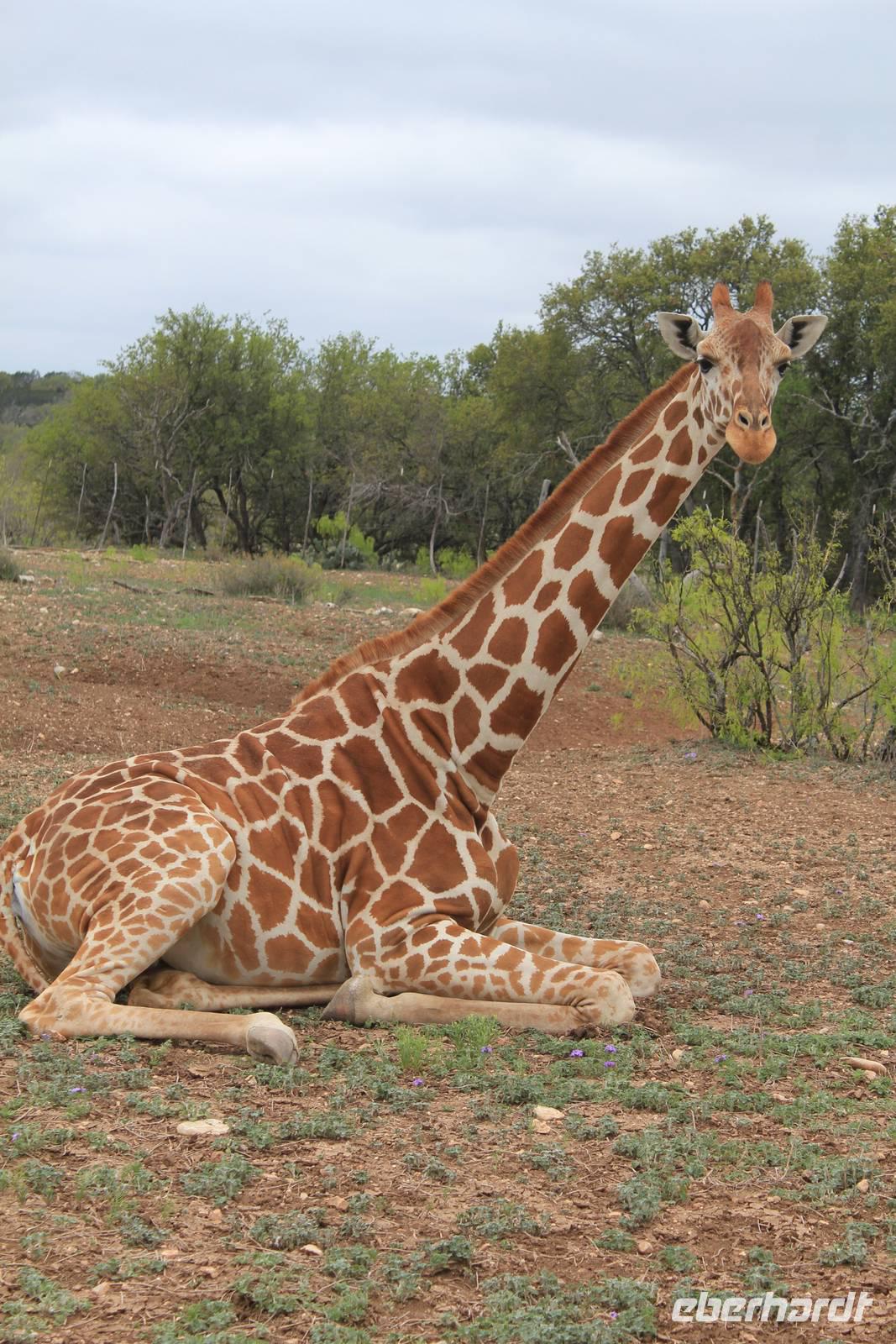 Ein traumhaftes Frühstück lässt uns heute energiegeladen in den Tag starten! Um 8:30 Uhr machen wie uns auf in Richtung „Y.O. Ranch", der ältesten familienbetriebenen und noch aktiven Ranch in Texas! 1880 kaufte Familie Schreiner die heutzutage 12.140 ha große Farm, die sich inzwischen von nur traditioneller Rinderzucht zur einer wahren Attraktion für Touristen und Einheimischen entwickelt hat: über 50 verschiedene Tierarten, darunter viele die vom Aussterben bedroht sind, haben hier ihr zu Hause und werden tagtäglich liebevoll umsorgt, leben aber dennoch in freier Wildbahn. Bevor wir das eigentliche Hauptgebäude der Ranch erreichen, holpern wir bereits eine halbe Stunde über das endlos weit scheinende Gelände und erspähen die ersten trägen Langhornrinder und Antilopen zwischen steinigen Feldern und Kaktusfeigen. Bei unserer Safari durch 2 Teile der Ranch, auf unbefestigten Wegen, werden wir nicht nur ordentlich durchgeschüttelt, sondern sehen auch zahlreiche wunderbare Tiere: verschiedene Antilopen- und Hirscharten, das mit der Flache aufgezogene Zebra Tobi, Damwild, Kudus und viele mehr! Unsere Fotoapparate laufen heiß, doch es sollte noch besser kommen: Gnus, Emus, Strauße und schließlich 3 Giraffen kommen wir mit unserem ausgedienten Schulbus ganz nah! Unsere Führerin Debbie füttert ihre Lieblinge mit Keksen und frischem Gemüse und bietet uns somit einmalige Fotomotive, wie zum Beispiel der leidenschaftliche Giraffenkuss für Matt! Auch der Strauß schaut neugierig in unser Busfenster und versucht mit seinem langen Hals über das Lenkrad hinweg einen Keks zu ergattern! Ein wahres Spektakel. Einige der hier lebenden exotischen Tiere aus Indien, Pakistan, China oder Afrika sind in ihren Herkunftsländern bereits ausgestorben. Nach dem Spaß stärken wir uns nun bei einem typisch texanischen Ranch-Mittagessen, mit Rindfleisch, braunen Bohnen und unglaublich leckerem selbstgemachten Mandel-Käsekuchen!