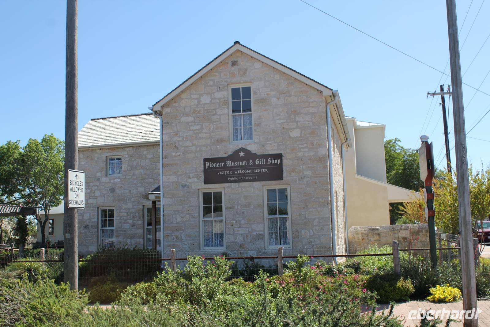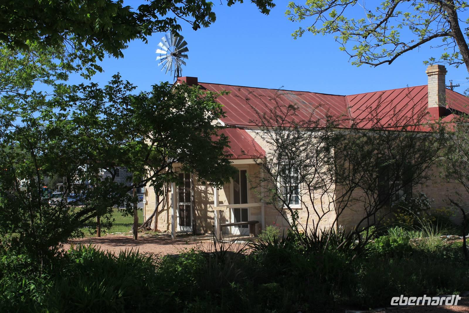 Unser nächster Programmpunkt ist ein Stück deutsche Kultur mitten in den USA! Die kleine Stadt Fredericksburg, heute um die 7.000 Einwohner und idyllisch eingebettet inmitten des texanischen Hügellandes (Hill Country), wurde einst vom Baron von Meusebach gegründet und noch heute ist es der Stadt ein großes Anliegen, ihr deutsches Kulturgut zu pflegen. Zunächst führt uns ein liebenswerter 90-jähriger Deutsch-Amerikaner durch die kleine Pionierkirche und erläutert uns die Geschichte von Fredericksburg. Auch im hübsch angelegten Pioniermuseum erfahren wir anschließend von einer echten deutschstämmigen älteren Dame, die uns vor allem von ihren eigenen Vorfahren berichtet, mehr über die ersten Siedler von Fredericksburg im Jahr 1845/46.