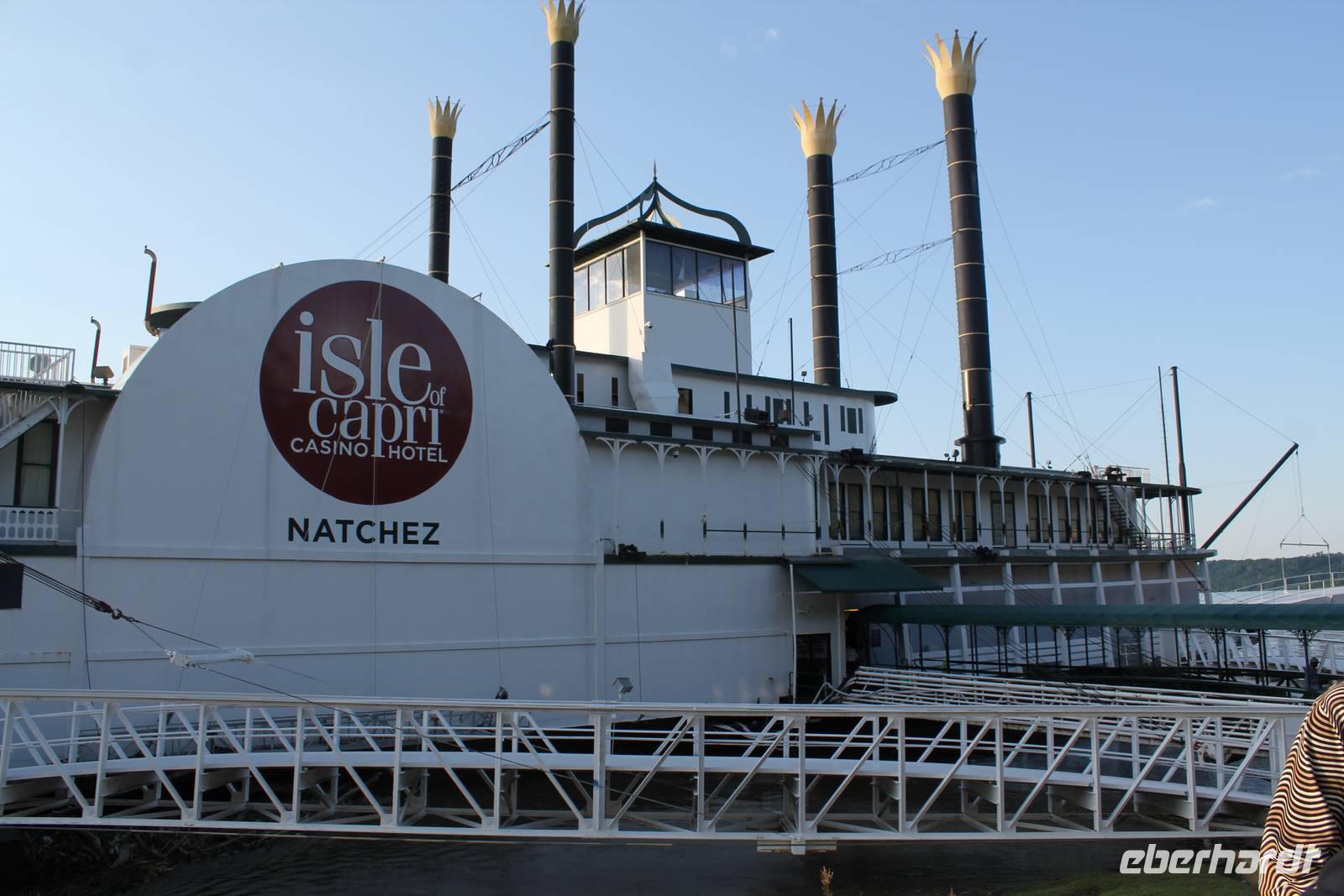 So schunkeln wir, untermalt von Musik von Johnny Cash durch ländliche Regionen in Richtung Natchez. Direkt am Ufer des gewaltigen Mississippi liegt die 20.000-Einwohner-Stadt, die sich besonders durch seine bekannten „Antebellum-Häuser" auszeichnet. Doch zunächst beziehen wir unser Hotel, das idyllisch auf einem Hügel gelegen ist und einen traumhaften Ausblick über den Fluss bietet. Später schauen wir uns das überschaubare Städtchen bei einer Rundfahrt noch etwas genauer an. Der Stadtname geht auf die Natchez-Indianer zurück, die 1729 die französische Befestigung der europäischen Gründer zerstörten. Nur ein Jahr später schlugen die Franzosen zurück und rotteten die Natchez bei einer Vergeltungsaktion aus. Später ließen sich alle namenhaften „Baumwollbarone" in Natchez nieder, bauten repräsentative Villen, die auch den Bürgerkrieg überdauerten und heute zahlreiche Touristen anziehen. Tolle, mit Säulen verzierte Herrenhäuser sehen wir bei unserer Rundfahrt, die uns einen lebhaften Eindruck in die Geschichte der Region vermitteln. Nach einem kurzen Fotostopp am Ufer des Mississippi fahren wir zurück zum Hotel, wo wir den Abend feuchtfröhlich ausklingen lassen wollen! Nach dem Genießen unseres ersten Getränks, der letzten warmen Sonnenstrahlen des Tages und der einen oder anderen kulinarischen Kleinigkeit, wird es uns doch etwas kühl und so verziehen wir uns ins Innere. Das lokale Mississippi-Bier schmeckt aber auch gut und so werden wir heute alle beglückt und selig in unseren schönen Hotelbetten einschlafen. (423 km)