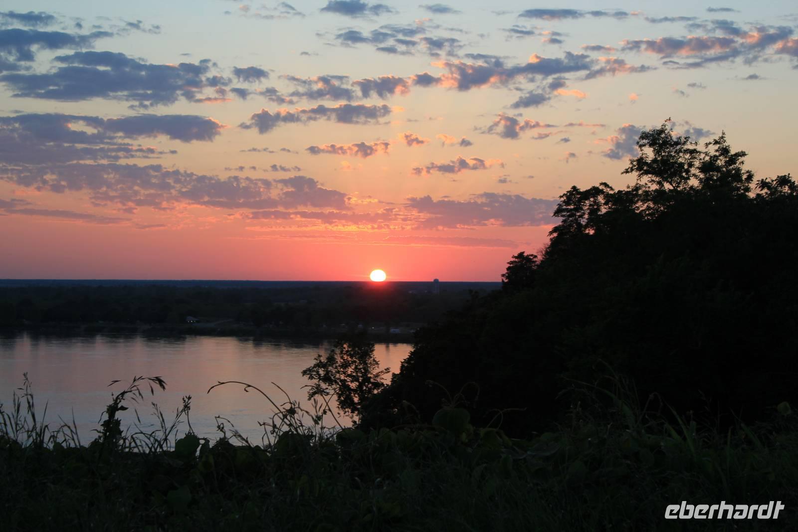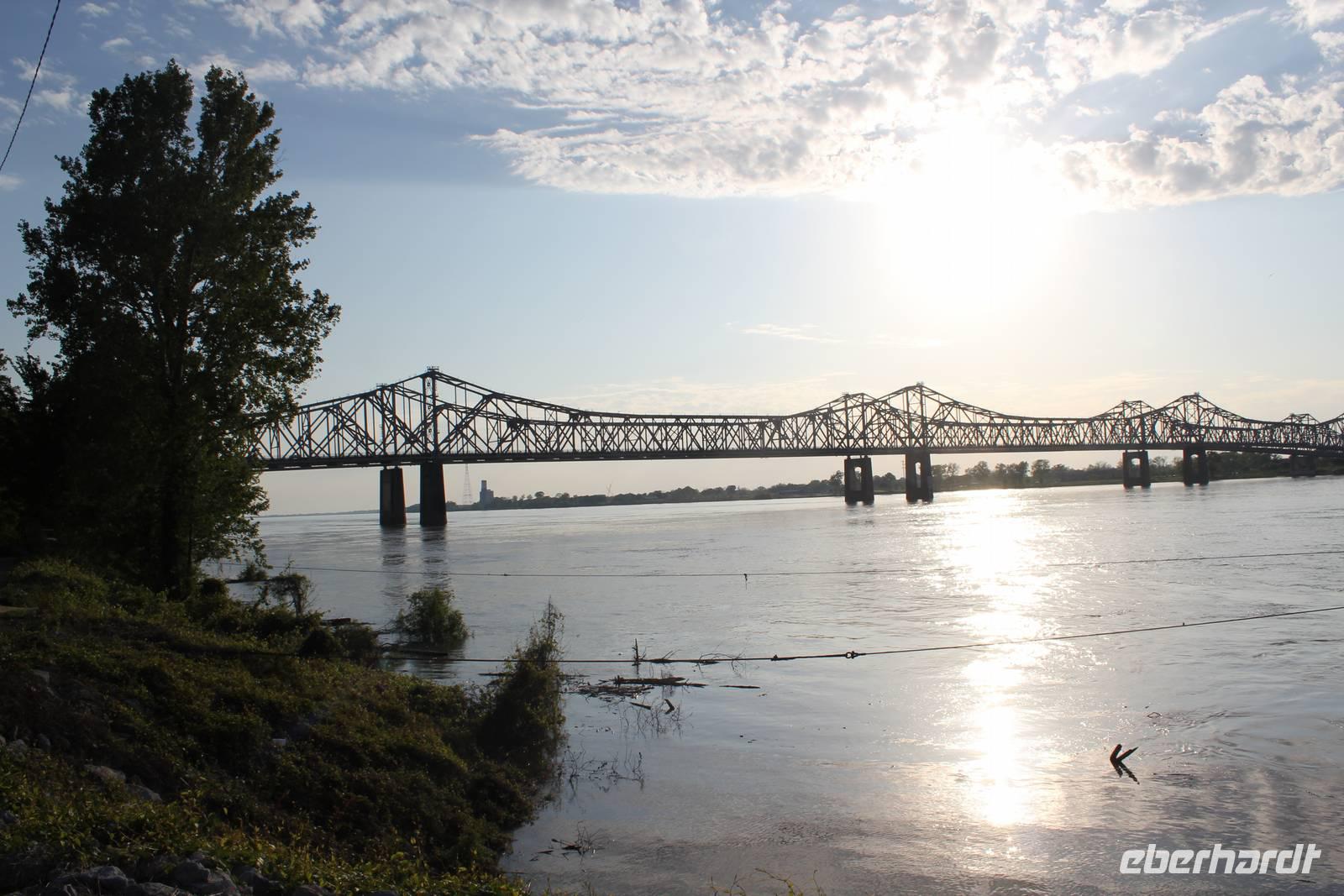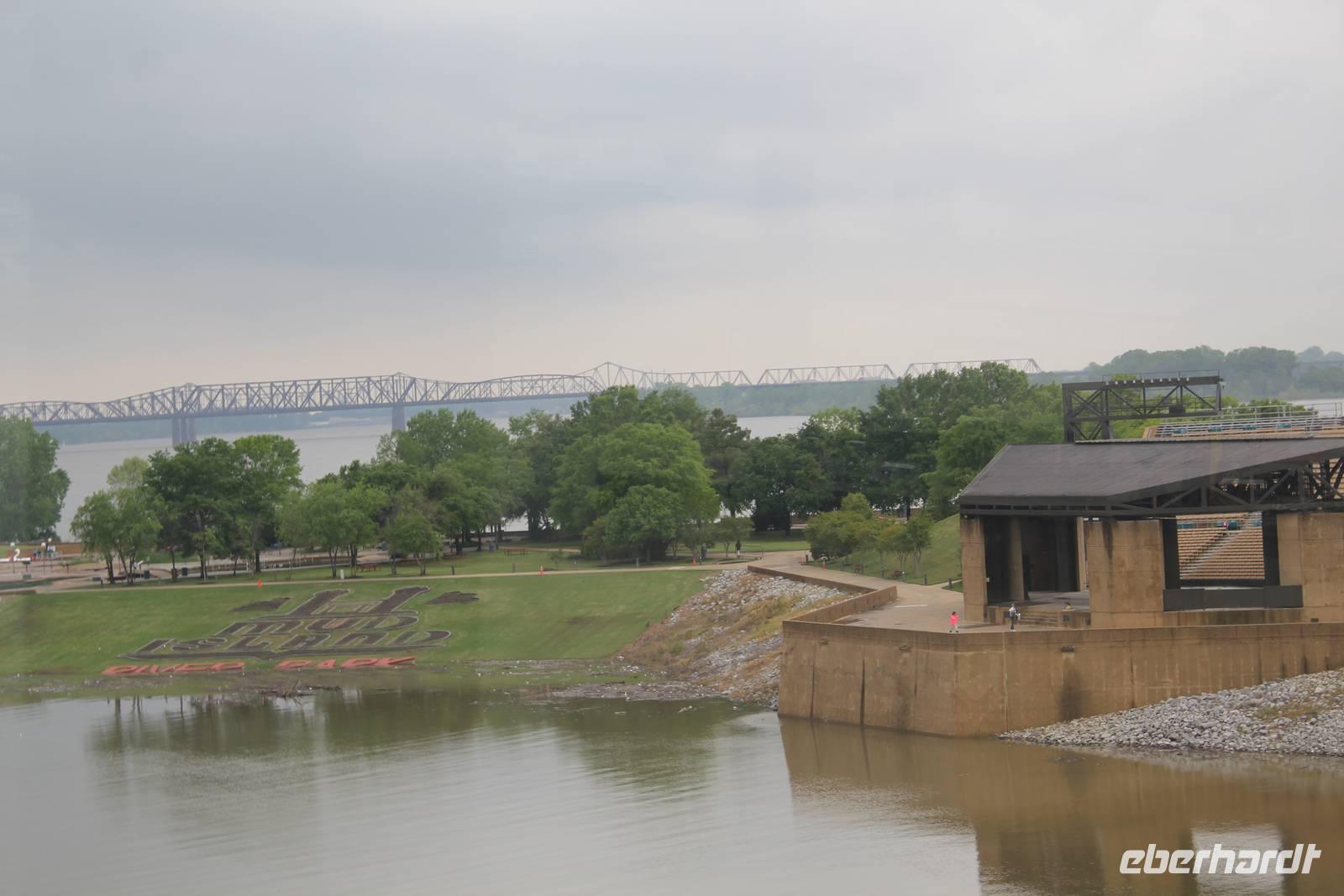 Unser amerikanisches Frühstück bekommen wir heute serviert, mit Blick auf den sich im Sonnenlicht spiegelnden Mississippi. Unser Tagesziel ist heute das „Home of the Blues", wie sich die Stadt Memphis sei 1977 offiziell nennen darf. Nachdem wir mit unserem inzwischen gut ausgebildeten Walmart-Radar einen solchen geortet haben, kaufen wir für unser heutiges Picknick ein, denn wir wollen unsere Mittagspause im Grünen verbringen! Unsere Fahrt führt uns entlang des historischen Natchez-Trace durch die Wälder von Mississippi. Seit etwa 3 Jahrtausenden besteht der einstige Handelspfad der Indianer und führte diese über 714 km von Natchez bis kurz vor Nashville, Tennessee. Die Bootsleute fuhren damals mit ihren vollbeladenen Kähnen auf dem Mississippi abwärts. Im Mündungsgebiet verkauften sie ihre Waren und Boote und machten sich zu Fuß auf den Rückweg, für den sie etwa 4 Wochen brauchten. Nach den Natchez-, den Chickasaw- und den Choctawas-Indianern machen nun wir uns auf in Richtung des nächsten Bundesstaates auf unserer Reise.