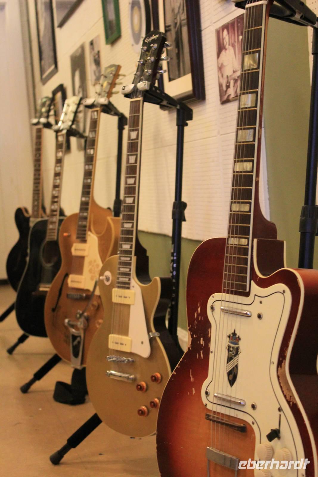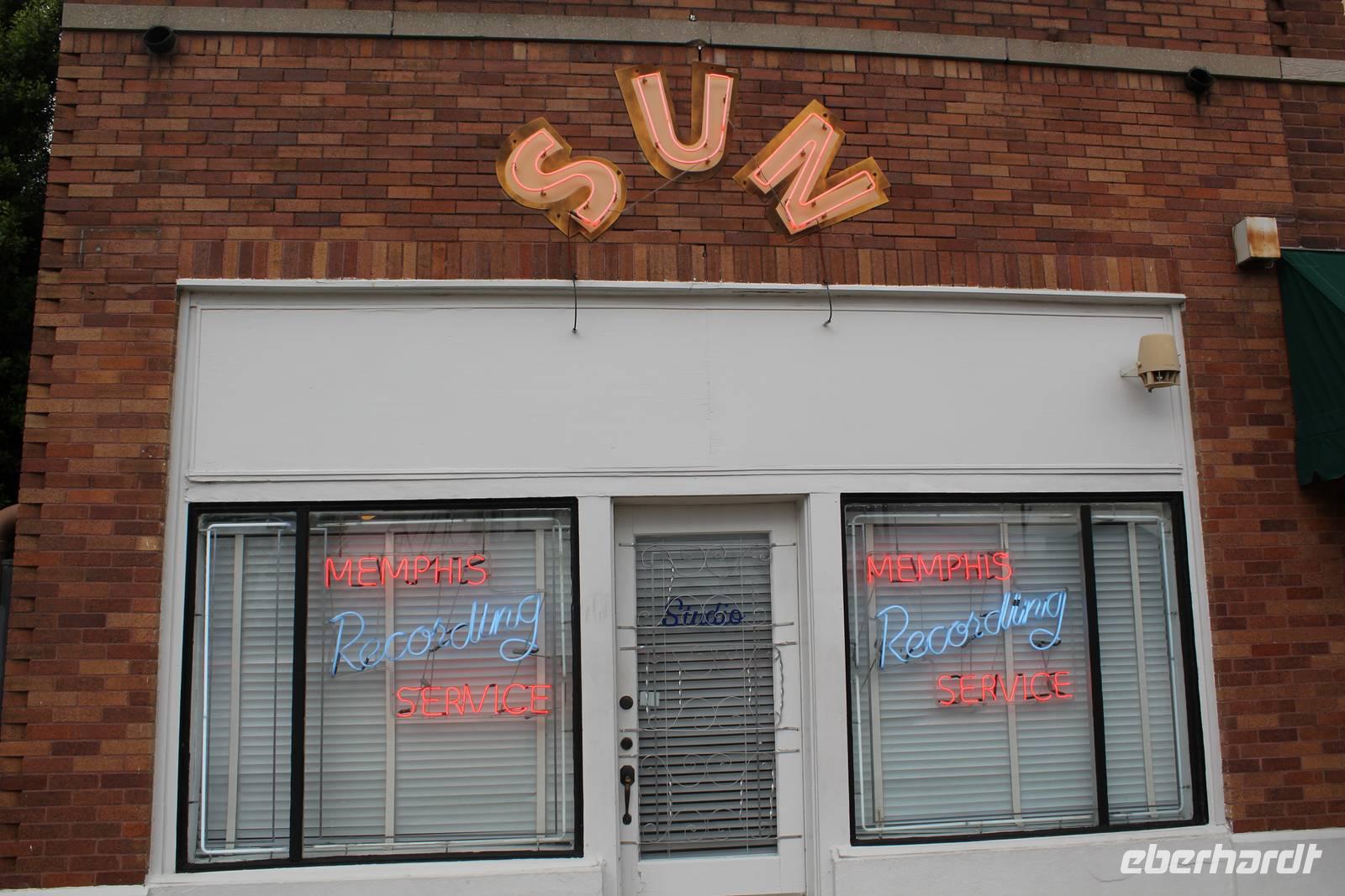 Zur Mittagszeit biegen wir vom Highway ab und besuchen kurzerhand den George Payne Cossar State Park, in dem wir mitten in der Natur picknicken wollen - solange es das Wetter noch gut mit uns meint. In einem herrlichen Pavillon direkt am See lassen wir uns Sandwiches, Salat und Chips schmecken, denn im Freien schmeckt es ja bekanntlich immer besser. Und um das Picknick perfekt zu machen überraschen uns Matt und Elisa mit leichtem Bier, Cola und leckeren süßen Köstlichkeiten wie Cupcakes, Pekannüssen- und Zitronentörtchen! So stoßen wir auf unser Bergfest an und auf die herrliche uns umgebende Landschaft! Und als hätten wir es geahnt, prasselt kurz nach der Weiterfahrt tatsächlich der Regen auf unseren Bus nieder. Noch 1 ½ Stunden sind es jetzt bis nach Memphis und mit einer Musik-CD der besten in den Sun Studios aufgenommenen Blues- und Rock 'n Roll Hits stimmen wir uns auf die Wahlheimat von Elvis Presley ein. Um die Jahrtausendwende kamen viele arbeitslose schwarze Baumwollarbeiter aus dem Mississippi-Tal in die Stadt und brachten ihre Musik und Gesänge mit. Hauptwirkungsstätte der Blues-Musiker war die Beale Street, der auch wir uns genauer widmen wollen. Wir besuchen die legendären SUN-Studios, in denen zahlreiche berühmte Musiker ihre Karriere starteten. Bei einer tollen Führung, mit musikalischer Untermalung tauchen wir ein in die Zeit ab 1950, als Hobbymusiker Sam Philips das trendsetzende Plattenlabel SUN Records gründete. Damals konnte jeder für nur 4 Dollar eine Platte aufnehmen - man hatte nur einen Versuch! „The King" Elvis Presley nahm hier mit 18 Jahren im Jahr 1953 seinen ersten Song auf. Nach dem Rundgang in dem kleinen Museum gehen wir in das überraschend kleine Tonstudio, in dem auch heute noch Songs aufgenommen und eingespielt werden. Fast die komplette Ausstattung ist original aus den 1950ern und viele Bilder namhafter Musiker zieren die Wände. Besonders beeindruckend ist das große Foto des „Million-Dollar-Quartett", das um die ganze Welt ging und Elvis Presley, Johnny Cash, Carl Perkins und den bis dato unbekannten Jerry Lee Lewis zeigt. Auch einen Life-Mitschnitt ihrer Aufnahme bekommen wir auf die Ohren! Ein tolles Erlebnis, eine Reise in vergangene Zeiten, in denen die Musik das Leben und das Glück vieler Menschen bestimmte.