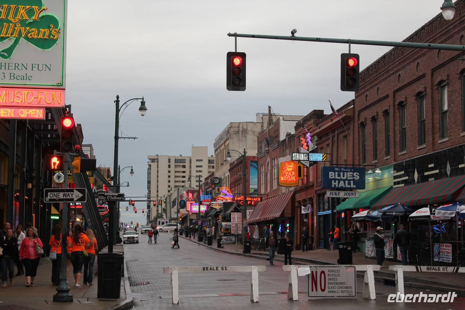 Im Hotel „Crowne Plaza" haben wir dann Zeit uns etwas auszuruhen, bevor es wieder zur Szenemeile Beale Street, wo wir in der Musikkneipe „Alfred's" unser Abendessen einnehmen. Neben leckeren Ceasar Salat, Fisch, Hühnchen oder auch Lachsnudeln genießen wir außerdem noch feinste Livemusik. Bei unserem anschließenden Bummel durch die kultige Straße, bekommen wir erst ein Gefühl für dieses einzigartige Lebensgefühl, dem sich viele Einheimische und Besucher hier hingeben: aus jedem Lokal dröhnt die herrliche Musik einer anderen Live-Band, überall lockt frisch gezapftes Bier oder andere Getränke und verrückte, lebensfrohe Menschen lassen sich einfach vom Blues und Rock ‚ n Roll treiben! Es geht zurück zum Hotel und heute Nacht werden die bekennenden Elvis-Fans wohl etwas unruhiger schlafen, wenn man bedenkt zu welcher Pilgerstätte es morgen geht. (555 km)