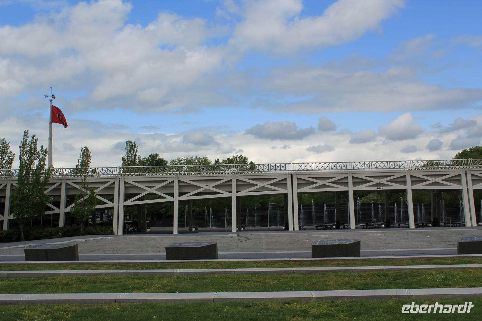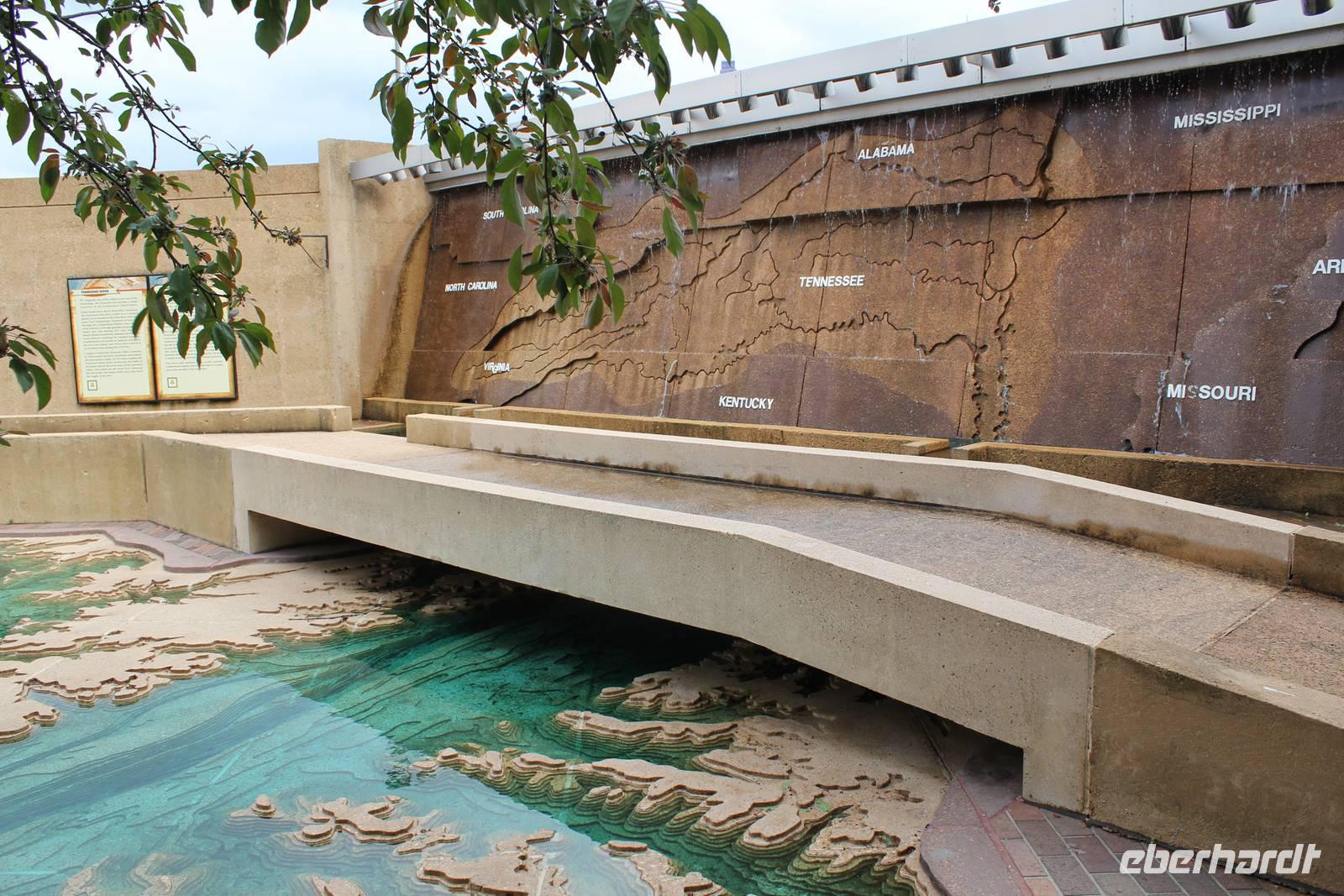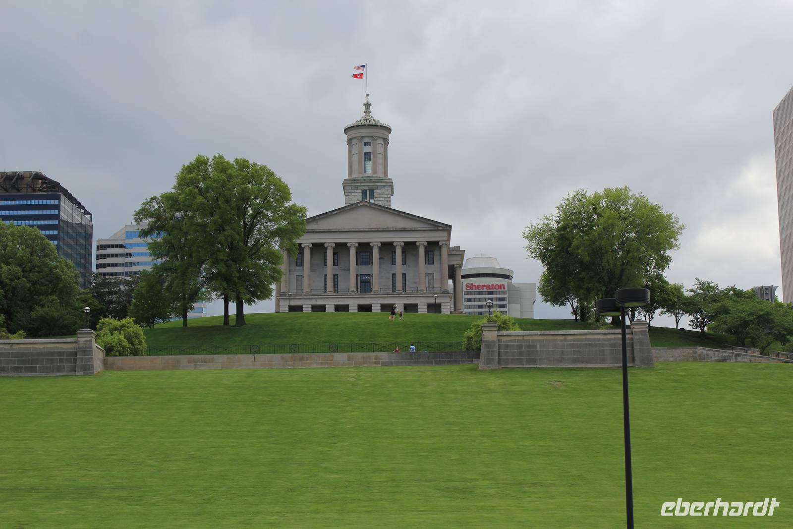 Weiterhin halten wir am Fort Nashborough, wo man die historischen Wurzeln der Stadt findet. Es ist ein Nachbau von 1962, der die ursprüngliche Anlage von 1779 zeigt. Siedler bauten in diesem Jahr am Westufer des Cumberland Flusses einige Blockhäuser, die sie mit einem hohen Palisadenzaun umspannten und Fort Nashborough nannten. Später wurde daraus der Stadtname Nashville. Einen Fotostopp legen wir am Bicentennial State Park ein, der anlässlich des 200-jährigen Jubiläums der Stadt errichtet wurde und eine riesige in den Boden gemeißelte Karte von Tennessee zeigt. Unseren Weg von Memphis über Nashville nach Chattanooga können wir so einfach erlaufenJ! Außerdem bietet sich uns von hier aus ein herrlicher Blick auf das hübsche Kapitol-Gebäude der Stadt.