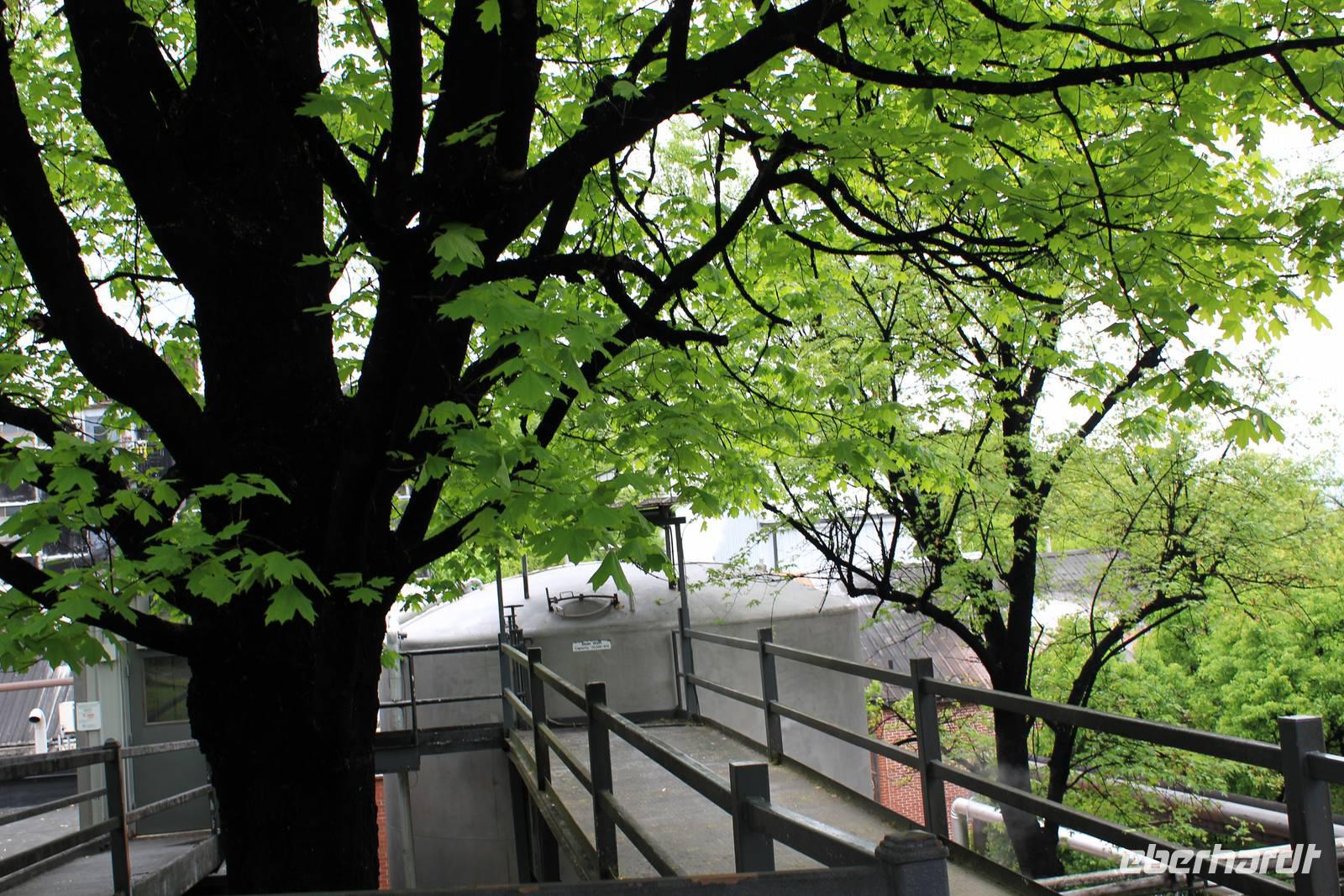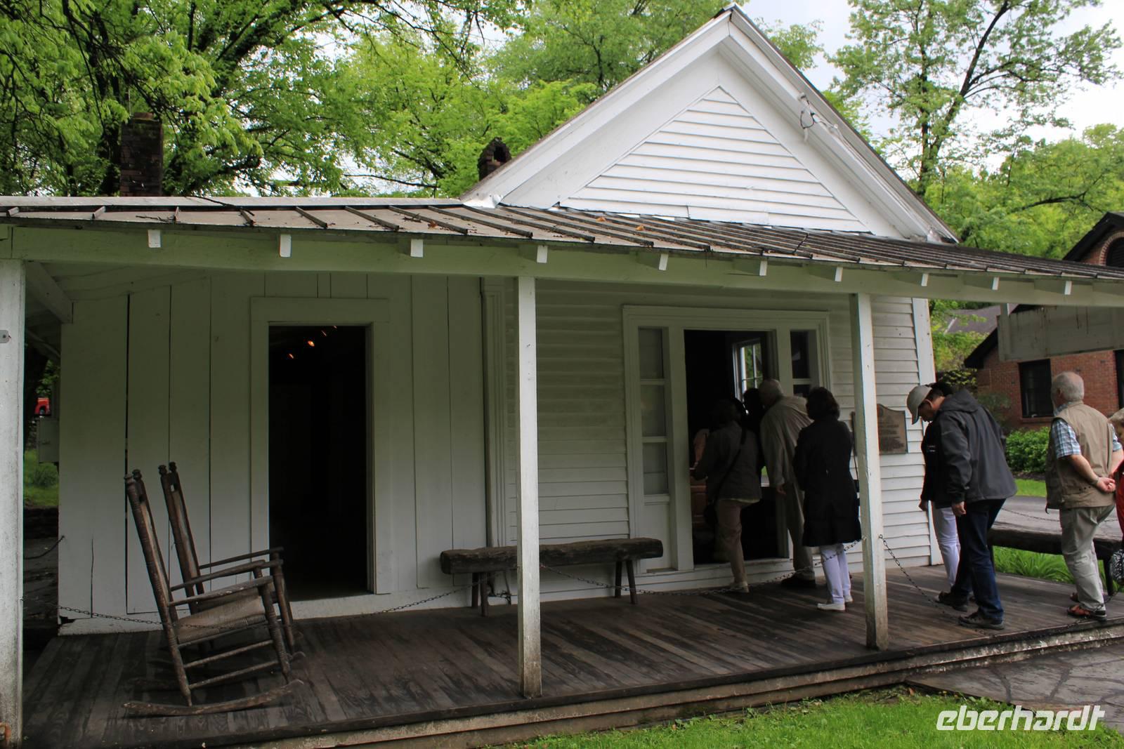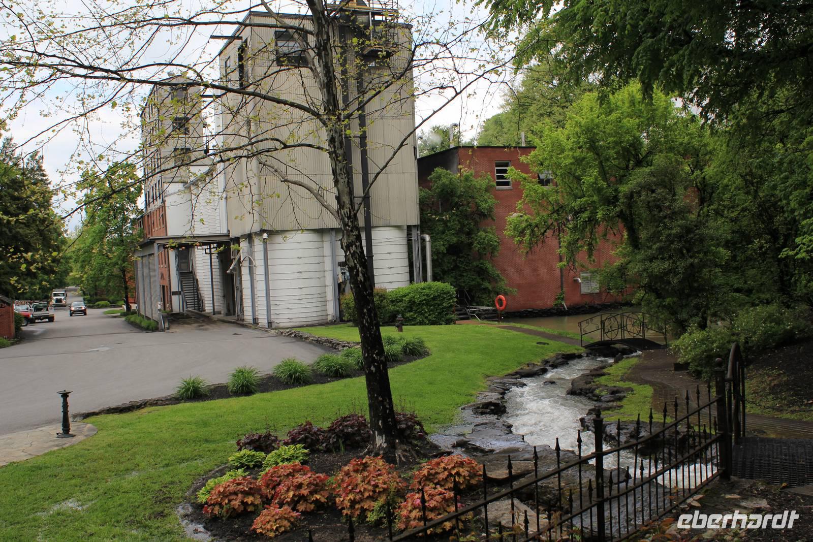 Heute Morgen müssen wir uns beim Frühstück gegen einige andere hungrige Reisende durchsetzen. Elisa hält wieder Schnittkäse bereit, so dass sich keiner an den Plastiktellern stört. Unser Weg führt uns heute abseits des Highways durch wunderbare, grüne Wälder, vorbei an Rinder- und Pferdekoppeln in Richtung des kleinen verträumten Örtchens Lynchburg. Der Besuch der ältesten und ersten Whiskey-Produktionsstätte der USA steht auf dem Programm! Auf dem idyllisch gelegenen Gelände, erwartet uns eine interessante Führung durch die mit bis unters Dach mit Fässern gefüllten Lagerhäuser, die Produktionsstätte der Holzkohle, das Büro des alten Jack Daniel, u.v.m. Der echte und qualitativ hochwerte Jack Daniels Whiskey setzt sich aus nichts weiter als Mais-, Roggen-, Gerste- und Weizenmalz zusammen und erhält durch das sickern durch die Holzkohle von Ahornholz sein unverwechselbares Aroma. Zwischen 4 und 7 Jahren reift das edle Getränk in eigens für den Jack Daniels Whisky gefertigten Eichenfässern, die auch nur ein einziges Mal für diesen Zweck genutzt werden. Bereits als 16-jähriger ließ sich der junge Jasper Newton „Jack" Daniel im Jahr 1866 hier nieder, da er hier die geeignete Wasserquelle für seine Whiskey-Brennerei fand. Das Wasser ist nahezu eisenfrei und besonders klar - ein weiteres Kriterium für die Unverwechselbarkeit des Jack Daniels. Heutzutage exportiert das Unternehmen, das um die 500 Mitarbeiter beschäftigt, in die ganze Welt. Hauptexportland ist England, gefolgt von DeutschlandJ. Bei unserer Führung wird besonders unser Geruchssinn angeregt, denn wir halten unsere Nasen nicht nur in die brodelnden Maischetanks, wo uns der Alkohol beißend entgegen strömt, sondern durchwandern auch eines der Lagerhäuser, wo es sehr lecker und einladend riecht. Nach interessanten Stunden haben wir jetzt eigentlich so richtig Appetit bekommen (doch diesen mussten wir noch einige Stunden zurück halten - wie sich aber erst später rausstellte...) und das in einem County, wo der Verkauf und der Ausschank von Alkohol noch illegal ist! Im kleinen Ortskern von Lynchburg verbringen wir unsere Mittagspause, wo sich auch das eine oder andere Jack Daniels Souvenir erstehen lässt.
