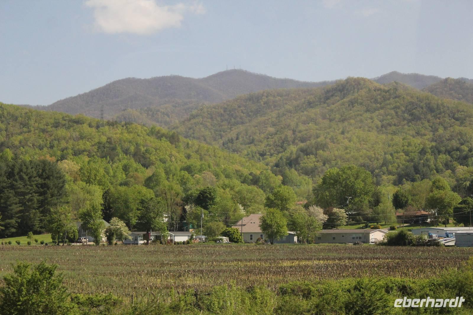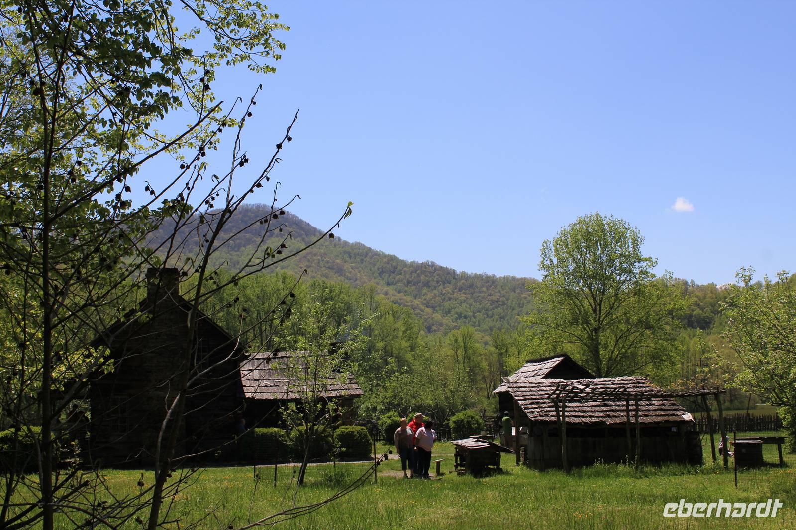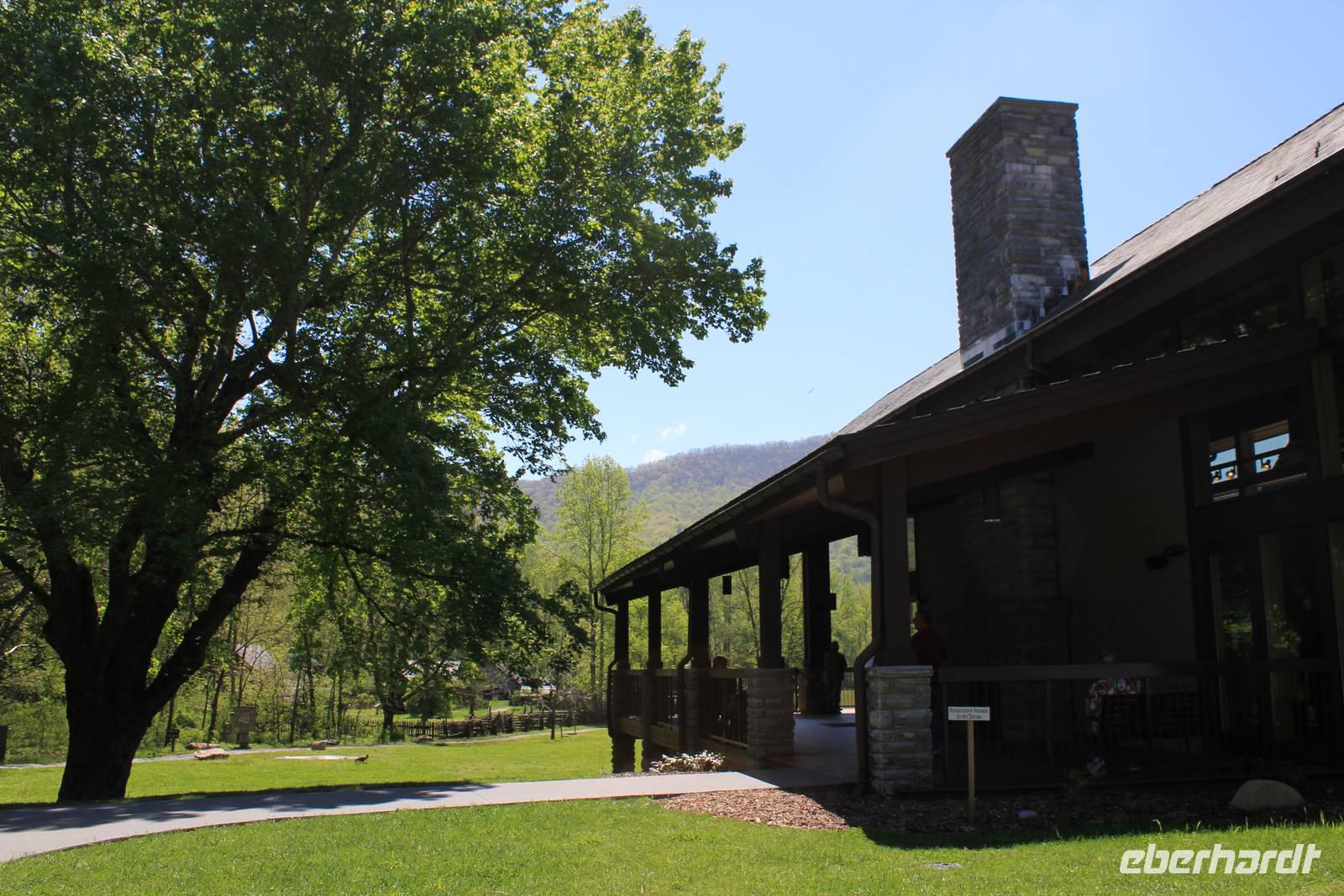 Um zum Nationalpark Smoky Mountains zu gelangen besuchen wir einen weiteren Bundesstaat: North Carolina. Der mit 10 Millionen jährlich meist besuchte Nationalpark der Vereinigten Staaten erstreckt sich über 2072 km2 in den Bundesstaaten Tennessee und North Carolina. Der 1934 eröffnete Park gehört zu einem Teil des Appalachen Gebirges. Wir befinden uns nun im Gebiet der Cherokee-Indianer, die die Bergwälder einst „Shaconage", was so viel wie „blauer Dunst" bedeutet, nannten. Tatsächlich ist die wunderschöne Landschaft hier des Öfteren von tiefen bläulichen Nebel- und Wolkenschwaden geziert. Durch den Nationalwald Nantahale, immer am Fluss entlang dringen wir immer weiter in das Gebiet der Indianer vor; die verschiedenen Grüntöne der Bäume und eine schier unglaubliche Artenvielfalt begeistern uns. Um die 1.500 verschiedenen Pflanzenarten sind hier zu Hause. Den Cherokee-Indianern stehen heute noch einige Annehmlichkeiten zur Verfügung. Sie wohnen in Reservaten mit eigener Verwaltung und werden staatlich bezuschusst. Als wir durch den Hauptort Cherokee fahren, sehen wir auch einige indianische Schriftzeichen, denn dieser Stamm war der erste, der eine schriftliche Sprache entwickelte.