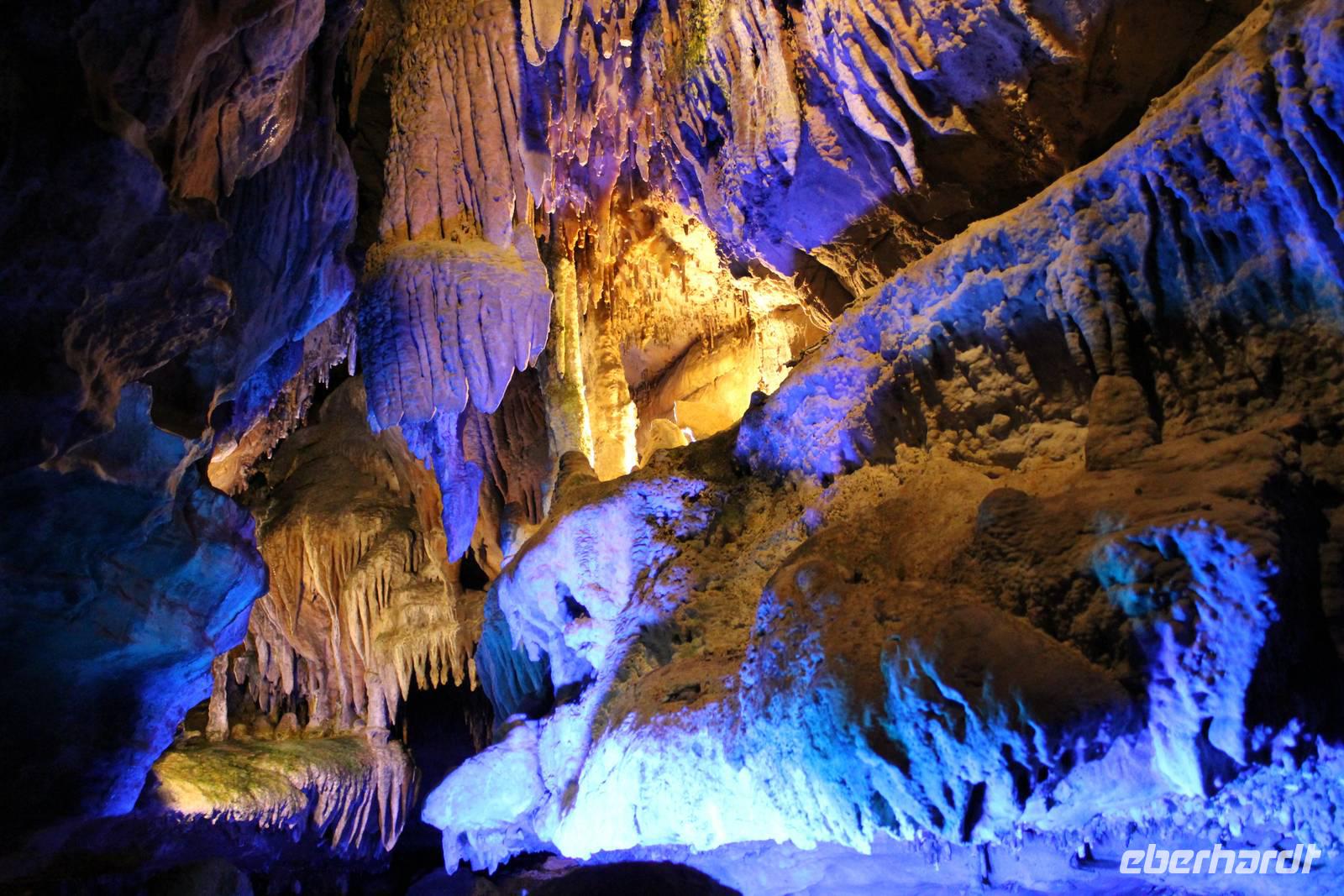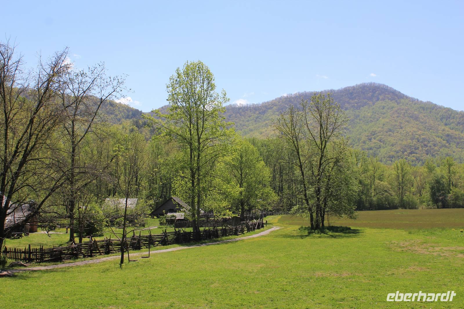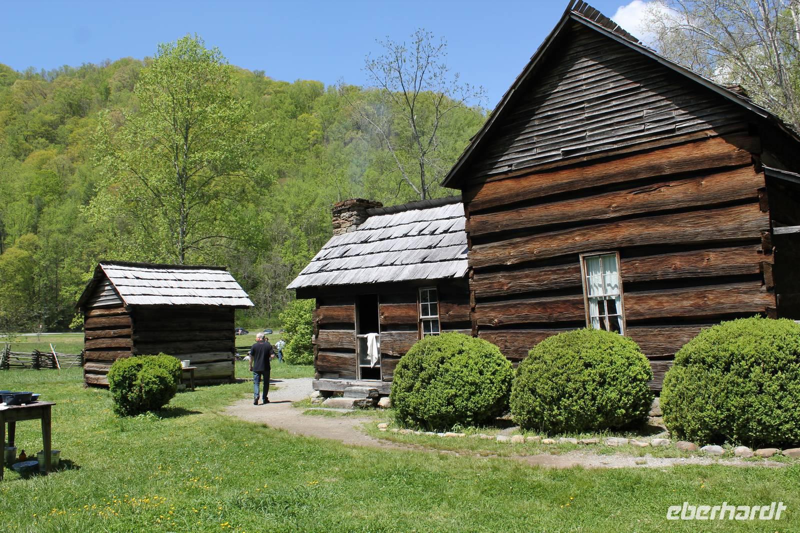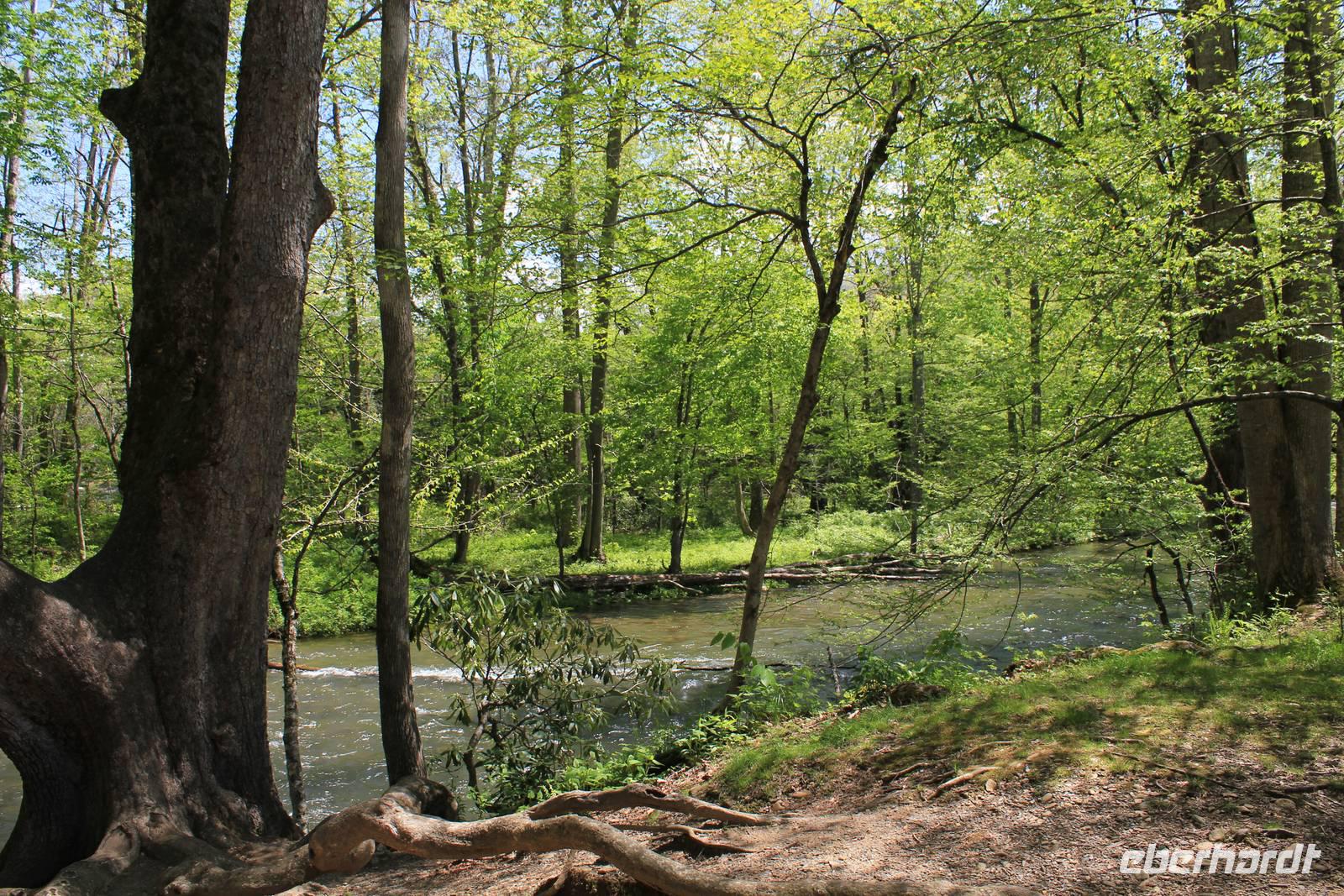 Um zum Nationalpark Smoky Mountains zu gelangen besuchen wir einen weiteren Bundesstaat: North Carolina. Der mit 10 Millionen jährlich meist besuchte Nationalpark der Vereinigten Staaten erstreckt sich über 2072 km2 in den Bundesstaaten Tennessee und North Carolina. Der 1934 eröffnete Park gehört zu einem Teil des Appalachen Gebirges. Wir befinden uns nun im Gebiet der Cherokee-Indianer, die die Bergwälder einst „Shaconage", was so viel wie „blauer Dunst" bedeutet, nannten. Tatsächlich ist die wunderschöne Landschaft hier des Öfteren von tiefen bläulichen Nebel- und Wolkenschwaden geziert. Durch den Nationalwald Nantahale, immer am Fluss entlang dringen wir immer weiter in das Gebiet der Indianer vor; die verschiedenen Grüntöne der Bäume und eine schier unglaubliche Artenvielfalt begeistern uns. Um die 1.500 verschiedenen Pflanzenarten sind hier zu Hause. Den Cherokee-Indianern stehen heute noch einige Annehmlichkeiten zur Verfügung. Sie wohnen in Reservaten mit eigener Verwaltung und werden staatlich bezuschusst. Als wir durch den Hauptort Cherokee fahren, sehen wir auch einige indianische Schriftzeichen, denn dieser Stamm war der erste, der eine schriftliche Sprache entwickelte.