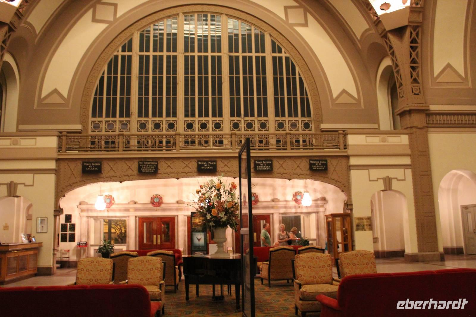 Schon viel haben wir heut gelernt und so wollen wir unsern Köpfen noch etwas Unterhaltung und Spaß gönnen: Matt erzählte uns bereits von dem berühmten Peabody Hotel hier in Memphis. Es wurde 1869 gegründet und zählte seiner Zeit zu den besten und bekanntesten Hotels der Südstaaten. Grund für unseren Besuch (sowie für hunderte andere Touristen mit uns) ist die täglich 2 x stattfindende Entenparade. Dauergäste im Marmorspringbrunnen in der Mitte der Lobby sind nämlich 5 Enten. Täglich um 17 Uhr, mit einem riesigen Brimborium watscheln sie auf einem roten Teppich und über 3 Stufen zum Aufzug, mit dem Sie auf das Dach zu ihrem Entenhaus fahren. Seit 1933 gibt es nun diese Tradition und nach einer Ansprache des derzeitigen und 5. „Duckmasters" erleben wir das Spektakel! Es ist wirklich erstaunlich wie hunderte von Menschen mehr als 1 Stunde warten und um die besten Plätze kämpfen um ein paar Enten zu sehen, doch auch wir zählen uns nun zu diesen .