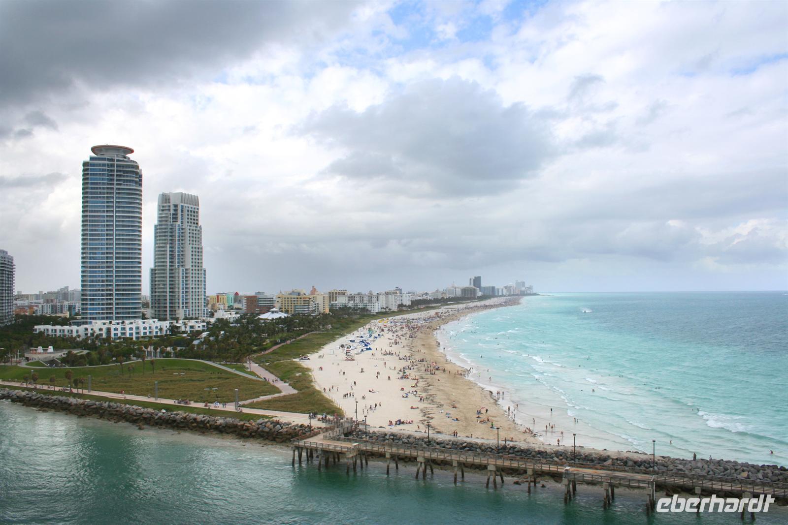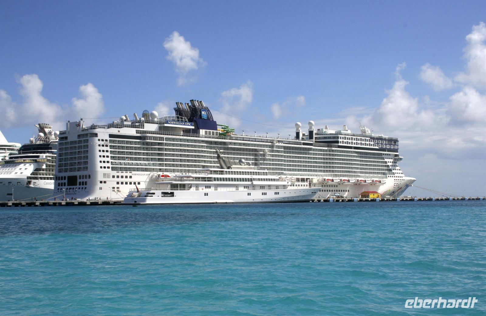 An einem der größten Kreuzfahrthäfen der Welt, in Miami, wartet unser Schiff "Norwegian Epic" für unsere achttägige Kreuzfahrt in die östliche Karibik. Die Einschiffung verläuft zügig und gut organisiert, wir brauchen nur unseren Reisepass und das Kreuzfahrtticket. Das Gepäck wird vom Schiffspersonal im Laufe des Nachmittags direkt auf die Kabinen gebracht. Nach der obligatorischen Rettungsübung an Bord läuft die "Norwegian Epic" am Nachmittag aus Miami aus. Auf in die Karibik!