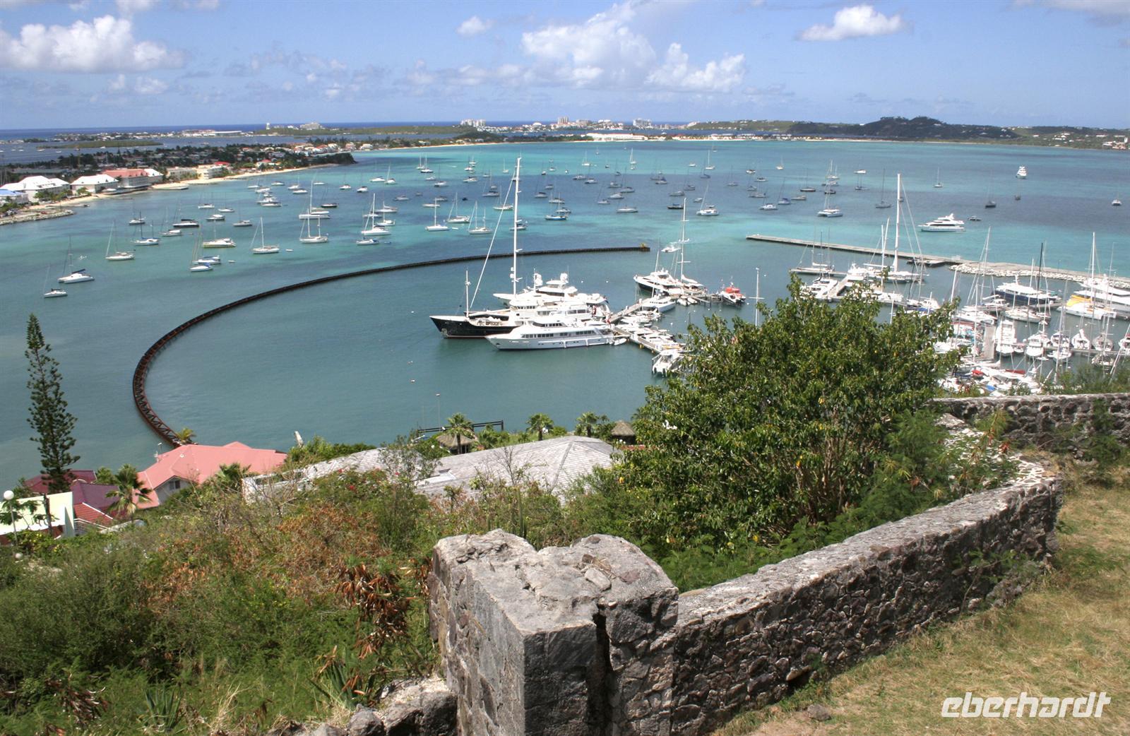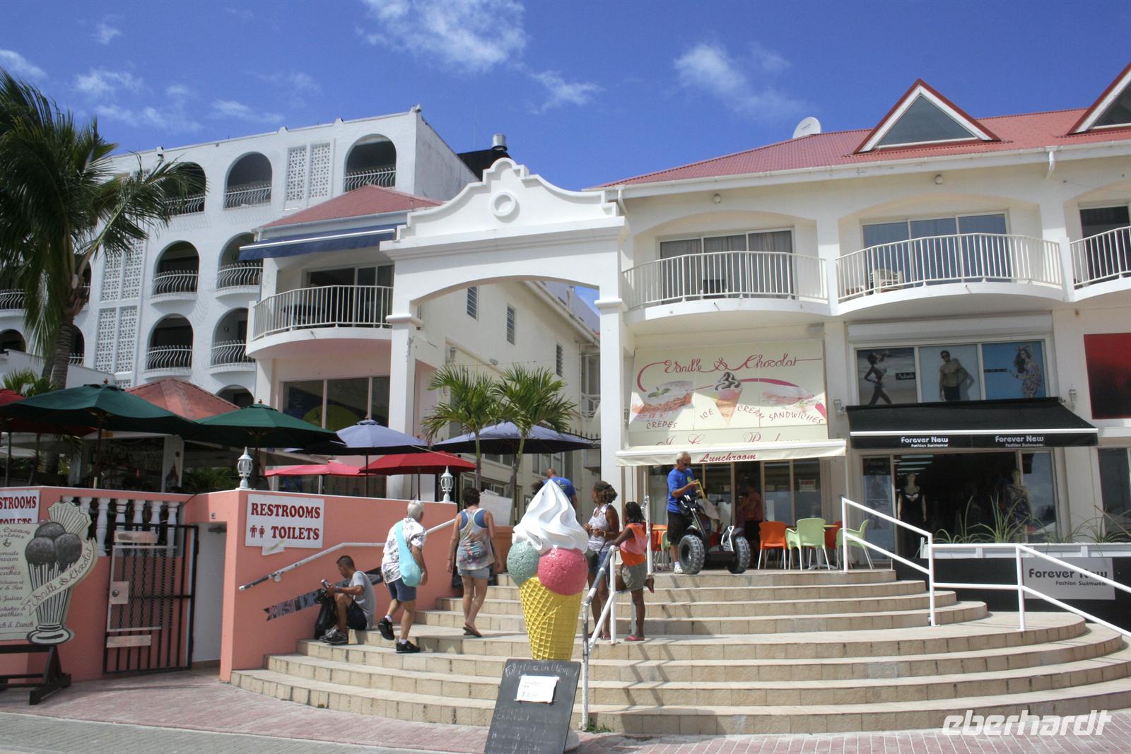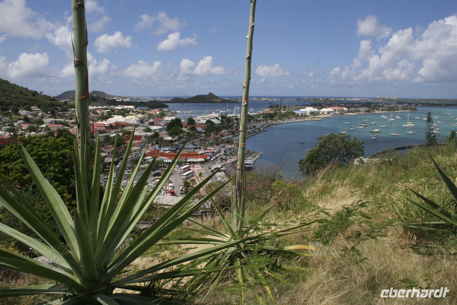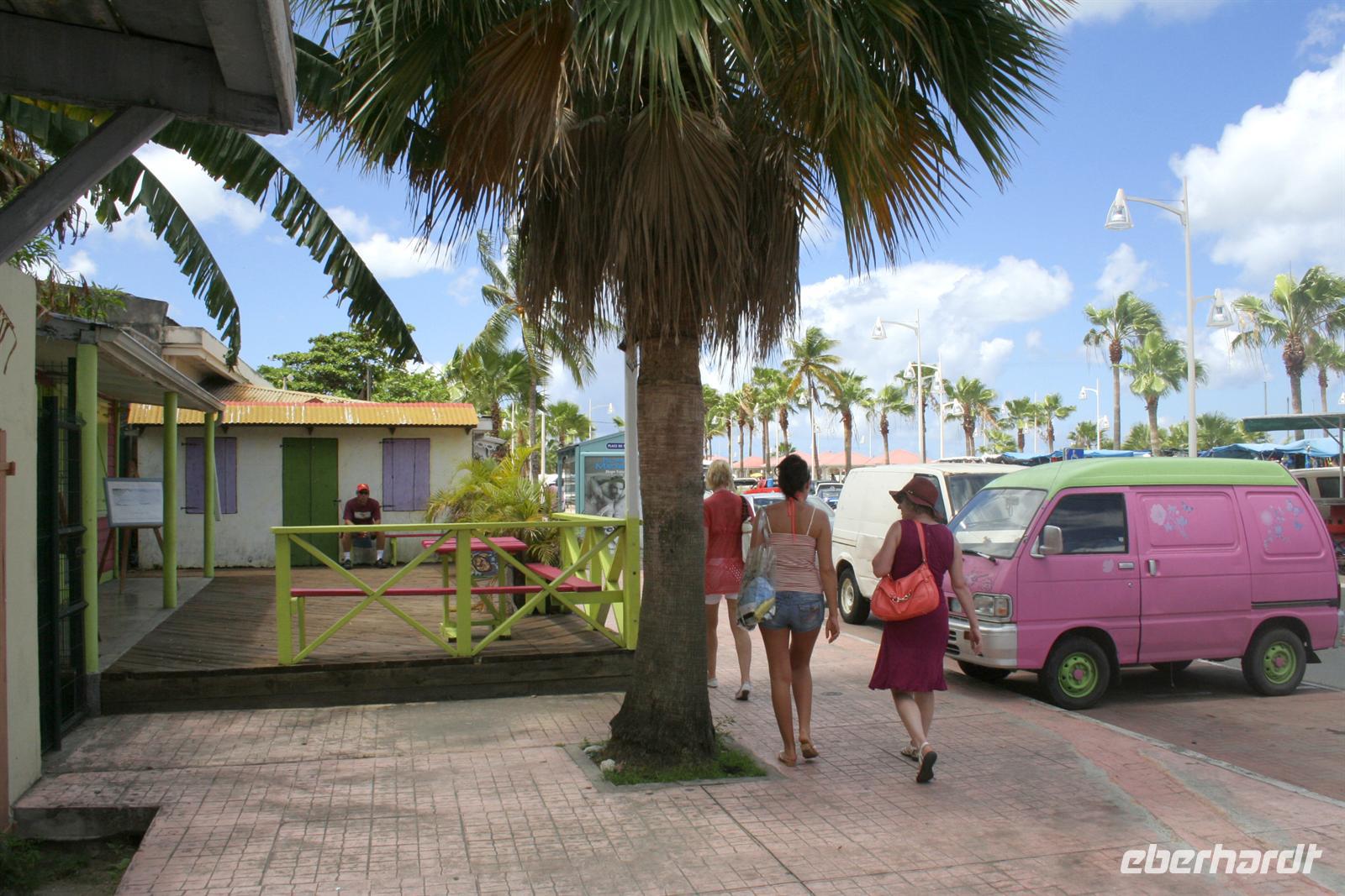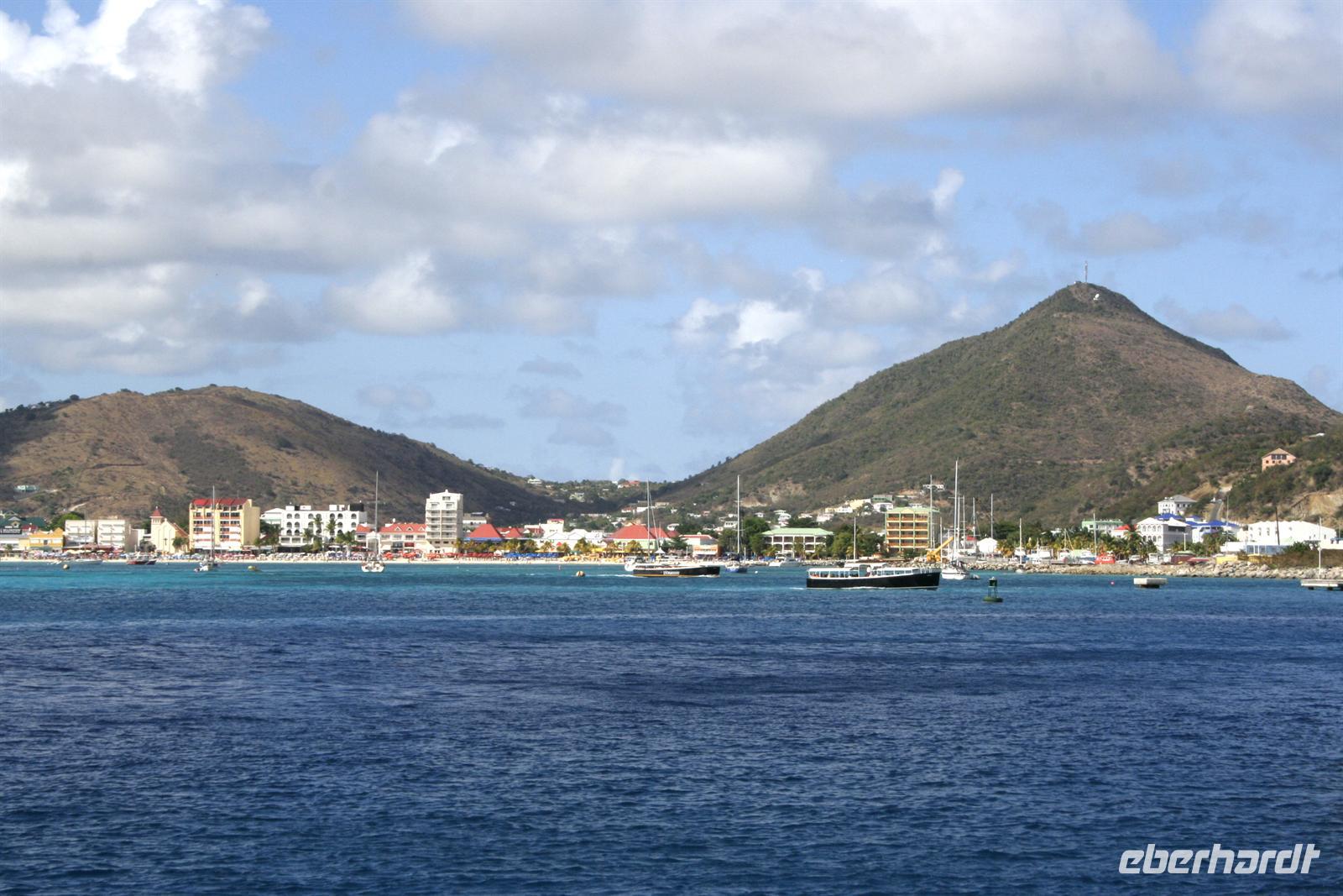 Für unseren ersten Landgang legt die „Norwegian Epic“ gegen 8.00 Uhr am Kreuzfahrtpier von Philipsburg, der Hauptstadt des niederländischen Teils der Insel St. Maarten an. Wir haben einen deutschsprachigen Reiseleiter engagiert, der speziell für unsere Eberhardt-Reisegruppe eine Inselrundfahrt macht. Im klimatisierten Kleinbus beginnen wir unseren Ausflug in Philipsburg und fahren einmal um die ganze Insel St. Maarten, die übrigens in einen niederländischen Teil und einen französischen Teil (Sainte Martin) gegliedert ist.