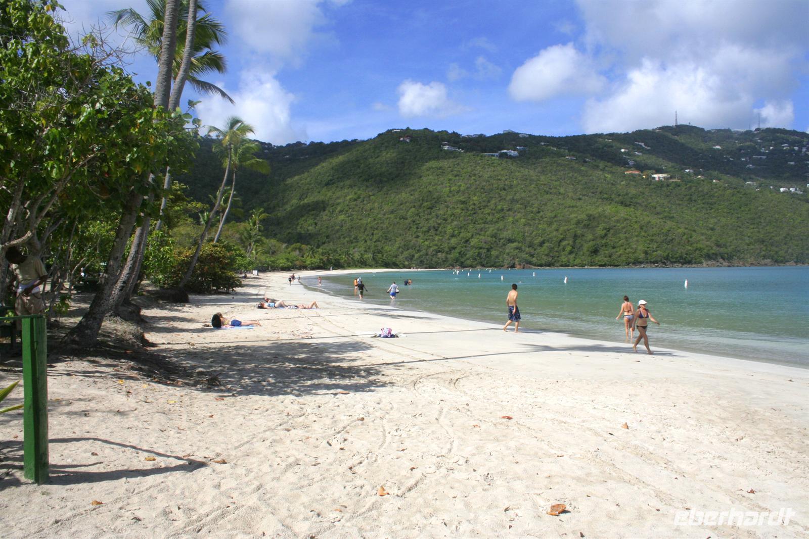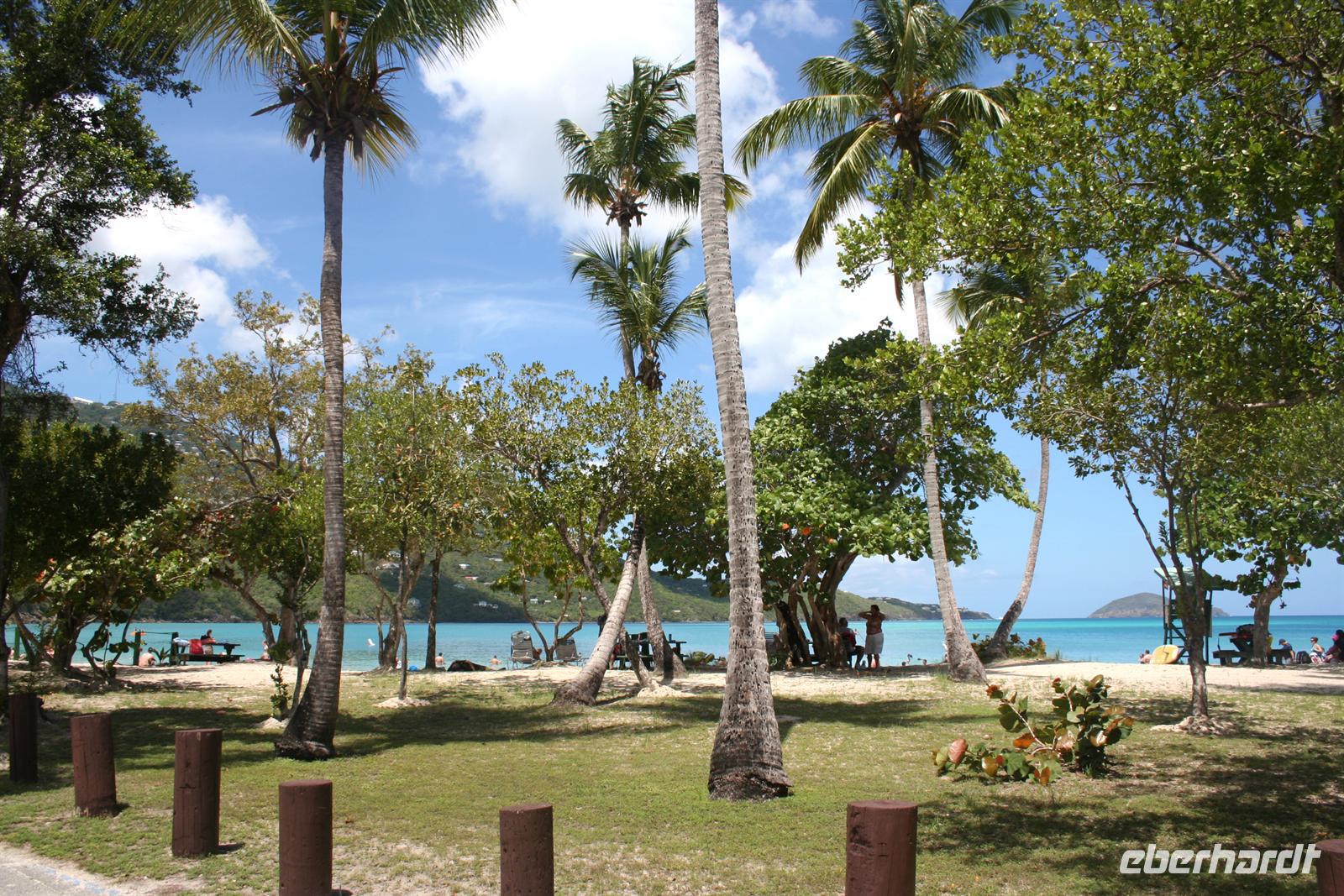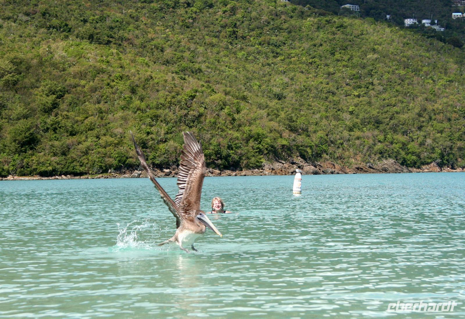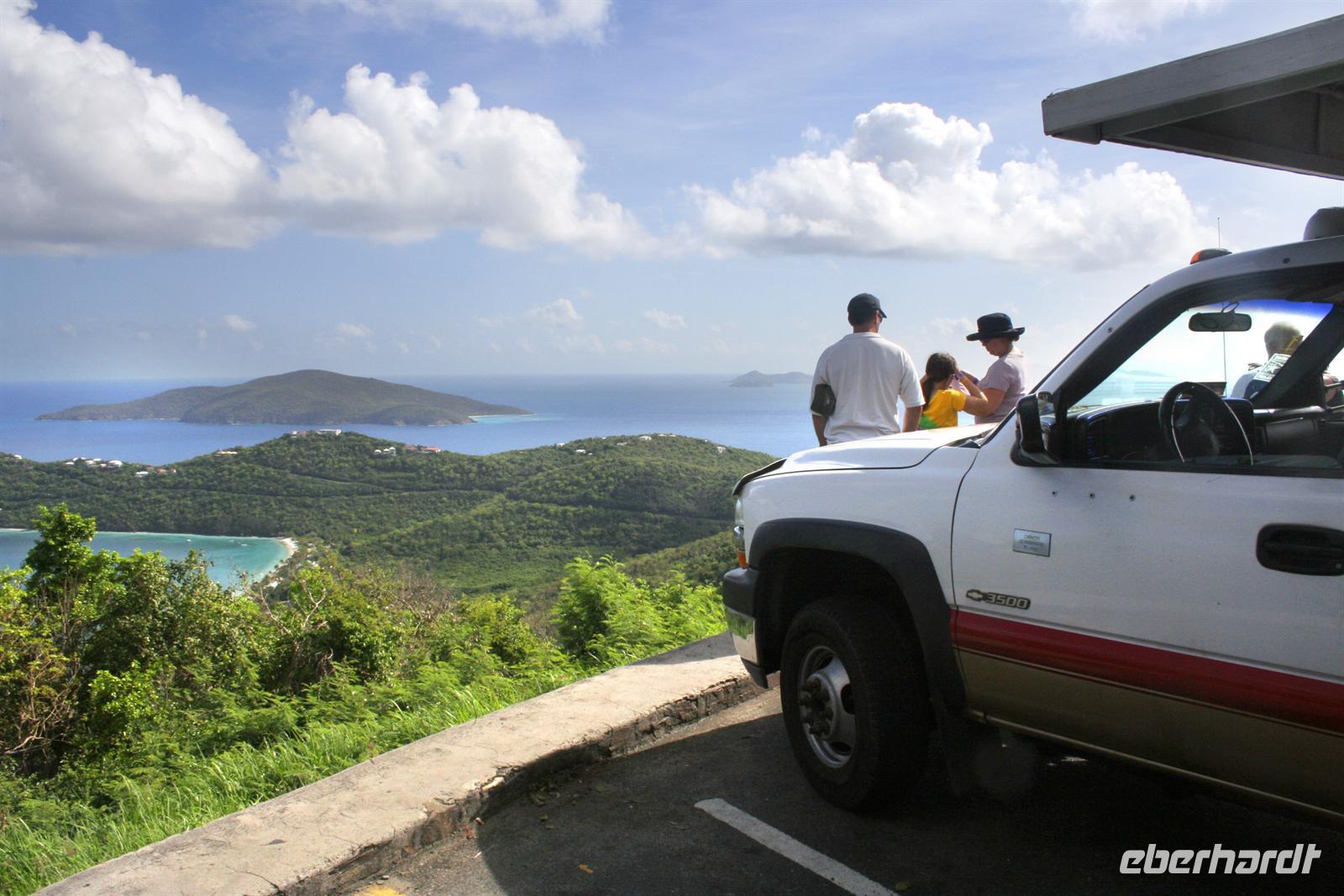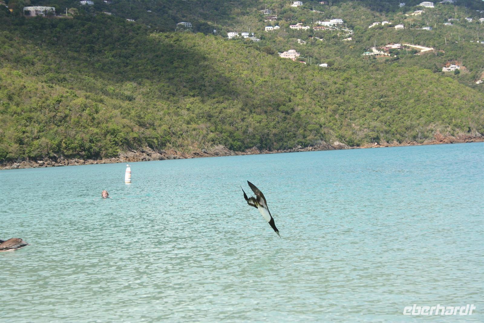 Heute gehen wir auf der Karibikinsel St. Thomas an Land. Sie gehört zu den US-amerikanischen Jungferninseln (US Virgin Islands), die 1493 von Christopher Kolumbus entdeckt wurden. Später besetzte Dänemark die Insel und die Hauptstadt erhielt den Namen der Frau des damaligen dänischen Königs - Charlotte Amalie. 1917 wurden St. Thomas und die Nachbarinseln St. John und St. Croix an die USA verkauft. Unser Schiff legt am Morgen an einem der beiden Kreuzfahrt-Piers von Charlotte Amalie an. Wir gehen gemeinsam von Bord und besteigen einen der Safari-Busse für unseren Landausflug auf St. Thomas. Wie auf den benachbarten Britischen Jungferninseln herrscht hier im einzigen Gebiet der USA Linksverkehr, was wir mit Erstaunen bei unserer ersten Fahrt feststellen. Durch die Hauptstadt Charlotte Amalie geht es zunächst auf einen Aussichtspunkt hoch über der Stadt, von dem wir die ganze Bucht mit den Häfen überblicken. Das Wetter ist fantastisch bei Sonnenschein und etwa 30 °C. Ein weiterer Fotostopp zeigt uns die Nordseite der Insel mit der Magens Bay und den vorgelagerten unbewohnten Inseln, die heute meist Naturschutzgebiete sind. Dann fahren hinunter zur Magens Bay, wo wir einen zweistündigen Badeaufenthalt am traumhaften Karibikstrand genießen. Es gibt ein Café, einen Souvenirladen und Umkleidekabinen am Strand. Während des Badens im türkisblauen Wasser beobachten wir sogar Pelikane, Tölpel, Fische und Wasserschildkröten. So stellt man sich einen Urlaub in der Karibik vor!