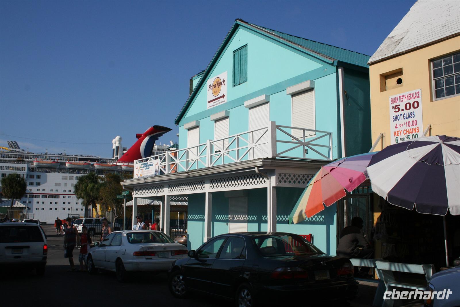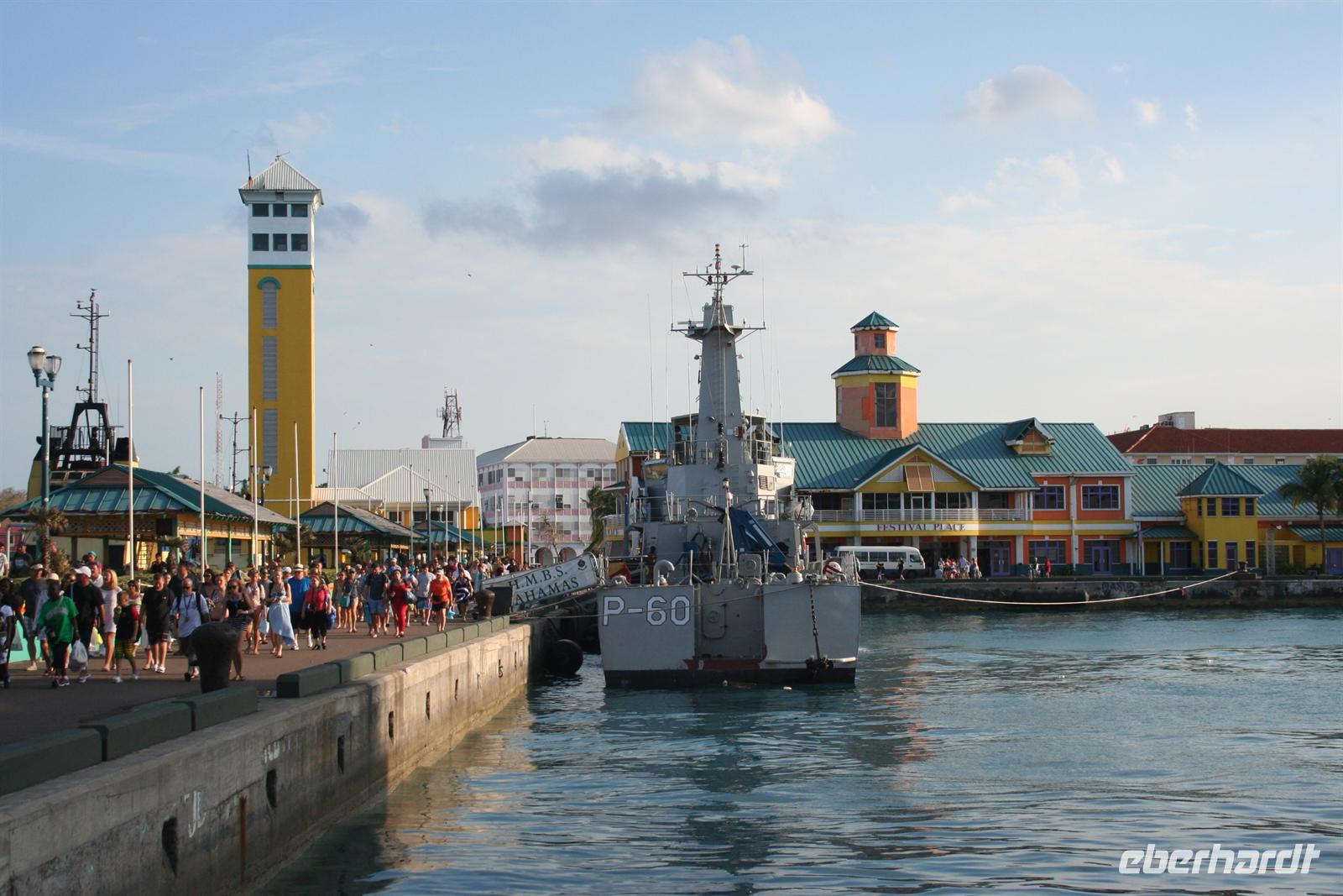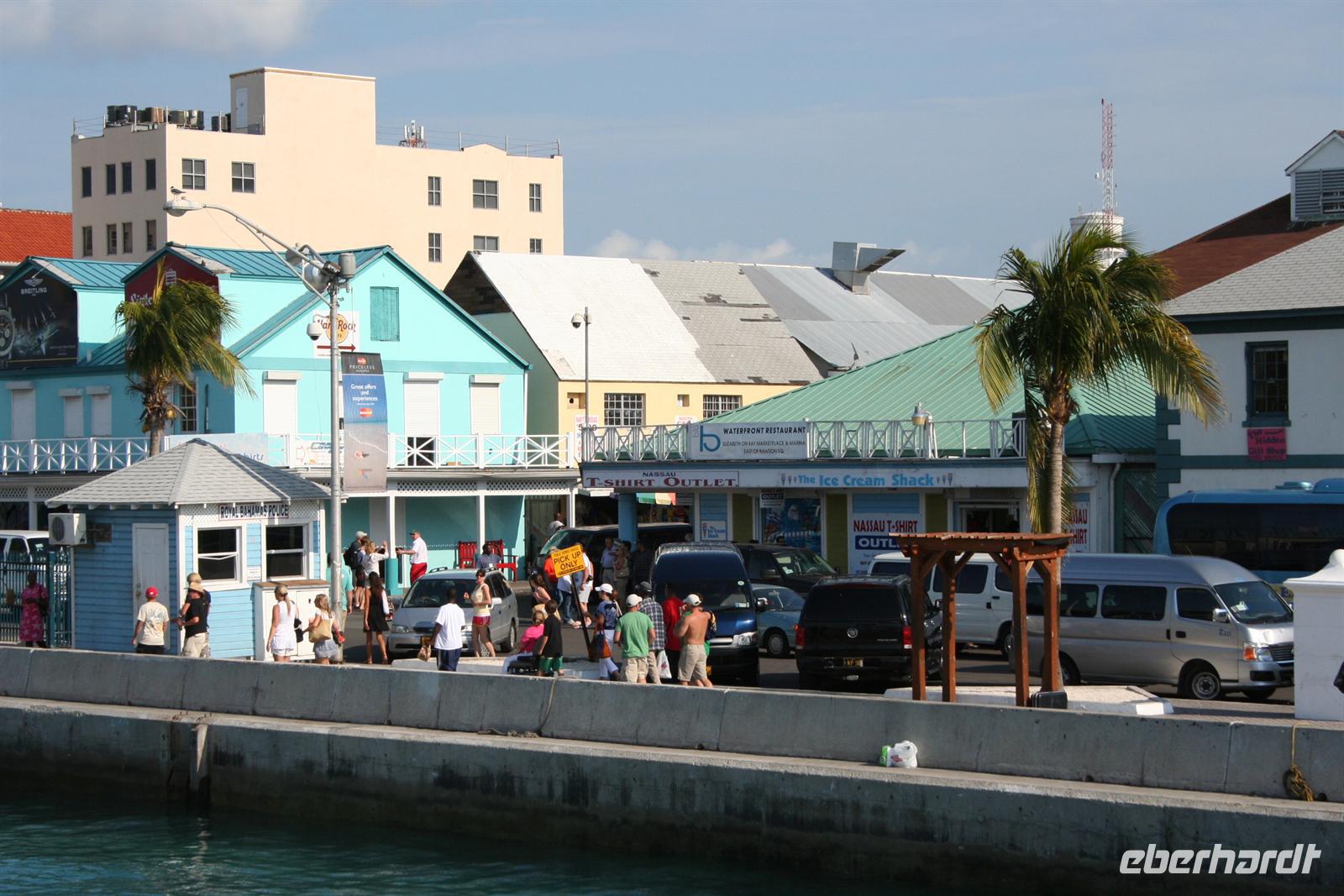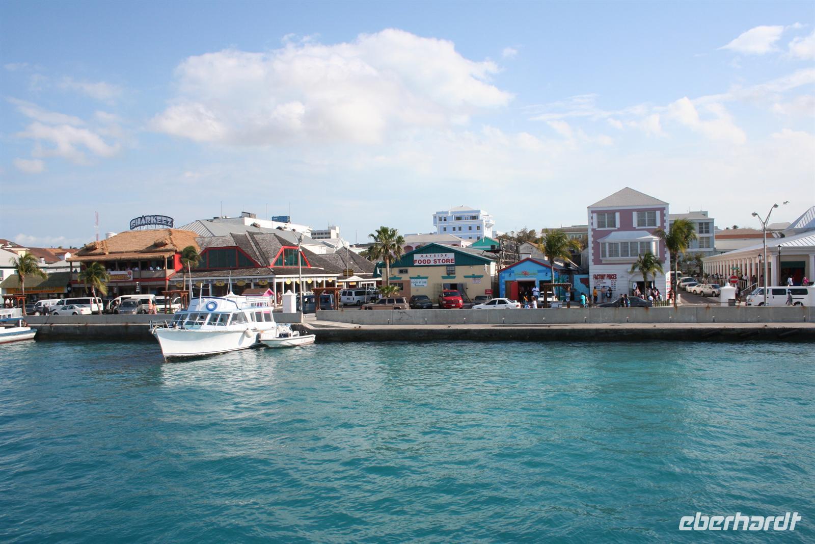 Nach etwa einer Stunde Aufenthalt geht es mit dem Boot zurück nach Nassau. Bevor die „Epic“ ablegt, bleibt noch Zeit für einen Einkaufsbummel in Nassau. Neben den allgegenwärtigen Souvenirläden gibt es hier auch Mode-, Schmuck- und Parfümgeschäfte. Kleine Restaurant und Cafés bieten Getränke und Snacks an, aber wir haben ja Vollverpflegung auf unserem Schiff und sind pünktlich eine halbe Stunde vor Abfahrt zurück an Bord.