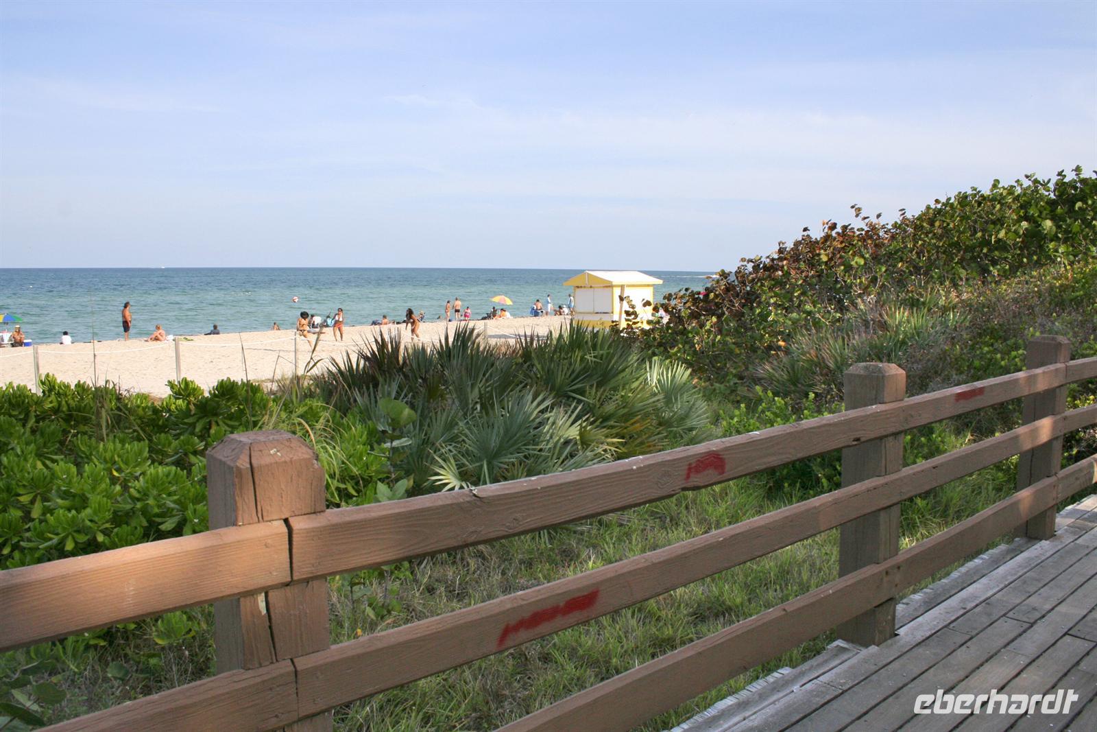 Am Ausgang erwartet uns unser örtlicher Reiseleiter Antonio Trujillo, der schon viele Jahre hier in Florida lebt. Mit dem Reisebus fahren wir etwa 45 Minuten zum Hotel „Holiday Inn Oceanfront Miami Beach“, welches direkt am Strand von Miami Beach liegt. Bei einem ersten Spaziergang entlang des Boardwalk, einem Holzsteg entlang des Strandes, lernen wir die Umgebung des Hotels kennen. Das Wetter ist herrlich und wir bewundern den kilometerlangen Sandstrand Miami Beach! Beim Abendessen im Hotel und einem Drink in der benachbarten Strandbar „Cabana Beach Club“ lassen wir den Tag gemütlich ausklingen.