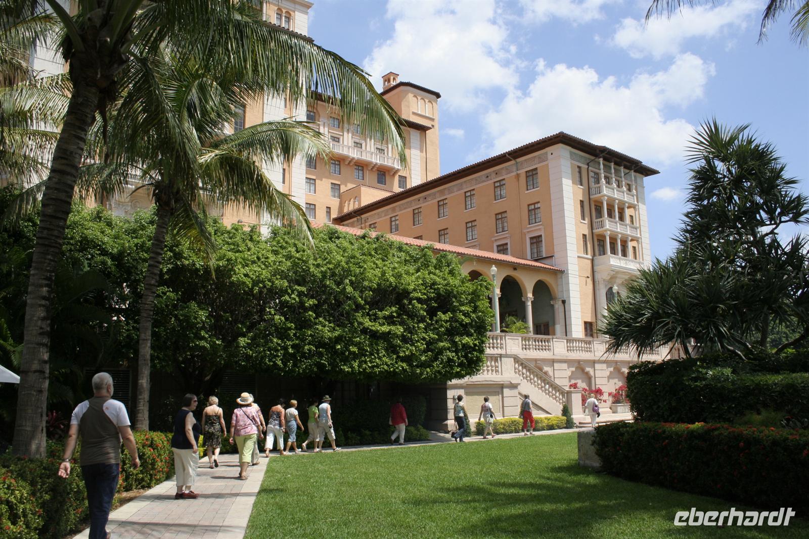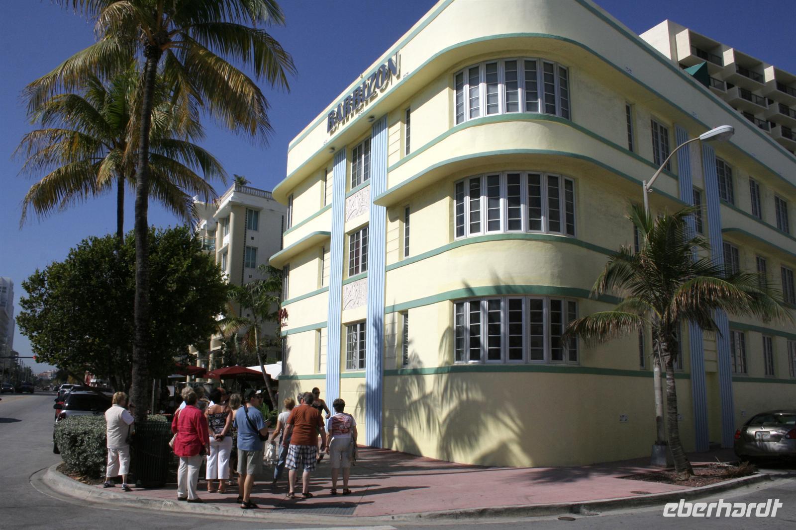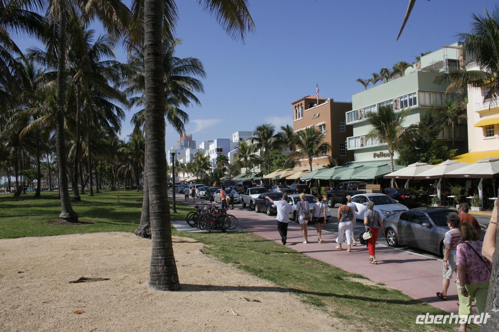 Wir lernen Miami bei einer ganztägigen Stadtrundfahrt kennen. Die Stadt wurde 1896 von Julia Tuttle gegründet und hieß vorher Fort Dallas. DasWort Miami stammt von den Teteska-Indianern und bedeutet „großes, fließendes Wasser“, bezogen auf die Everglades. Um 9.30 Uhr starten wir mit dem Reisebus am Hotel. Wir bleiben zunächst auf der Insel Miami Beach und fahren gen Süden zum berühmten Ocean Drive, dem Prachtboulevard von Miami Beach. Ocean Drive liegt im historischen Tropical Art Déco-Viertel, das mit seinen pastellfarbenen Häusern im Art Déco-Stil zu einer der bekanntesten Sehenswürdigkeiten Miamis zählt. Es ist das meistbesuchte Art Déco-Viertel weltweit. Außerdem wurden hier zahlreiche Kinofilme und Serien gedreht und das ehemalige Wohnhaus von Gianni Versage, vor dessen Eingang er ermordet wurde, befindet sich direkt am Ocean Drive. Die Bar „Clevelander“ ist die größte Open Air Bar von Miami Beach und das Jackie Gleason Theater ist ebenfalls ein Beispiel für den Art Déco-Stil. Wir bummeln den Ocean Drive entlang und fahren dann weiter zum südlichsten Punkt der Insel - South Point. Hier haben wir einen schönen Blick auf die Skyline von Miami. Mit dem Bus geht es nun auf das Festland hinüber nach Miami Downtown. Wir sehen den größten Kreuzfahrthafen der Welt, die American Airlines Arena für Basketball und die Monorail-Bahn, die hier kostenfrei nutzbar ist. Im Nobelviertel Coral Gables mit seinen grünen Alleen und mondänen Villen kommt man sich vor wie in den Südstaaten der USA. Wir besuchen das „Biltmore Hotel“, welches einen der größten Hotelpools Amerikas besitzt. Die Einrichtung mit antiken Möbeln, Fotos aus vergangenen Tagen und holzgetäfelter Decke erinnert an die großen, luxuriösen Eisenbahnhotels Kanadas. Weiter geht es ins kubanische Viertel Miamis - Little Havana - welches sich hauptsächlich entlang der „Calle Ocho“ (der achten Straße) erstreckt. In einem kleinen kubanischen Bistro genießen wir einen Mittagssnack und besuchen ein familiengeführtes Zigarrengeschäft, in dem es für 10 bis 30 Dollar handgedrehte kubanische Zigarren zu kaufen gibt.
