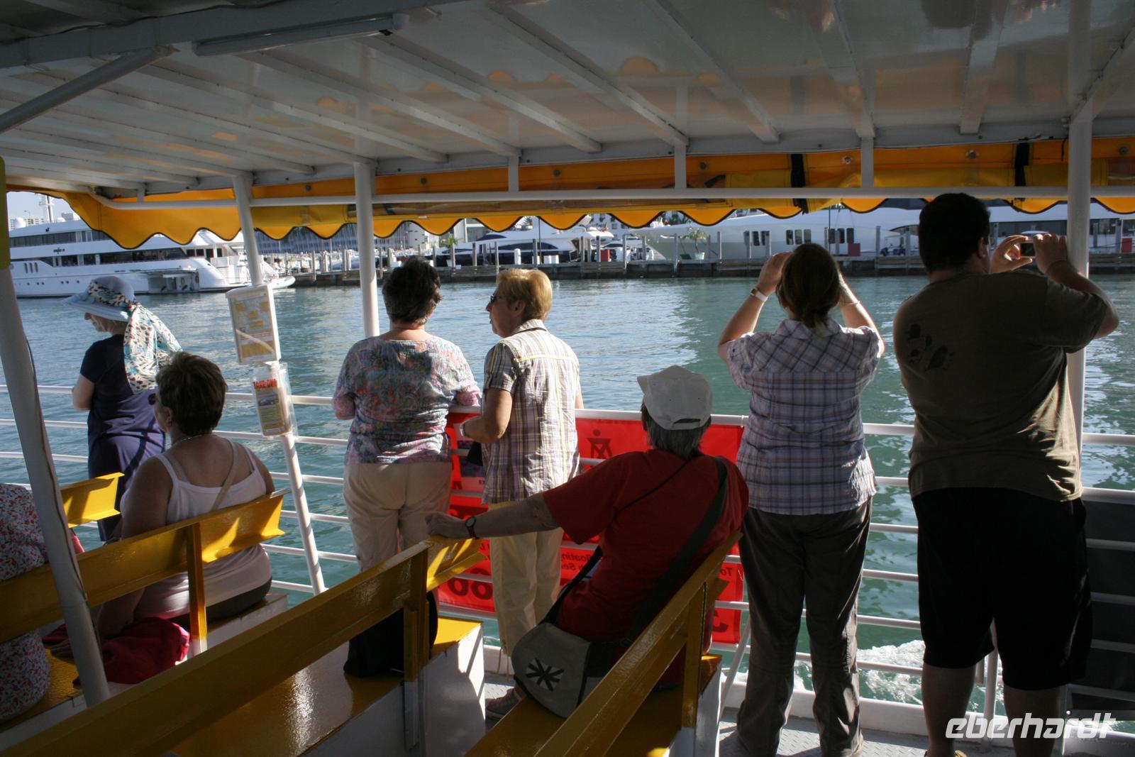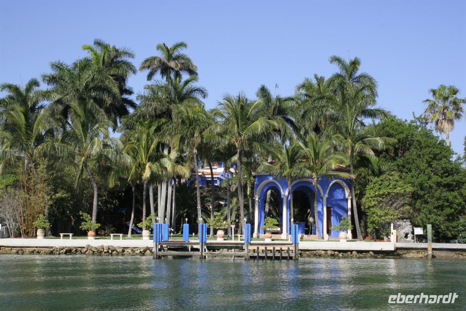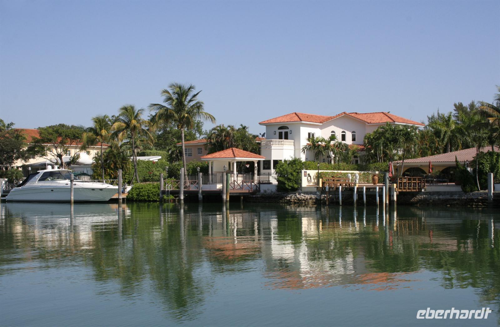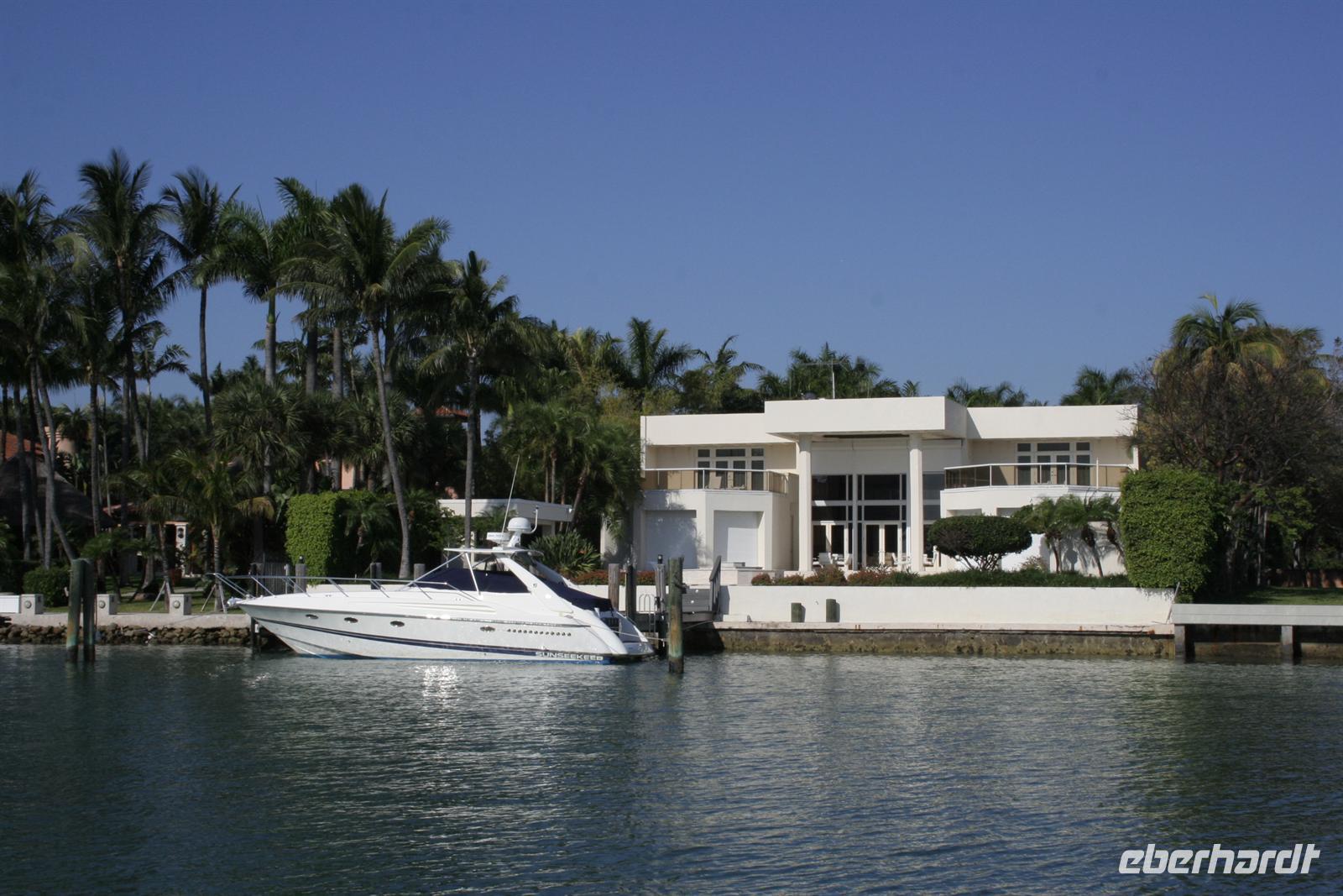 Bevor wir in Richtung Norden nach Cocoa Beach reisen, wollen wir Miami noch einmal aus einer anderen Perspektive - vom Wasser aus - entdecken. Am kleinen Yachthafen „Miami Beach Marina“ chartert Reiseleiter Antonio speziell für unsere Reisegruppe ein eigenes Wassertaxi. Wir fahren mit dem Boot um die kleinen Inseln vor der Stadt, auf denen viele bekannte Persönlichkeiten aus der Film-, Fernseh- und Musikwelt ihre Villen haben. Wir sehen zum Beispiel die Villa von Sylvester Stallone, Al Capone, Boris Becker, Gloria Estafan oder Ice T. Vor den Anwesen liegen oft luxuriöse Yachten an den Bootsstegen. Das ist die Welt der Schönen und Reichen!