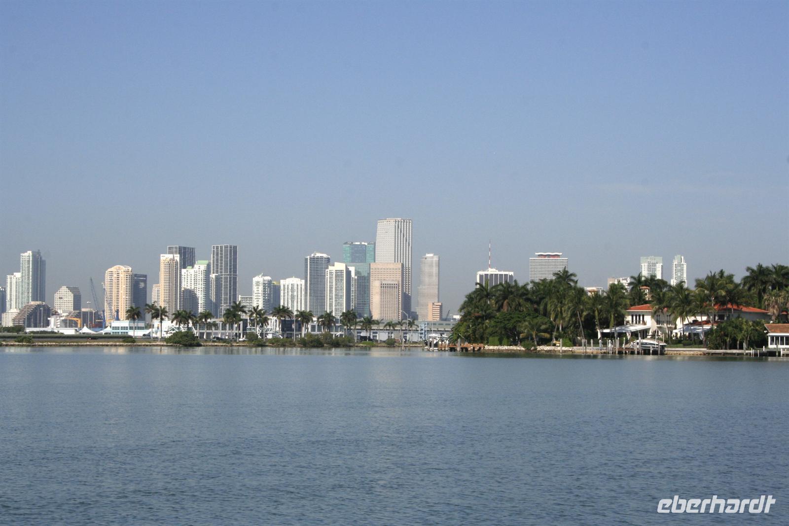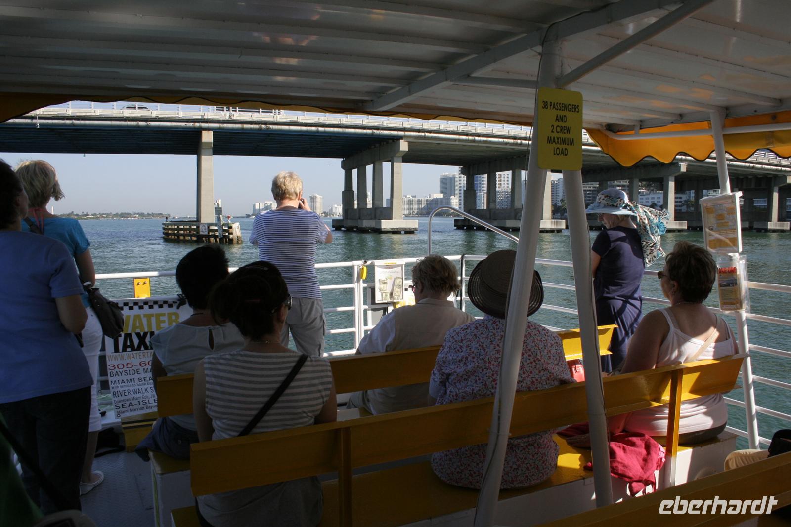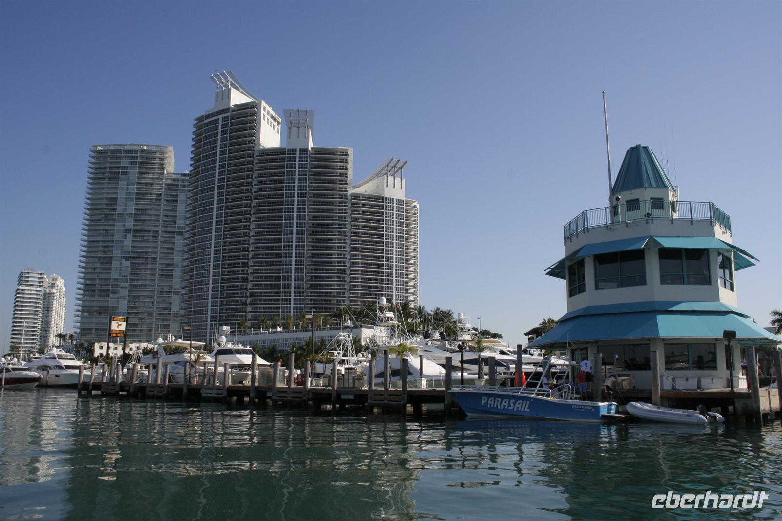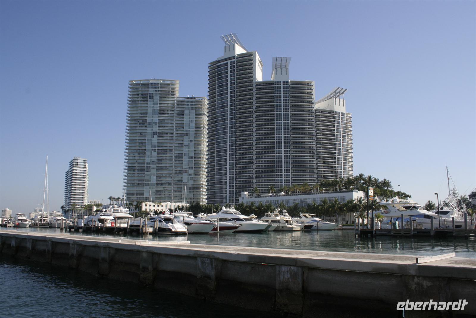 Bevor wir in Richtung Norden nach Cocoa Beach reisen, wollen wir Miami noch einmal aus einer anderen Perspektive - vom Wasser aus - entdecken. Am kleinen Yachthafen „Miami Beach Marina“ chartert Reiseleiter Antonio speziell für unsere Reisegruppe ein eigenes Wassertaxi. Wir fahren mit dem Boot um die kleinen Inseln vor der Stadt, auf denen viele bekannte Persönlichkeiten aus der Film-, Fernseh- und Musikwelt ihre Villen haben. Wir sehen zum Beispiel die Villa von Sylvester Stallone, Al Capone, Boris Becker, Gloria Estafan oder Ice T. Vor den Anwesen liegen oft luxuriöse Yachten an den Bootsstegen. Das ist die Welt der Schönen und Reichen!