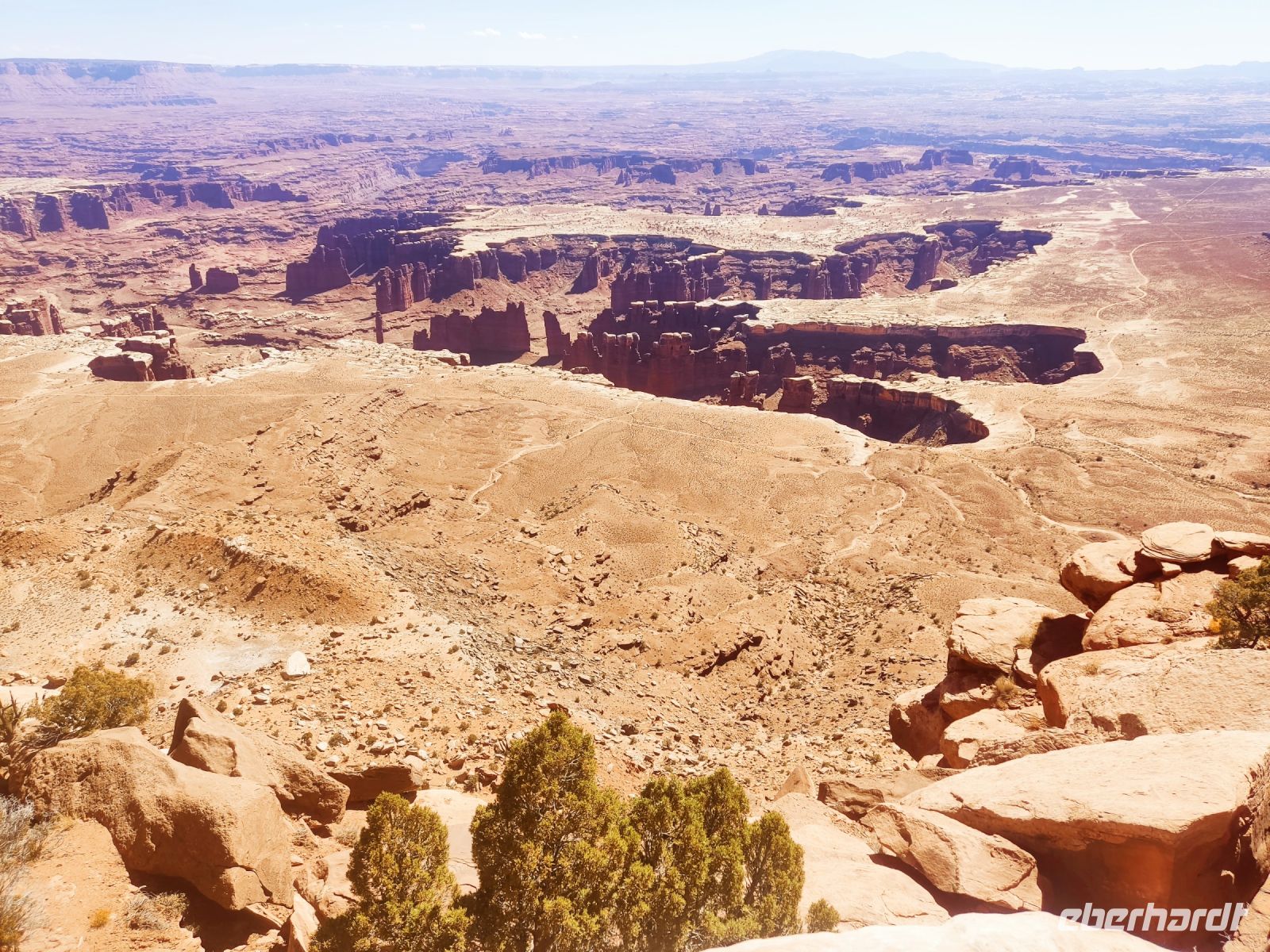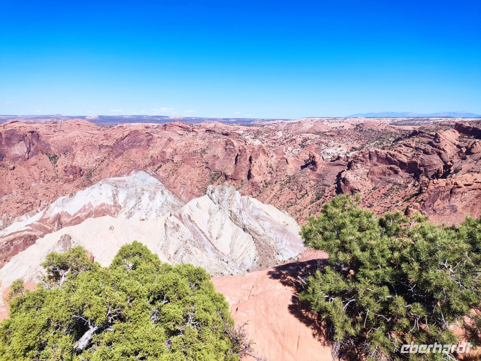 Insgesamt 7 km tolle Wanderstrecken sollten heute auf uns warten. Nach dem Frühstück fuhren wir direkt in den nahegelegenen Canyonlands National Park, der uns schon direkt am Besucherzentrum mit einer atemberaubenden Aussicht begrüßte. Auch der berühmte Mesa Arch, der wahrscheinlich berühmteste Felsbogen im Park, enttäuschte trotz des großen Andrangs nicht. Auf der Wanderung zum White Rim Overlook hatten wir weitestgehend unsere Ruhe und konnten sogar eine kleine Schlange erspähen. Nach der Mittagspause stiegen wir noch zu weiteren Aussichtspunkten hinauf, die einen unbeschreiblichen Blick auf den sogenannten „Upheaval Dome“, einen mächtigen Krater, der wahrscheinlich durch einen Meteoriteneinschlag entstanden ist, ermöglichten. Nach einem weiteren Fotostopp am spektakulären „Dead Horse Point“ ging es dann am späten Nachmittag in Richtung Monticello, wo in unserem Hotel ein toller Pool und anschließend ein leckeres Abendessen für gute Stimmung sorgten.