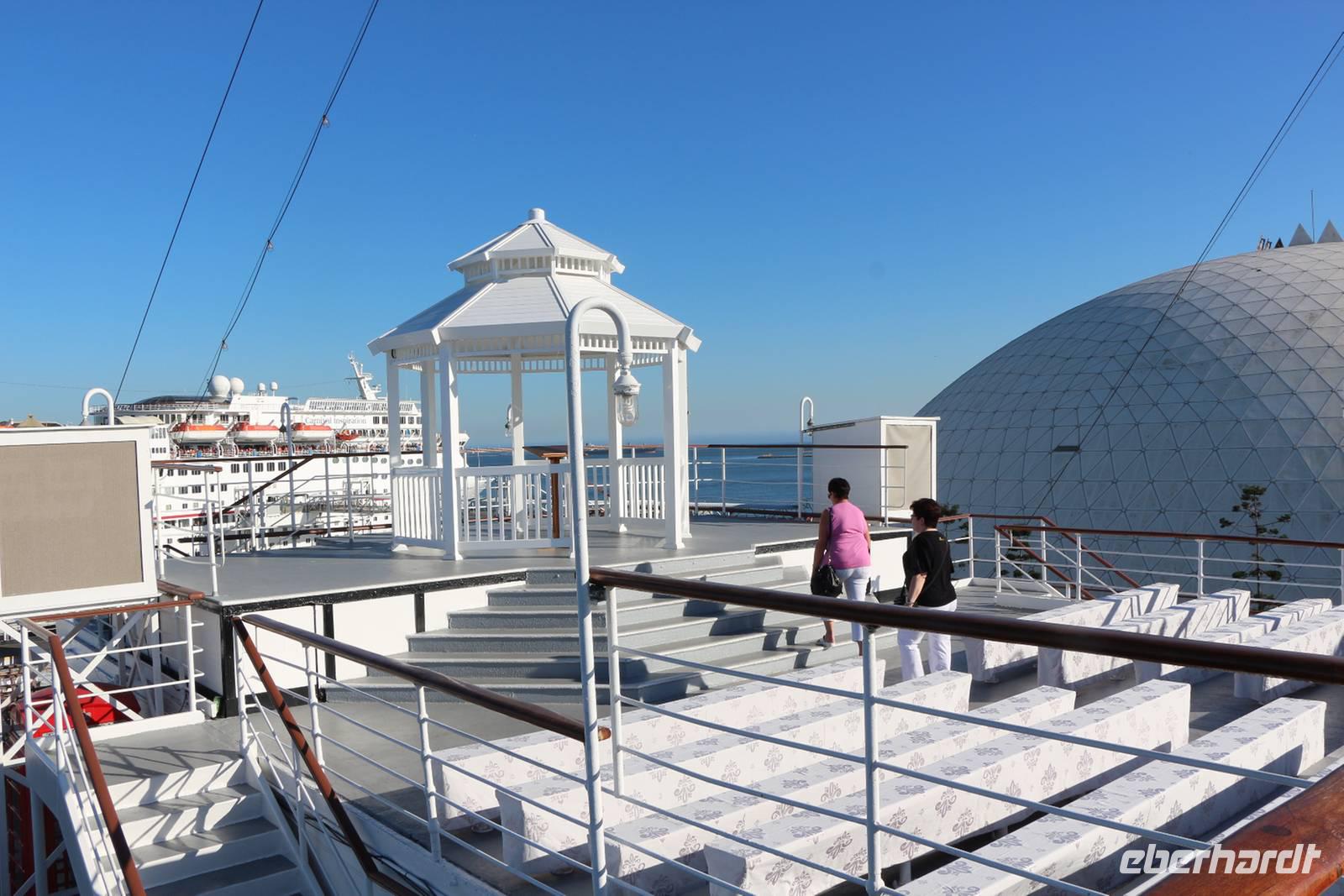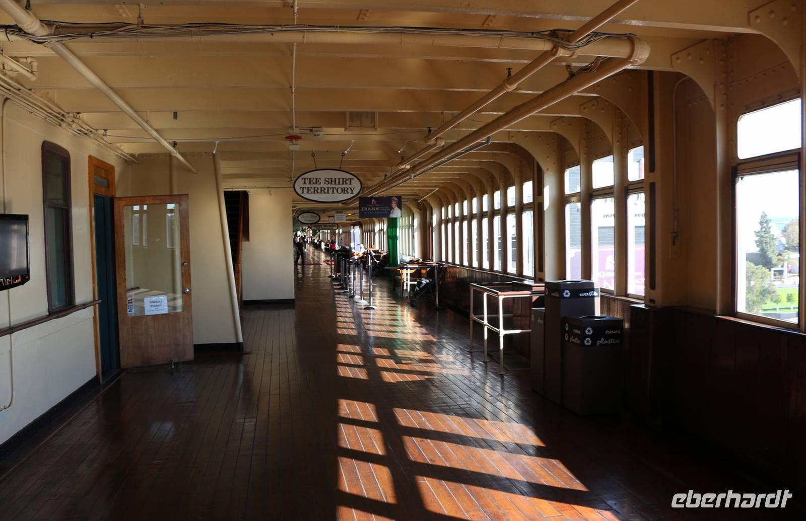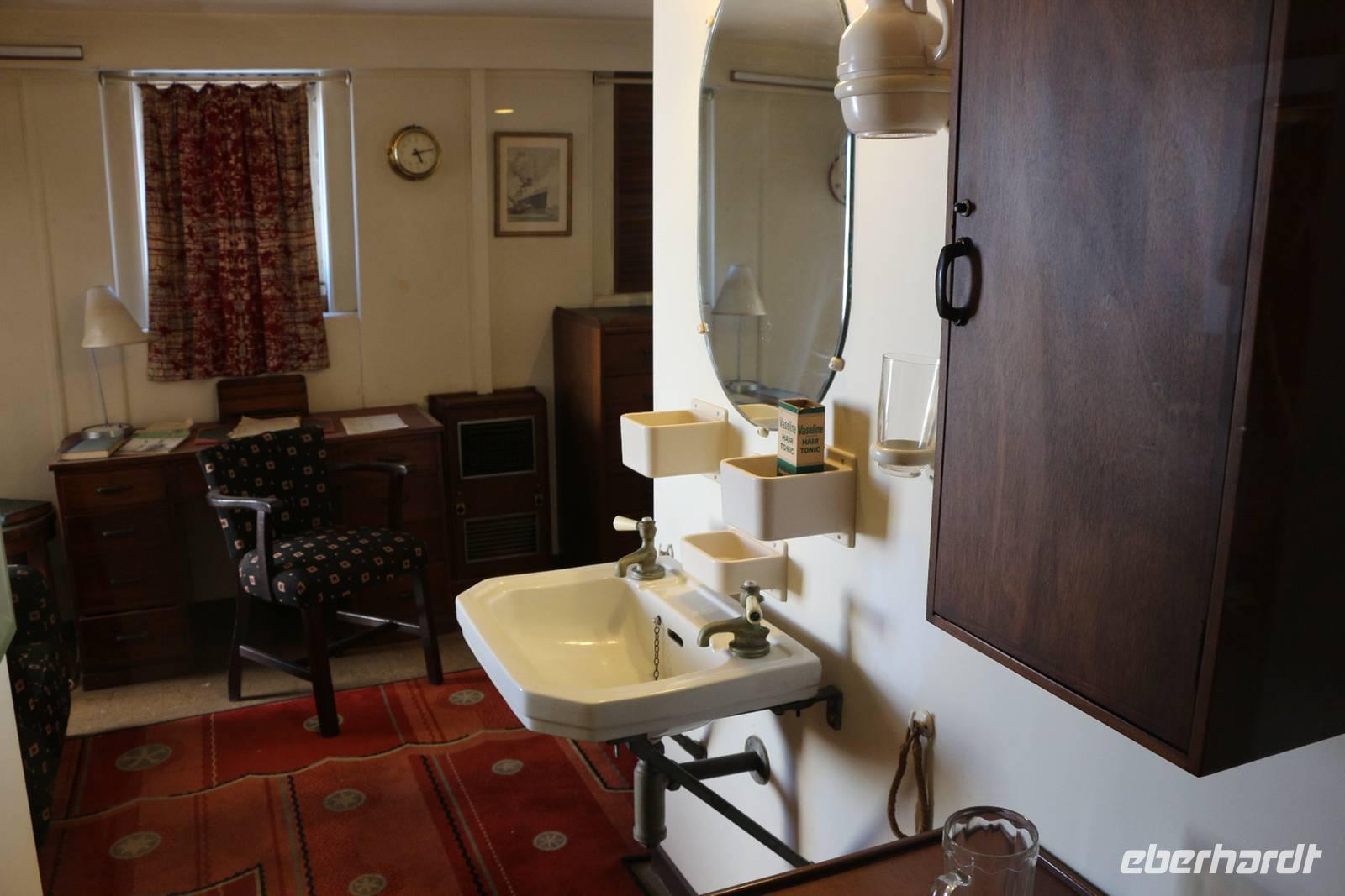 Von Frankfurt startete unsere komplette Reisegruppe von 25 Personen mit Lufthansa in Richtung West-USA (Zeitverschiebung: minus 9 Stunden). Nach unserer Landung in Los Angeles passierten wir zwar mit etwa 30 Minuten Wartezeit, aber ohne Probleme die Einreisekontrolle im Flughafen. Als Reisebegleitung helfe ich allen Gästen bei Fragen am Schalter. Von allen Fingern werden Fingerabdrücke genommen und von jedem Gesicht wird ein Foto gemacht ... und schon haben wir die Einreiseprozedur zügig gemeistert. Am Ausgang empfängt uns unsere örtliche Reiseleiterin Janny, eine gebürtige Holländerin, die schon seit über 20 Jahren in den USA lebt und sich bestens auskennt. Unser Bus bringt uns in etwa 30 Minuten vom Flughafen nach Long Beach, wo uns das erste Highlight der Reise erwartet: Wir wohnen zwei Nächte auf dem berühmten Schiff "Queen Mary", das heute als riesiges Hotelschiff und Museum dient. Die "Queen Mary" wurde 1936 als Luxusliner für Atlantiküberquerungen und Kreuzfahrten in den Dienst gestellt. Noch heute fühlt man sich in frühere Zeiten zurückversetzt, denn die Ausstattung der Räume und viele Einbauten in den Kabinen sind noch im originalen Zustand erhalten. Bei einem Schiffsrundgang zeigt uns Janny die schönsten Teile des Schiffes: das Promenadendeck mit Geschäften und Restaurants, die Observation Bar im Art Deco Stil, die Flaniermeile mit dem gewachsten Holzfußböden, das Sonnendeck, die ehemaligen Kapitänswohnung und die Brücke mit den historischen Steuerinstrumenten. Wir wohnen in originalen Kabinen, die nach heutigem Standard ausgestattet sind und dennoch über viele historische Einbauten verfügen und ein museales Flair ausstrahlen. Unser Begrüßungsabendessen nehmen wir im Promenade Cafe an Bord ein mit tollem Blick auf die Bucht von Long Beach.