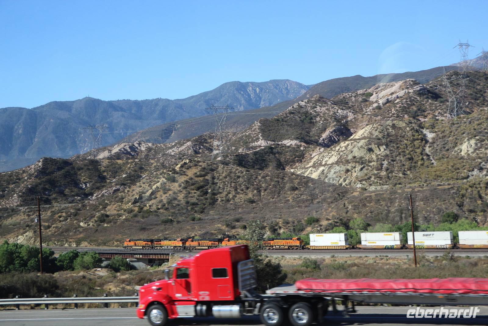 Heute liegt die längste Fahrtstrecke der Reise vor uns. Mehr als 700 Kilometer fahren wir bis zu unserem Hotel in Bakersfield. Erst hier ist die Mojave-Wüste zu Ende und wir erreichen die fruchtbaren Landwirtschaftsgebiete von Kalifornien.