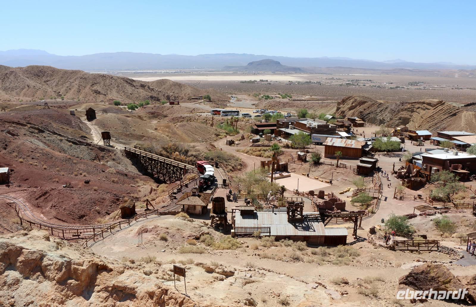 Wir verlassen Los Angeles und Kalifornien und beginnen unsere Rundreise. Tagesziel ist die Spielerstadt Laughlin in Nevada, die "kleine Schwester von Las Vegas". Auf unserer Reise durch die Mojave-Wüste beuschen wir gegen Mittag die Geisterstadt Galico. 1881 als Siedlung des Silberbergbaus gegründet ist sie heute ein Freilichtmuseum, das dem Besucher das Leben im "Wilden Westen" näher bringt. Der Silberabbau war irgendwann nicht mehr lohnenswert, so dass die Einwohner wegzogen und diese Geisterstadt hinterließen. Bei einem Rundgang bestaunen wir die alten Holzgebäude, das kleine Schulhaus, den Saloon und die kleine Bergbahn. Souvenirgeschäfte und Cafes laden zum Verweilen im historischen Ambiente ein.