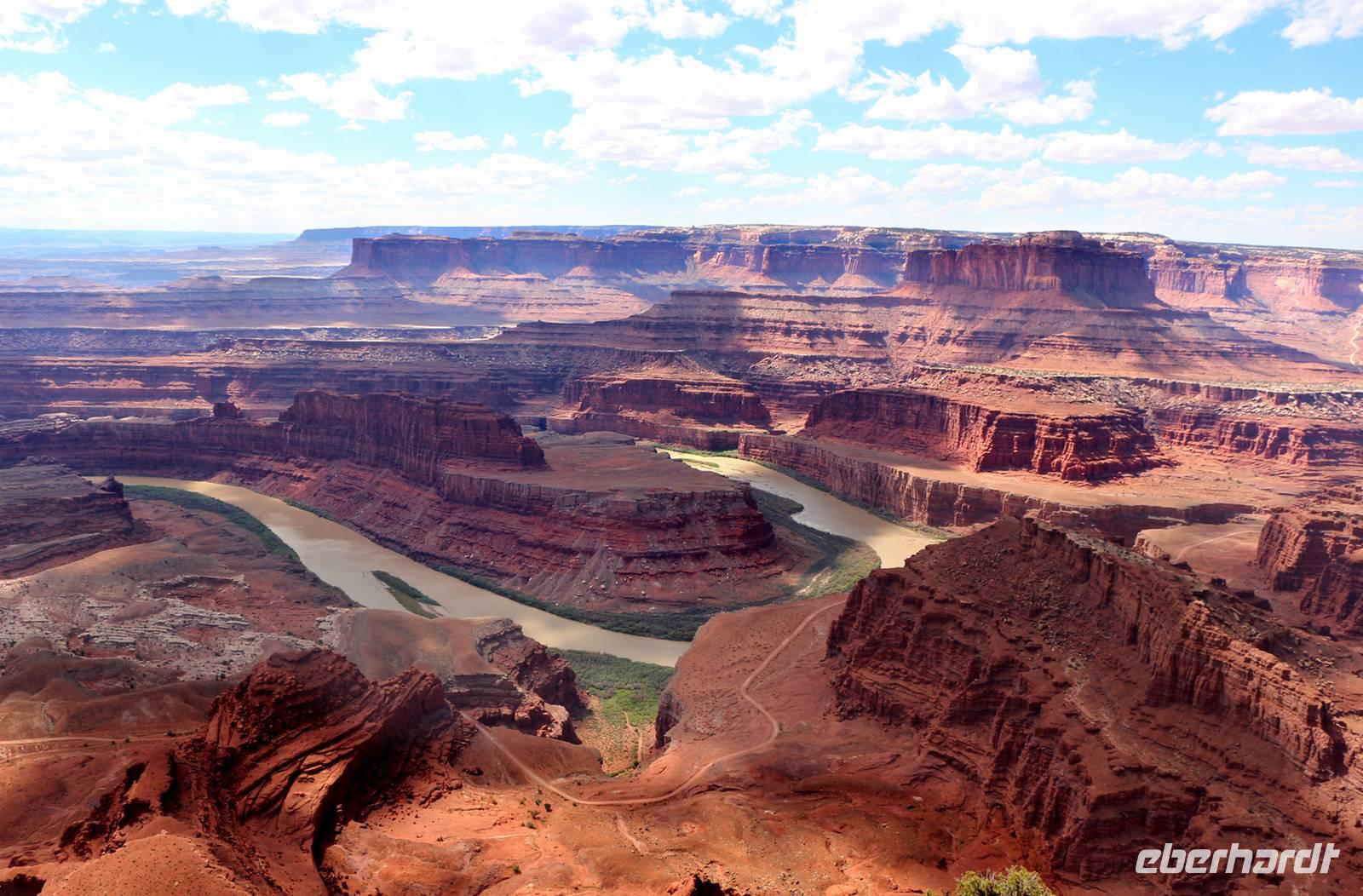 Hier schlengelt sich erneut der Colorado River durch die Steilhänge vielfarbiger Canyons. Am Aussichtspunkt Dead Horse Point genießen wir faszinierende Ausblicke auf das Flusstal und unser Mittagspicknick unter freiem Himmel.