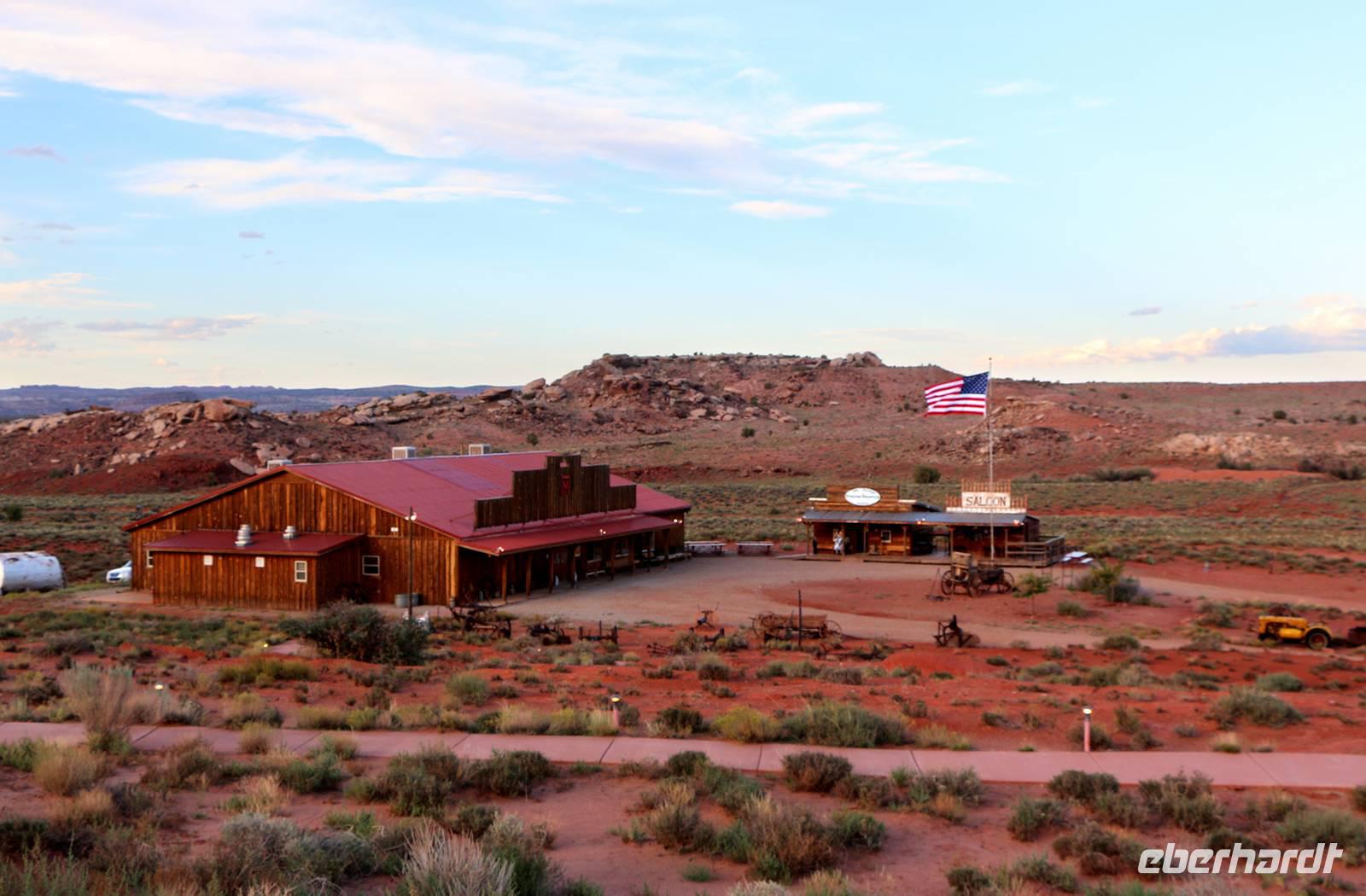 Am Nachmittag bleibt Zeit für einen Bummel durch die Geschäftsstraße von Moab, in der man hübsche Souvenirs und Kunsthandwerk der Indianer findet. Oder man verbringt ein paar entspannende Stunden am Hotelpool. Zum Abendessen sind wir heute zu einer Westernshow in einer nachgebauten kleinen Ranch unweit von Moab eingeladen. Nach dem typischen Cowboy-Essen mit Bohnen, Fleisch und Backkartoffeln wird auf der Bühne Country-Livemusik gespielt. Beschwingt lassen wir den Abend hier ausklingen.