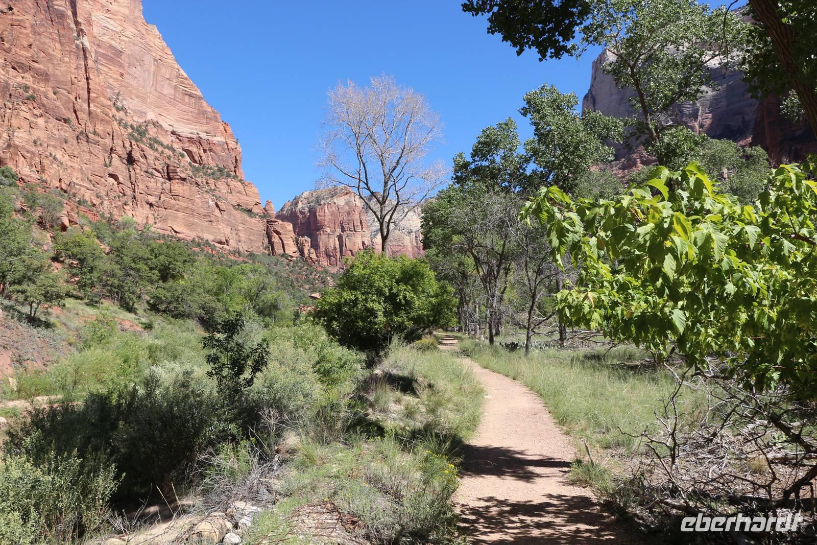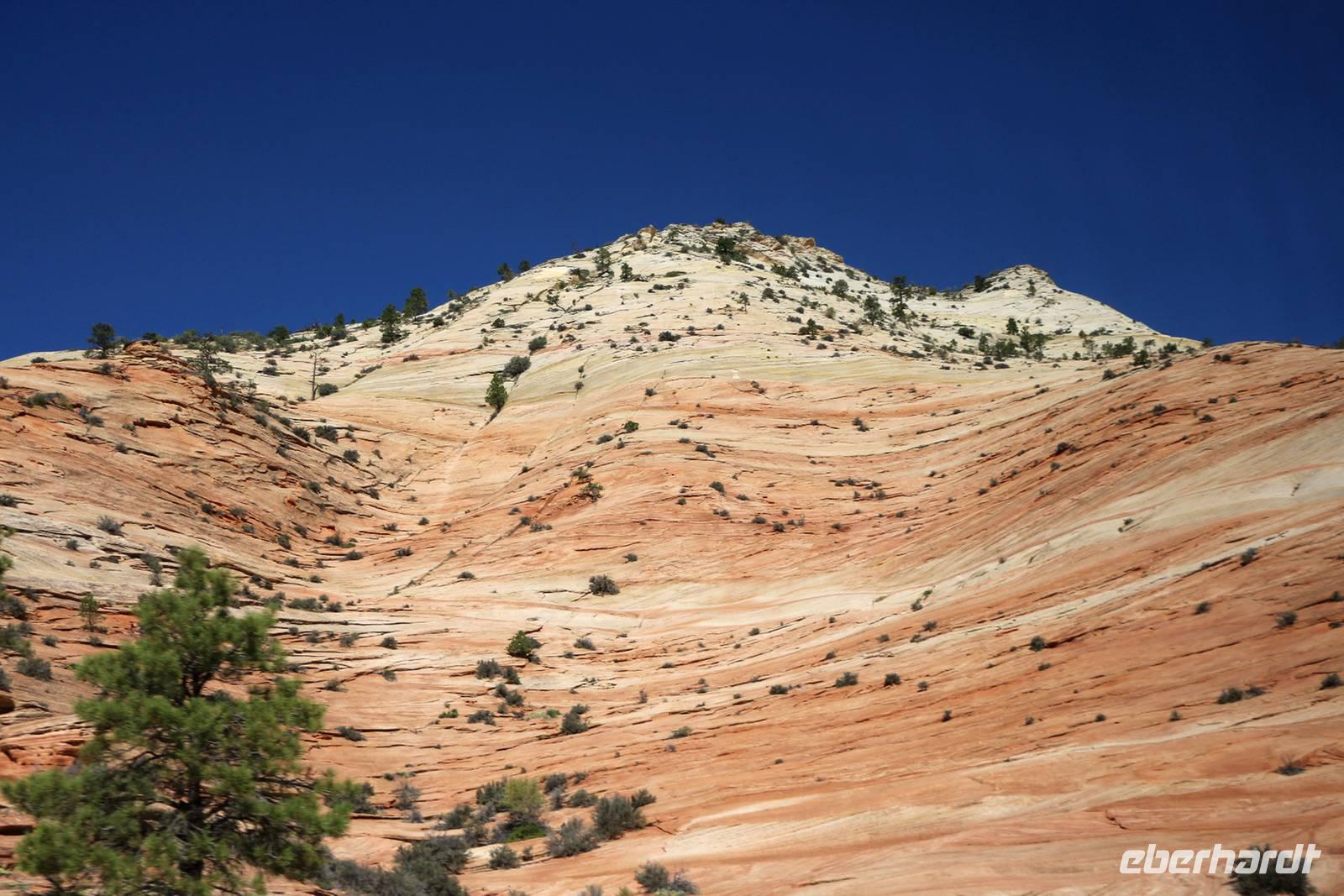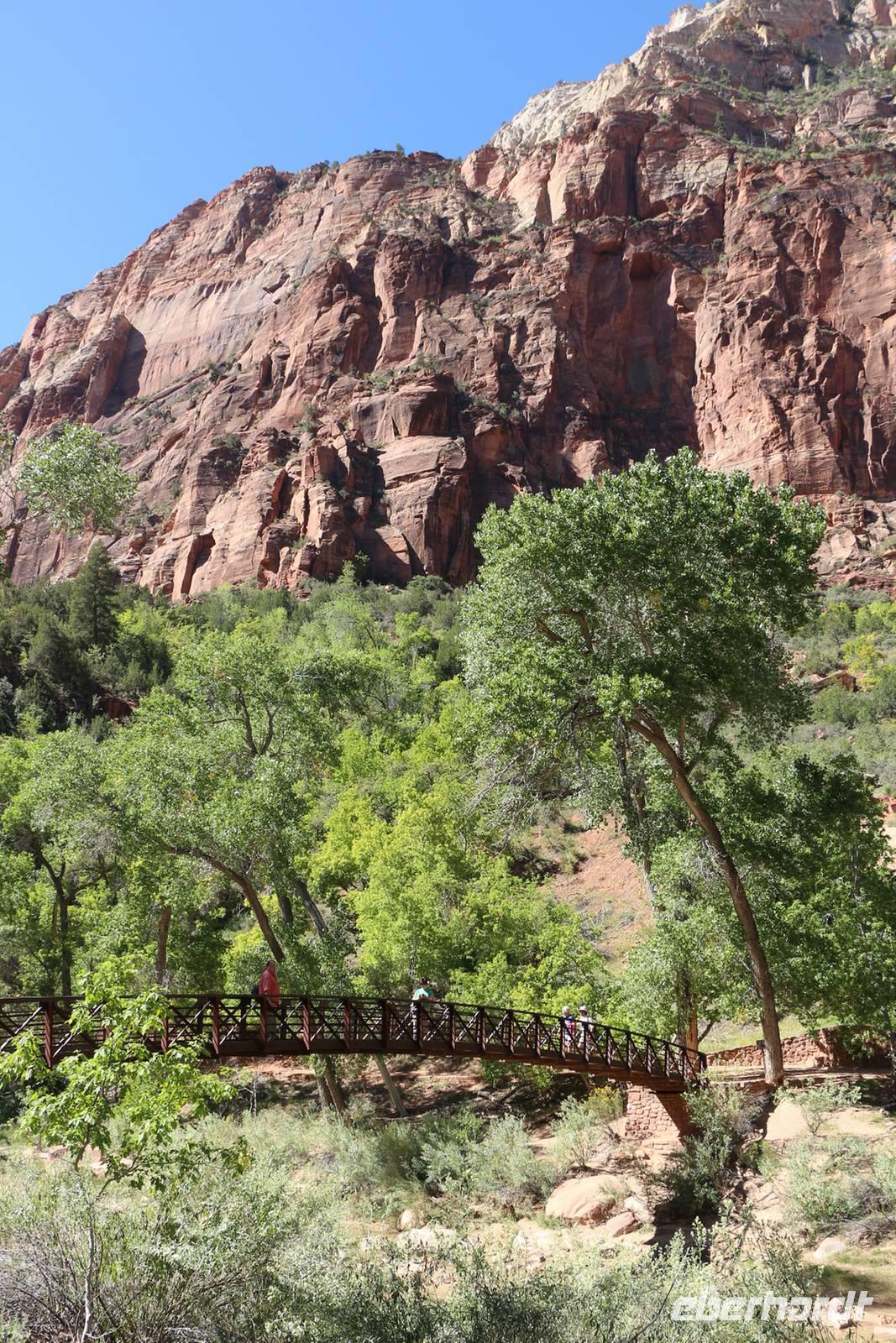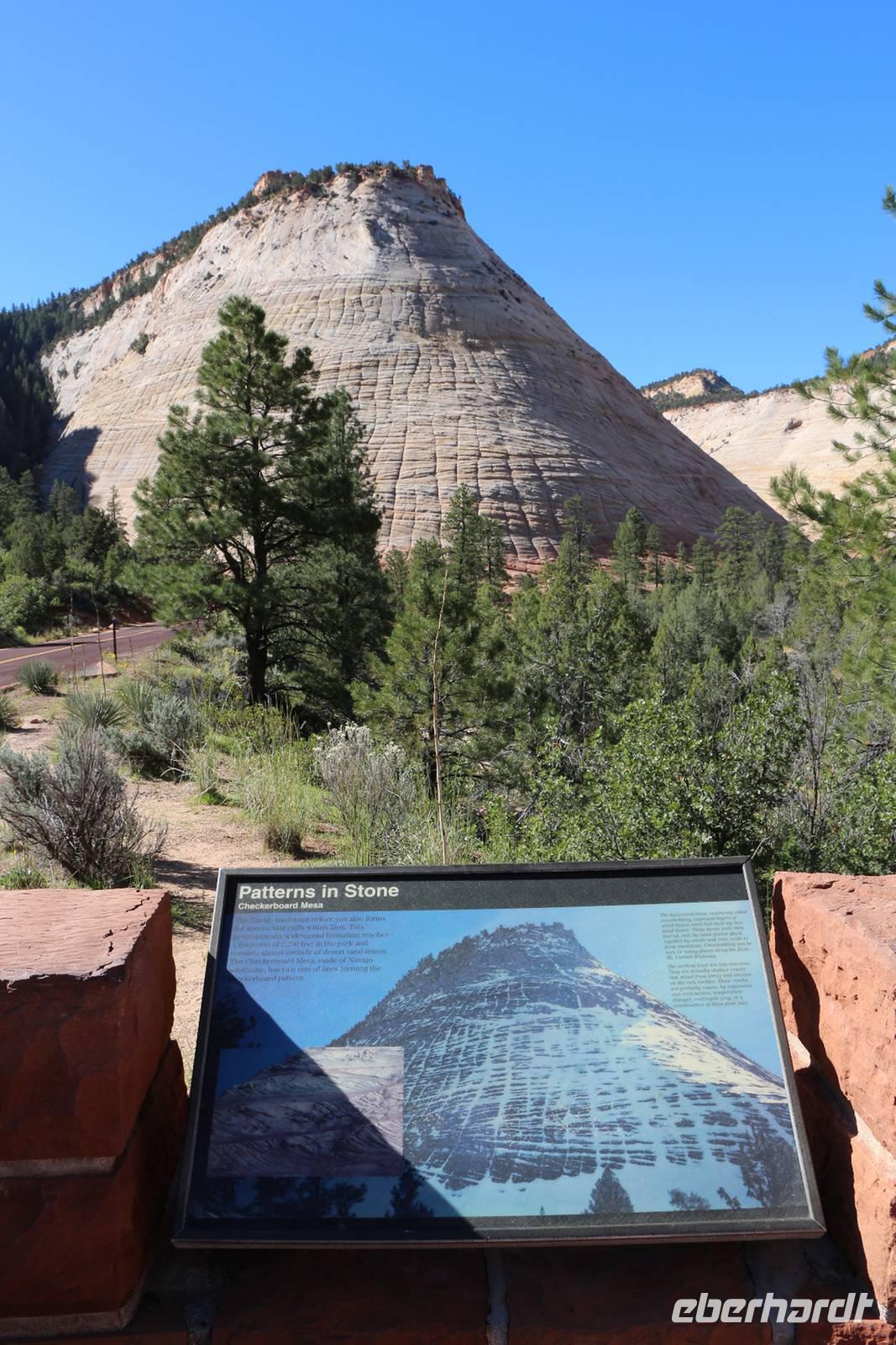 In der Nähe des Bryce Canyon legen wir am Morgen einen Fotostopp am Red Canyon ein. Die Felsformation "Salz- und Pfefferstreuer" leuchtet rot in der Morgensonne. Gegen Mittag erreichen wir den Zion Nationalpark ganz im Südwesten Utahs, der wieder mit ganz anderen Gesteinsformationen besticht. Wir halten am "Schachbrett-Felsen", auf dem sich horizontale und vertikale Linien wie auf einem Schachbrettmuster befinden. Unterwegs sehen wir sogar ein paar Dickhornschafe am Straßenrand. Durch einen Tunnel und Serpentinen geht es hinunter zum Zion Canyon Besucherzentrum, wo es einen Rastplatz mit Restaurant und Cafe gibt. Von hier kann man zu zahlreichen Wanderungen durch die Canyon-Landschaft aufbrechen. Wir haben Zeit für ein Mittagspicknick oder einen Spaziergang entlang der Wanderwege oder am Virgin River. Auch hier sollte man nach Tieren Ausschau halten, wir sehen Streifenhörnchen, Biberspuren und einen Maultierhirsch. Schließlich geht unsere Fahrt weiter in Richtung Las Vegas.