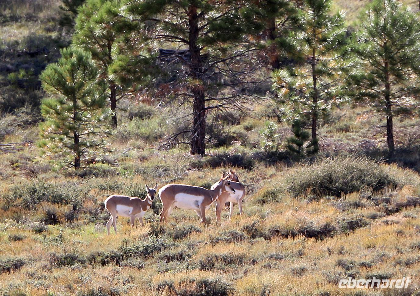 Einer der schönsten Nationalparks in Utah ist zweifelsohne der Bryce Canyon, zu dem wir heute reisen. Wie ein Märchenland aus Sandstein in allen Orange- und Rottönen erstreckt sich der riesige Canyon in der grünen, baumgesäumten Landschaft. Hier ist es etwas kühler, denn der Bryce Canyon liegt auf über 2000 Metern Höhe. Bei etwa 15 °C und kühlendem Wind kommen nun unsere wärmeren Sachen zum Einsatz . Bei unserer kleinen Rundfahrt halten wir an den schönsten Aussichtspunkten. Erster Halt ist am höchsten Punkt des Bryce Canyon, am Bryce Point, der 2592 Meter über dem Meeresspiegel liegt. Von hier haben wir den weitesten Blick in den Canyon. Wir sehen auch flinke Streifenhörnchen und einen blauen Diademhäher (Stellars Jay). Weiter geht's zum Inspiration Point, von wo wir zu einer 1,5-stündigen Wanderung entlang der oberen Kante des Bryce Canyons starten. Unterwegs stoppen wir dabei immer wieder an einmaligen Panoramasichten über das Märchenland aus Stein. Wirklich unglaublich! Ein breiter Wanderweg führt auch direkt durch den Canyon, dieser ist allerdings etwas anspruchsvoller durch den Auf- und Abstieg. Letzter Halt ist am Sunset Point, an dem das Abendlicht die Gesteinsformationen noch einmal in leuchtende Farben hüllt. Hier sehen wir auch ein paar Gabelbock-Antilopen, die in der Prärie weit verstreut leben, bevor wir unser uriges Hotel "Ruby's Inn" direkt am Nationalpark erreichen.