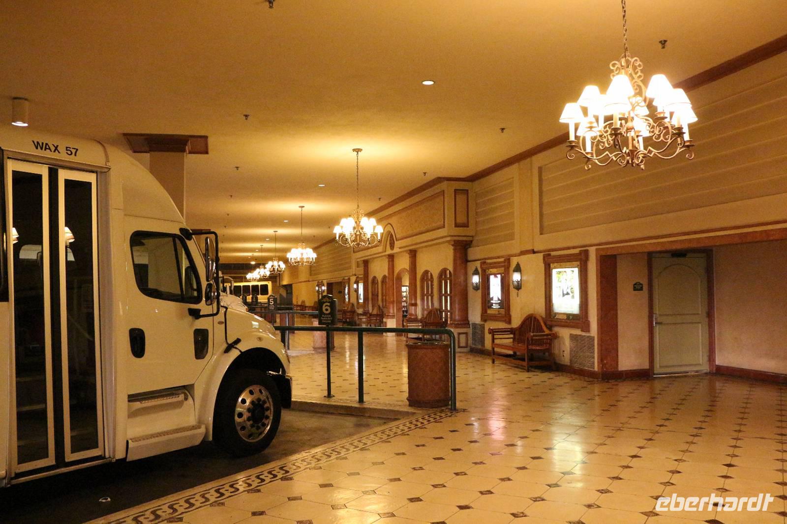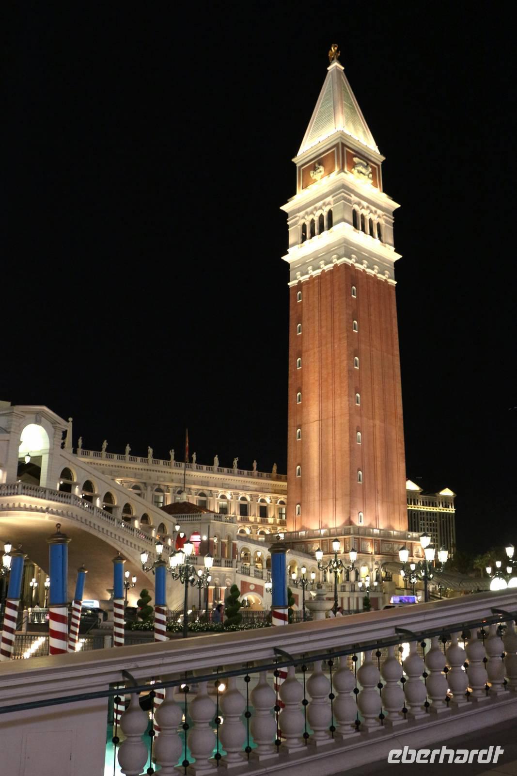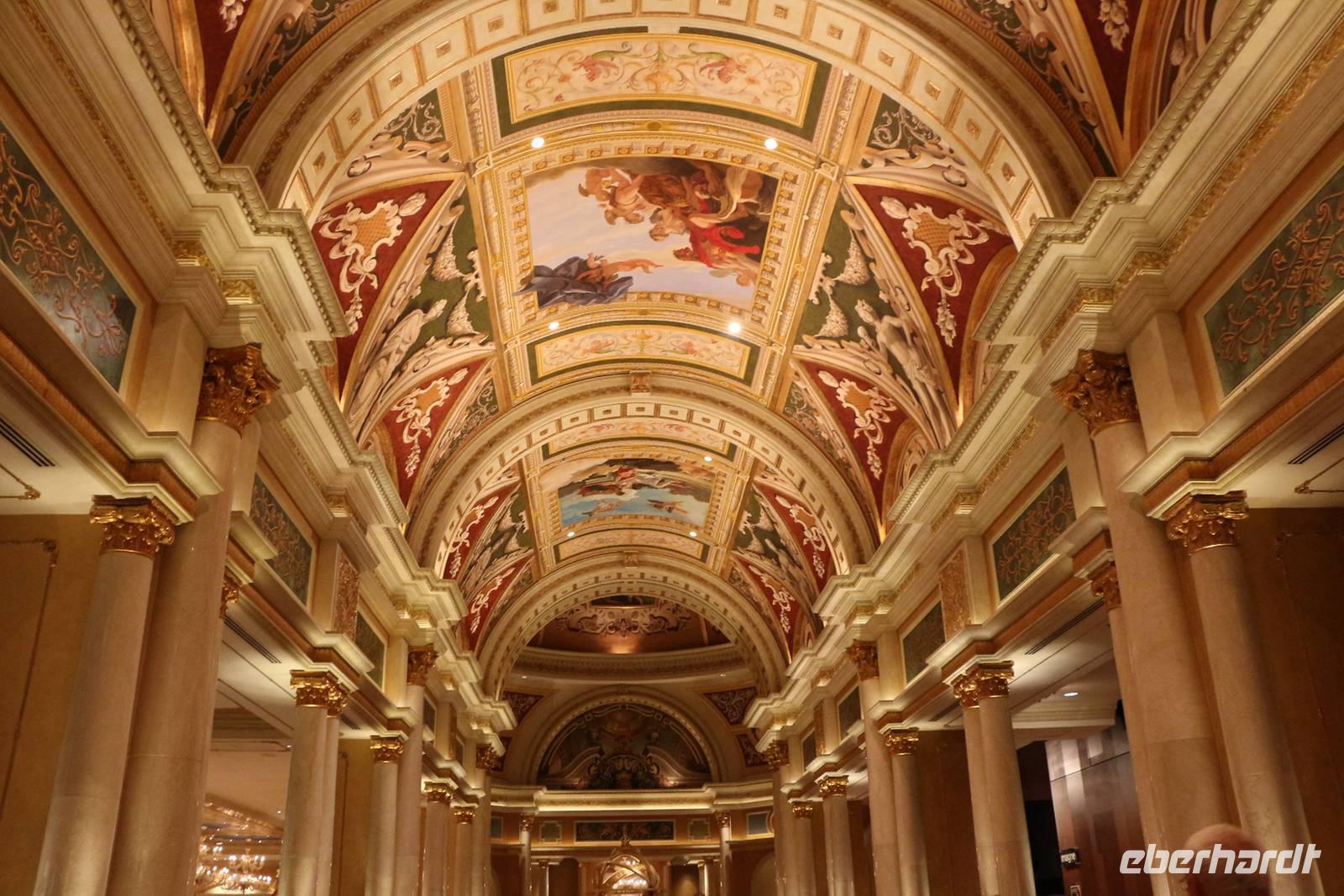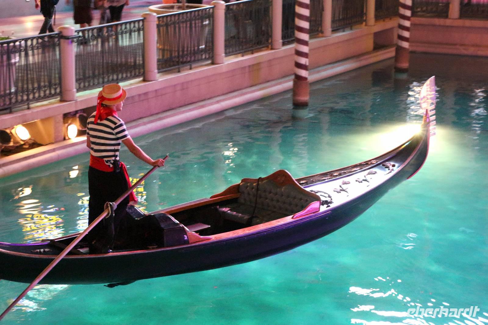 Nächster Halt ist die Hotelanlage des "Venetian". Zahlreiche italienische Wand- und Deckenmalereien schmücken das Innere des Hotels. Im Außenbereich ist die Kanalwelt von Venedig nachgebaut mit Rialtobrücke, Markusturm und Gondolieren, die Besucher durch die beleuchteten Kanäle schippern. Von hier beobachten wir auch den nachgestellten Vulkanausbruch vorm Hotel "Mirage". Wir fahren weiter durch das Hochzeitsviertel, in dem es die bekannten kleinen Hochzeitskapellen gibt.