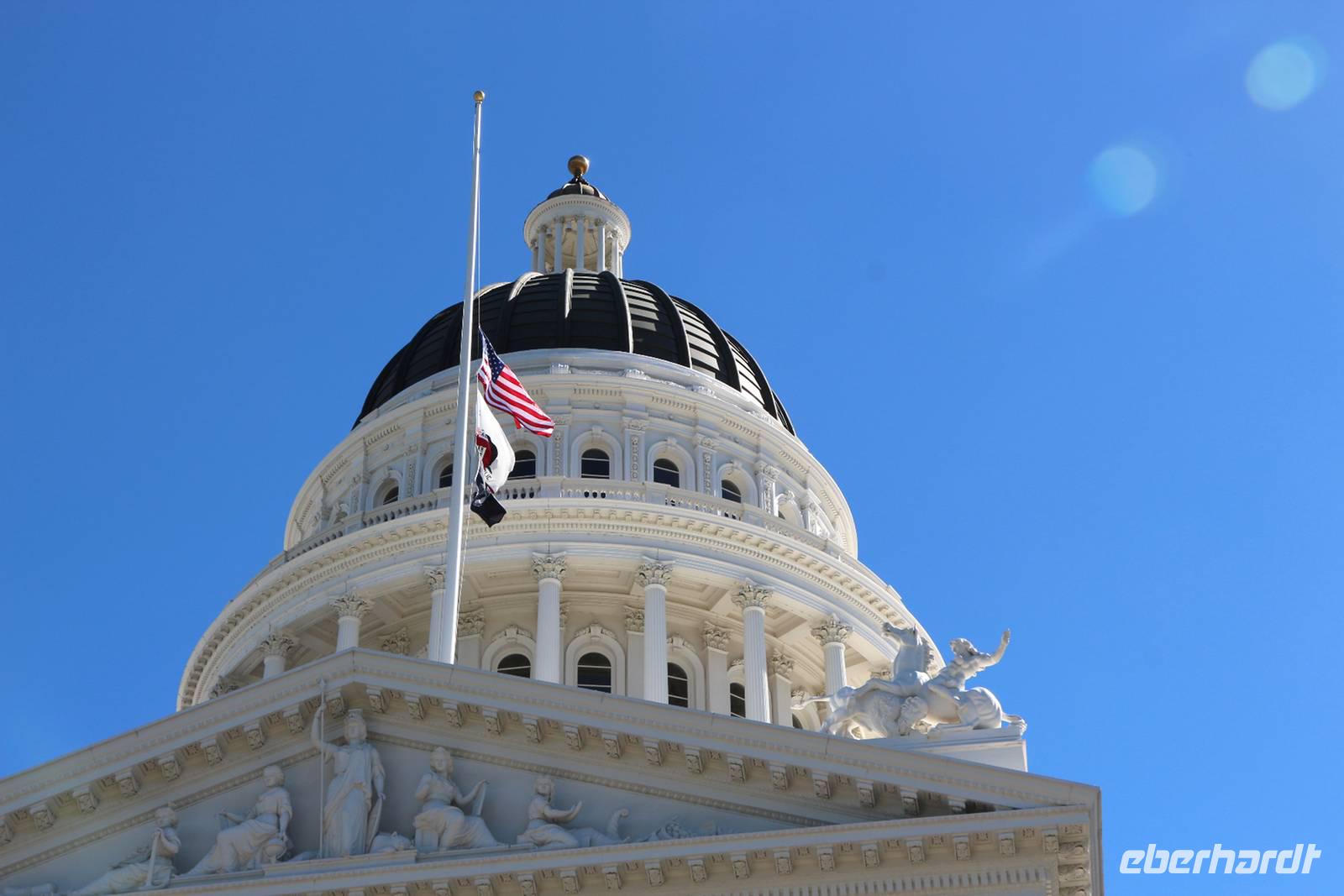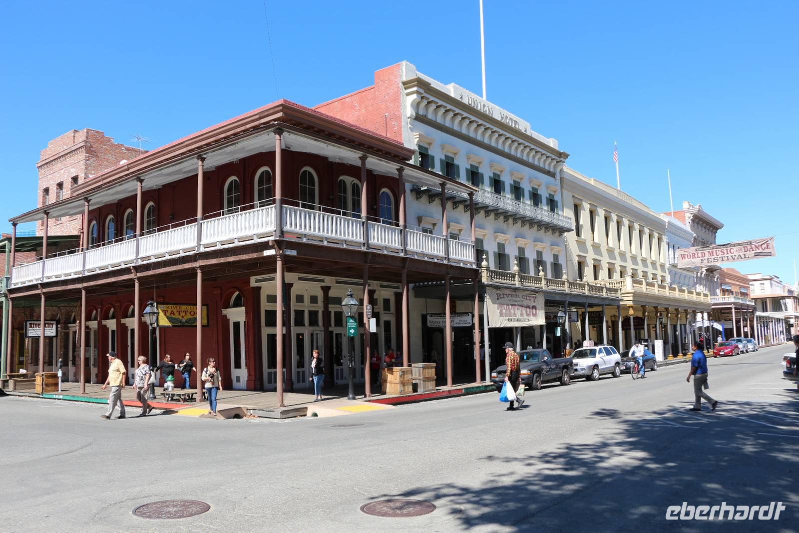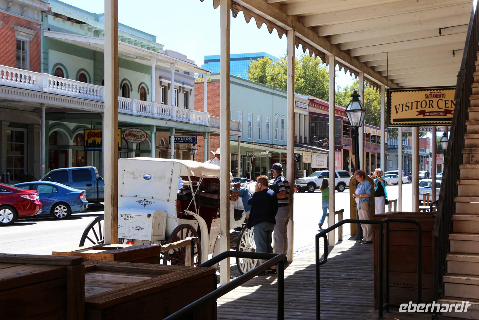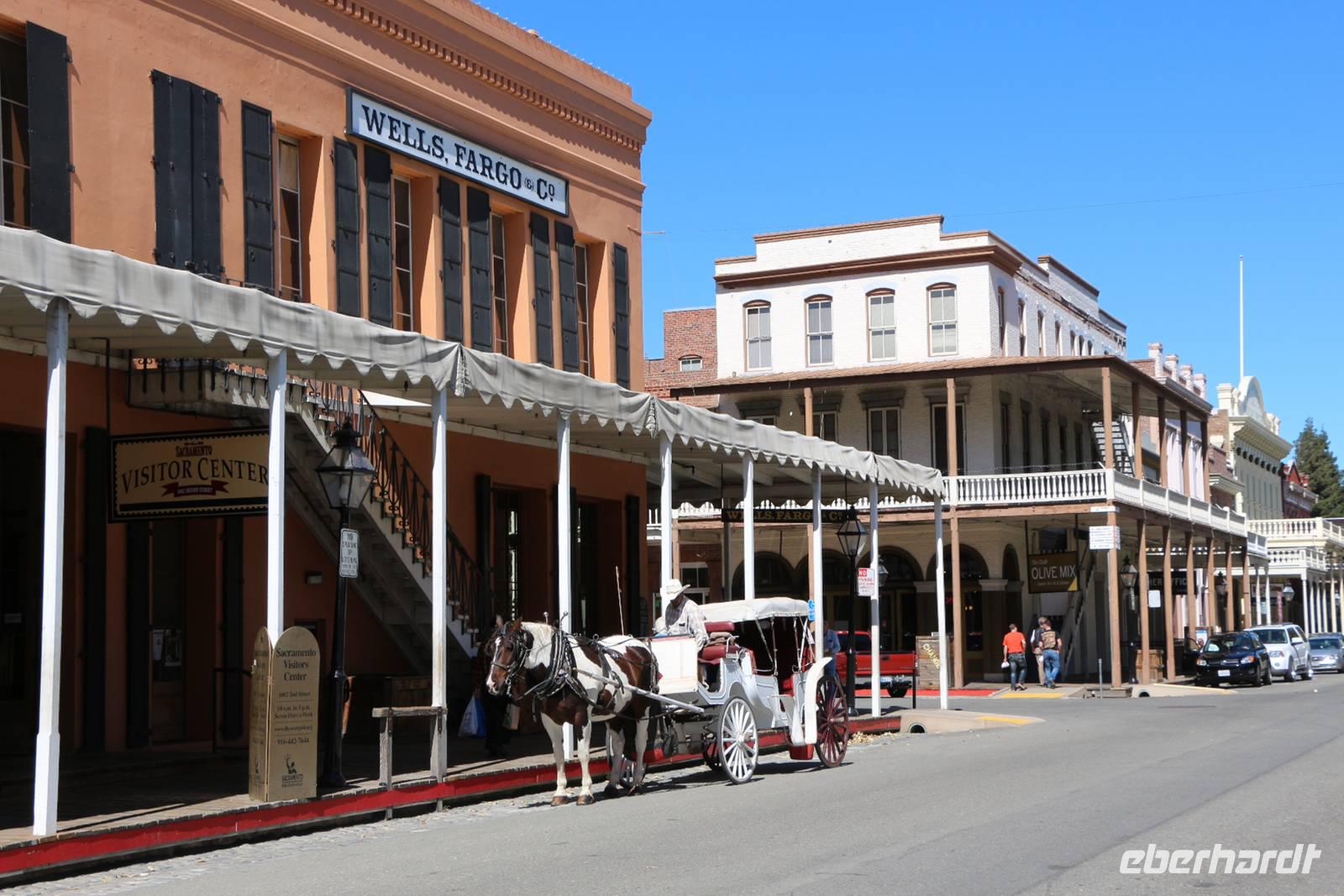 Unser nächstes Ziel ist Sacramento, die Hauptstadt Kaliforniens. Nach einem Zwischenstopp an einem Hofladen im Städtchen Merced, wo wir Nüsse und Trockenfrüchte aus Kalifornien kaufen können, erreichen wir Sacramento gegen Mittag. Zuerst statten wir dem herrlichen Parlamentsgebäude einen Besuch ab. Wenn keine offiziellen Empfänge sind, kann man mit kurzer Sicherheitskontrolle auch in das Gebäude hinein gehen. Im Inneren sehen wir die mondäne Architektur, die Sitzungssäle und einige Museumsräume zur Geschichte der Region. Dann ist Zeit für einen Bummel durch die historische Altstadt Sacramentos, in der man sich in die Zeit der Stadtgründung und des Goldrausches im 19. Jahrhundert zurückversetzt fühlt. Ein ganzes Viertel entlang des Sacramento River wurde hier erhalten und rekonstruiert: der alte Bahnhof, Schaufelraddampfer, Gehsteige aus Holz, das alte Schulhaus und Saloons aus dem "Wilden Westen".
