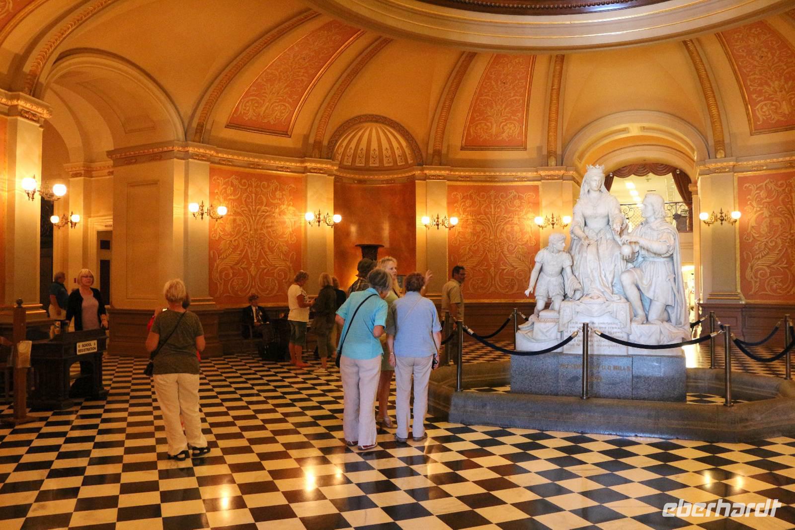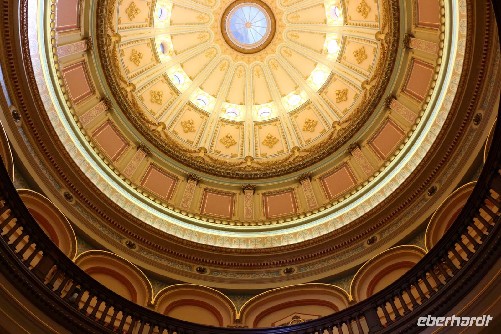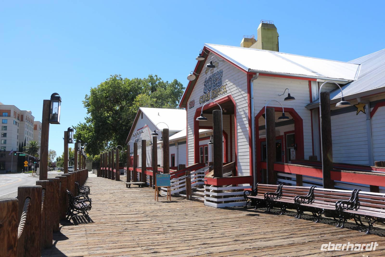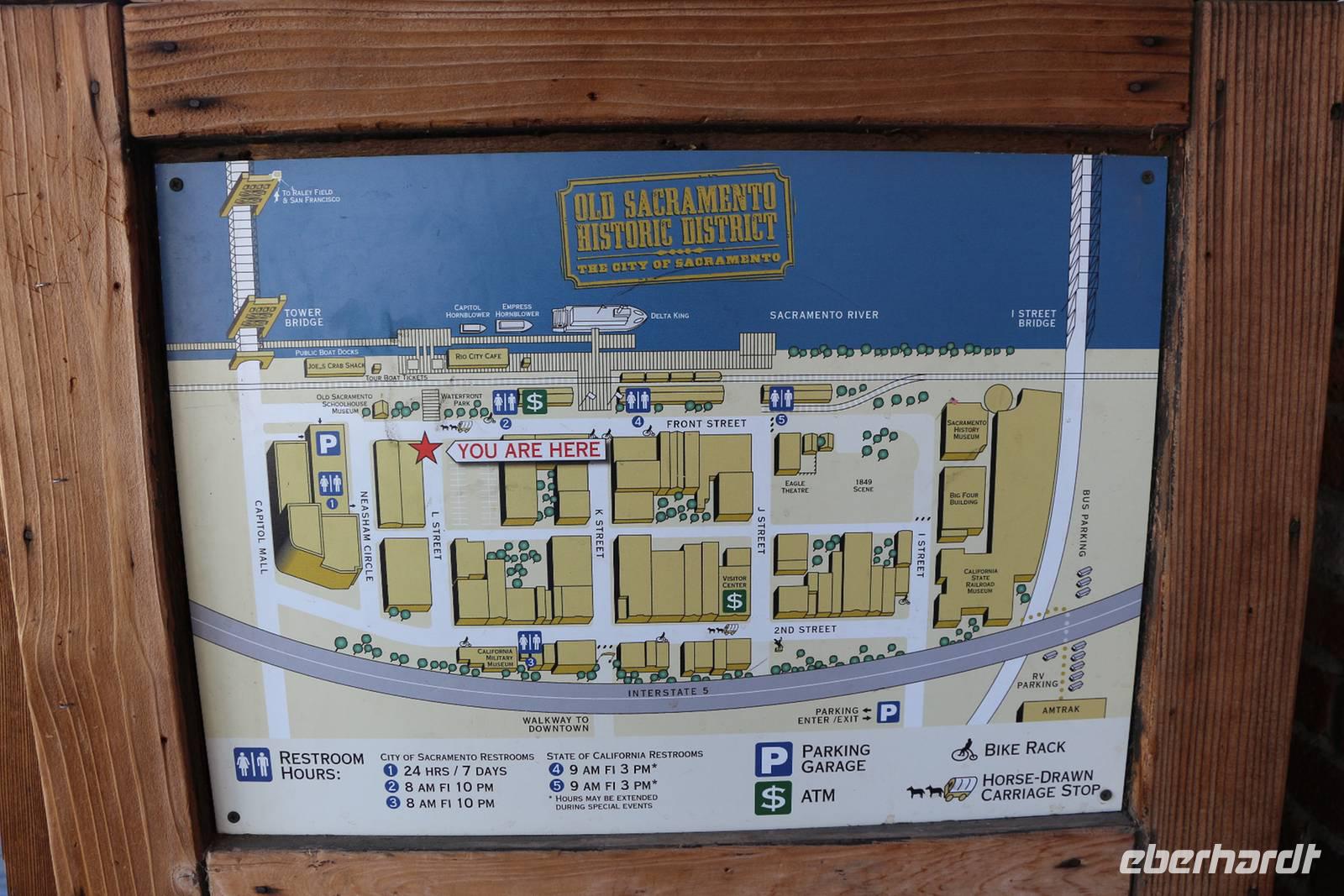 Unser nächstes Ziel ist Sacramento, die Hauptstadt Kaliforniens. Nach einem Zwischenstopp an einem Hofladen im Städtchen Merced, wo wir Nüsse und Trockenfrüchte aus Kalifornien kaufen können, erreichen wir Sacramento gegen Mittag. Zuerst statten wir dem herrlichen Parlamentsgebäude einen Besuch ab. Wenn keine offiziellen Empfänge sind, kann man mit kurzer Sicherheitskontrolle auch in das Gebäude hinein gehen. Im Inneren sehen wir die mondäne Architektur, die Sitzungssäle und einige Museumsräume zur Geschichte der Region. Dann ist Zeit für einen Bummel durch die historische Altstadt Sacramentos, in der man sich in die Zeit der Stadtgründung und des Goldrausches im 19. Jahrhundert zurückversetzt fühlt. Ein ganzes Viertel entlang des Sacramento River wurde hier erhalten und rekonstruiert: der alte Bahnhof, Schaufelraddampfer, Gehsteige aus Holz, das alte Schulhaus und Saloons aus dem "Wilden Westen".