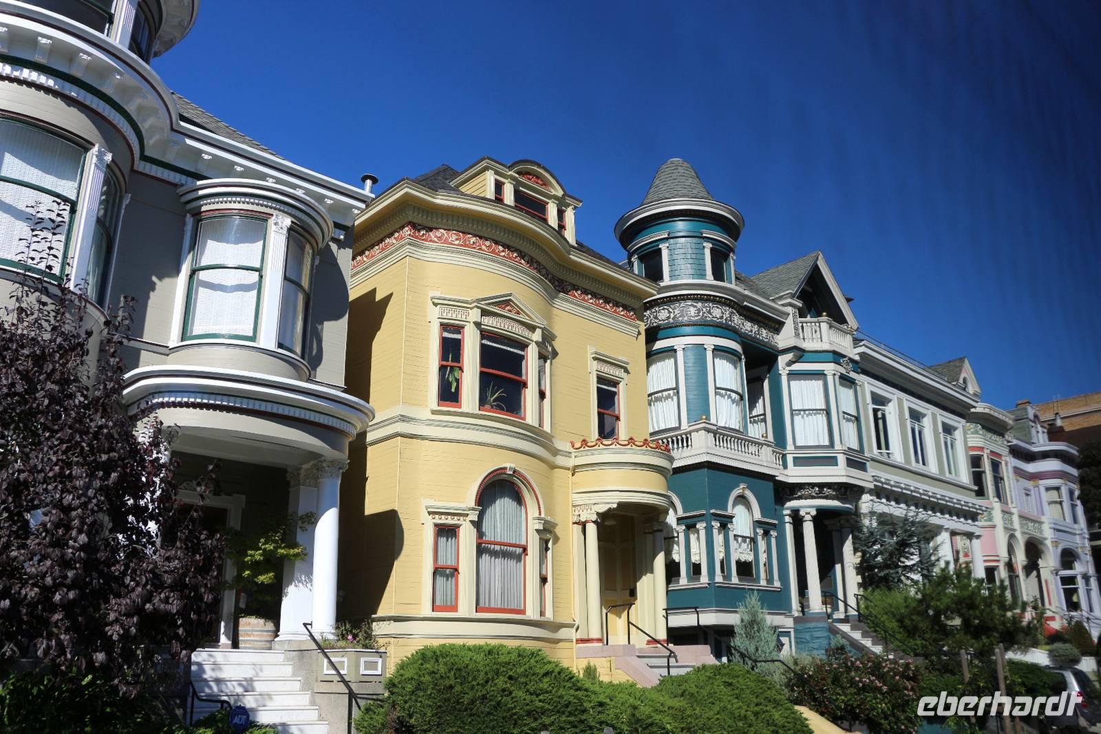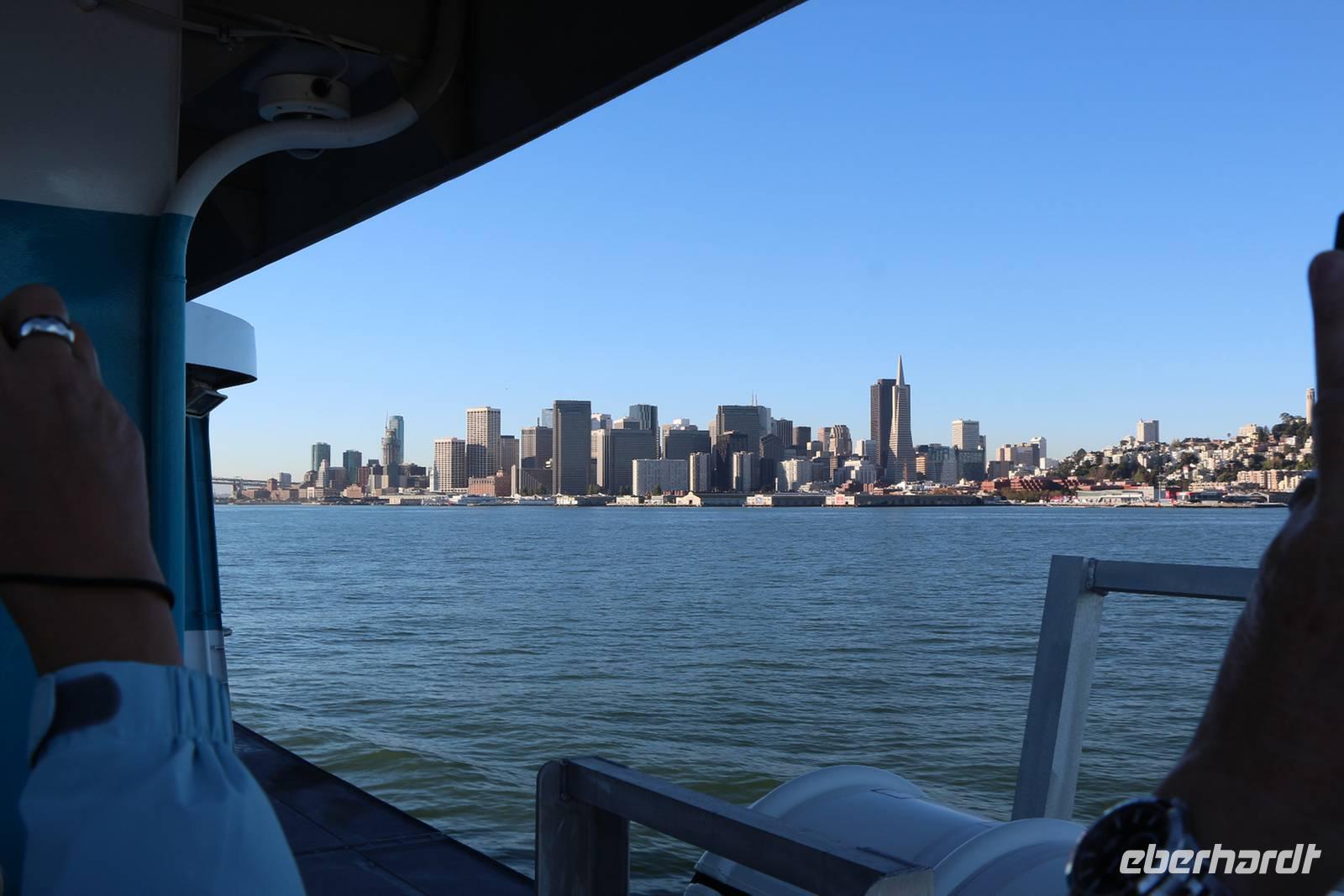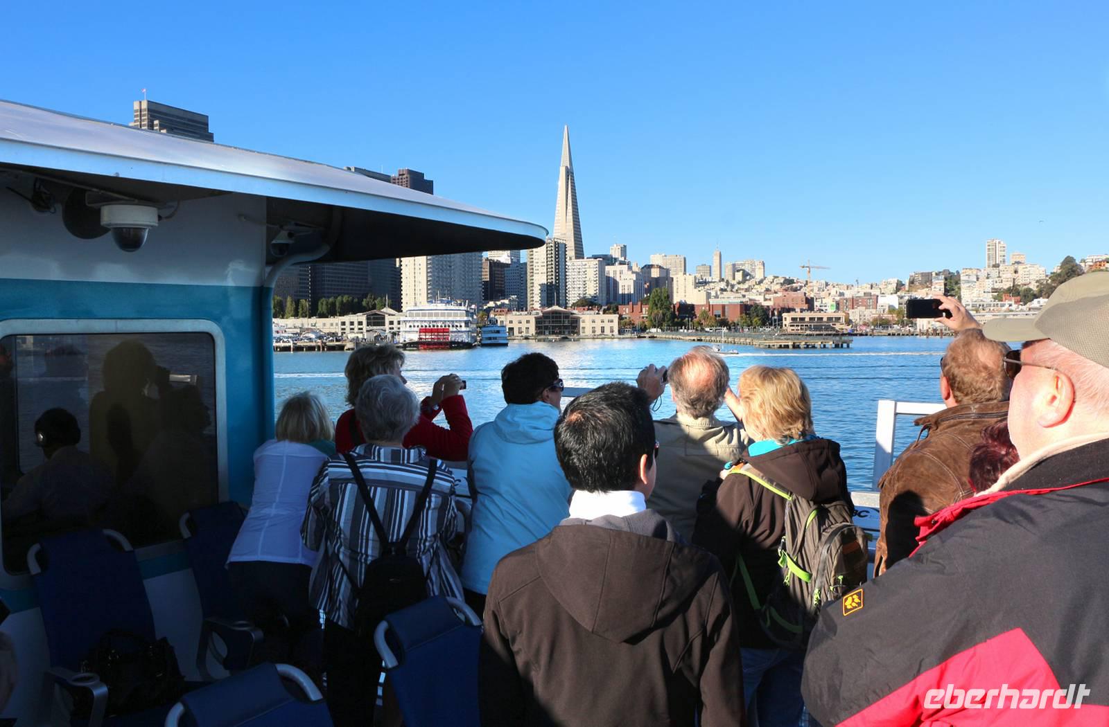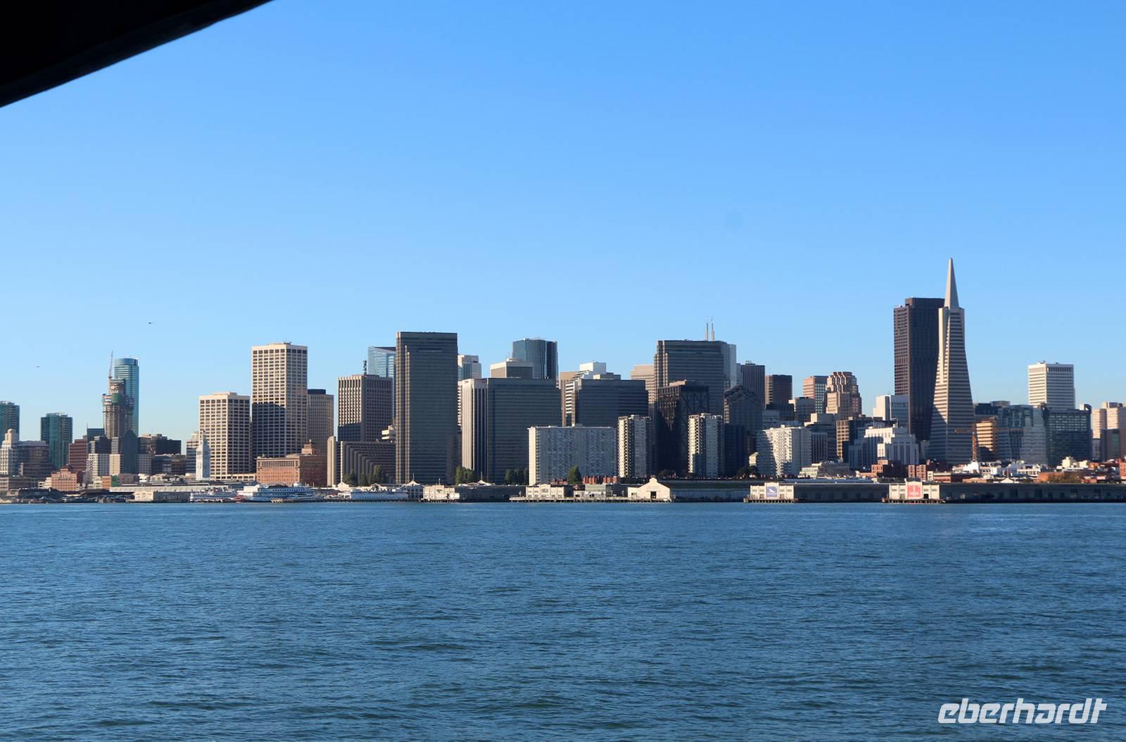 Die letzte Traumstadt unserer Rundreise lernen wir heute kennen: San Francisco. Wir reisen aber nicht mit dem Bus an, sondern nehmen die Fähre von Vallejo über die Bucht von Francisco. Die Überfahrt mit dem modernen Fährschiff dauert etwa eine Stunde. Das Wetter ist perfekt, obwohl es noch früh am Morgen ist. Unterwegs können wir einen ersten Blick auf die Golden Gate Bridge und die sagenumwobene Gefängnisinsel Alcatraz werfen, natürlich ist auch die Skyline der Stadt vom Wasser aus ein beeindruckender Anblick. Am Hafen von San Francisco wartet unser Reisebus mit unserem Gepäck auf uns und wir starten zur ganztägigen Stadtrundfahrt. Wir sehen Chinatown, den belebten Union Square, das Parlamentsgebäude und den Alamo Square mit den berühmten "Painted Ladies" - den hübschen bunten Holzhäusern im viktorianischen Stil. Vom Aussichtspunkt Twin Peaks genießen wir bei herrlichem Sonnenschein einen einzigartigen Panoramablick über San Francisco.