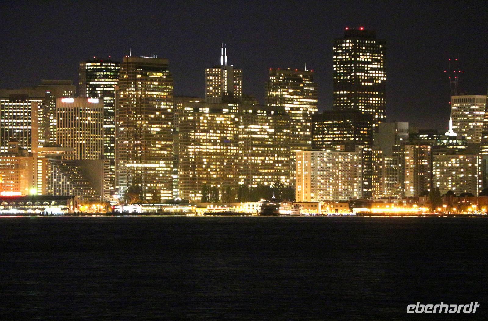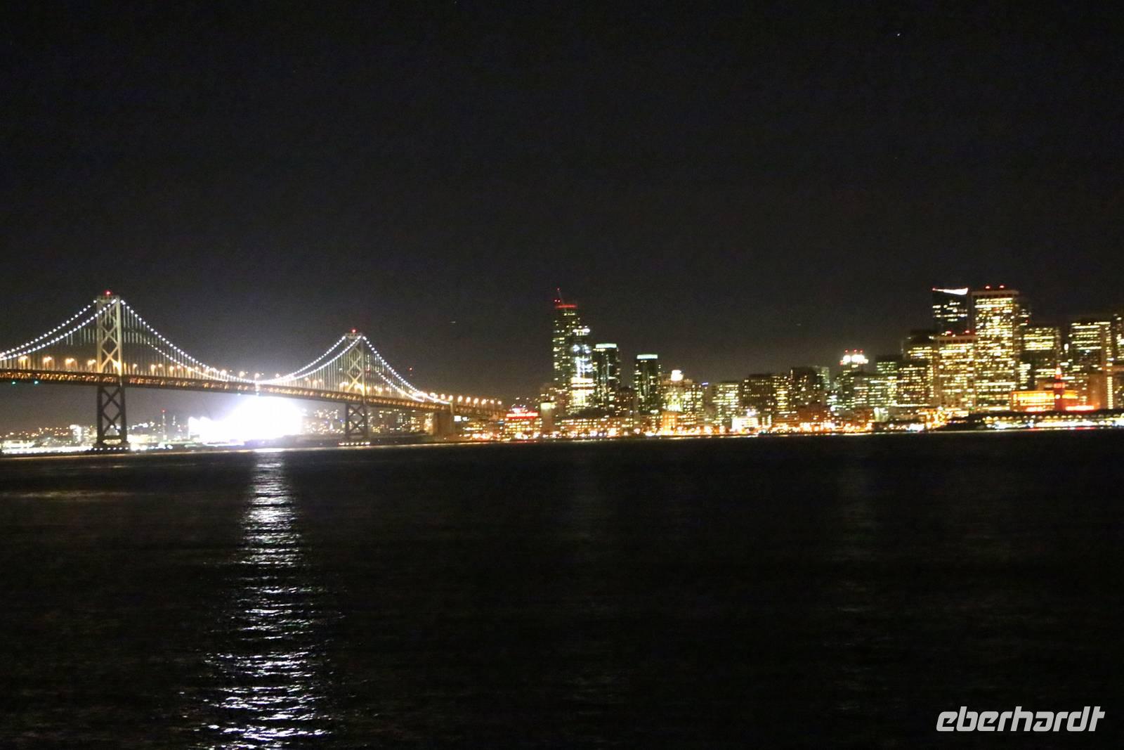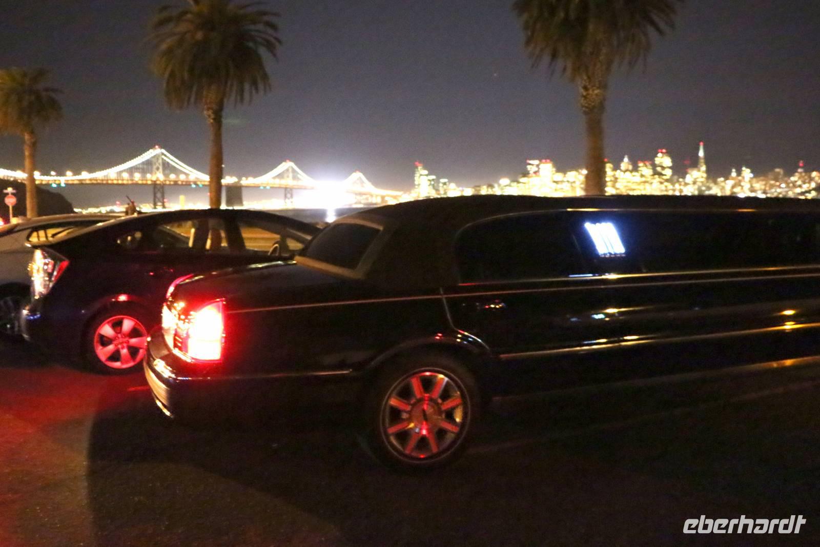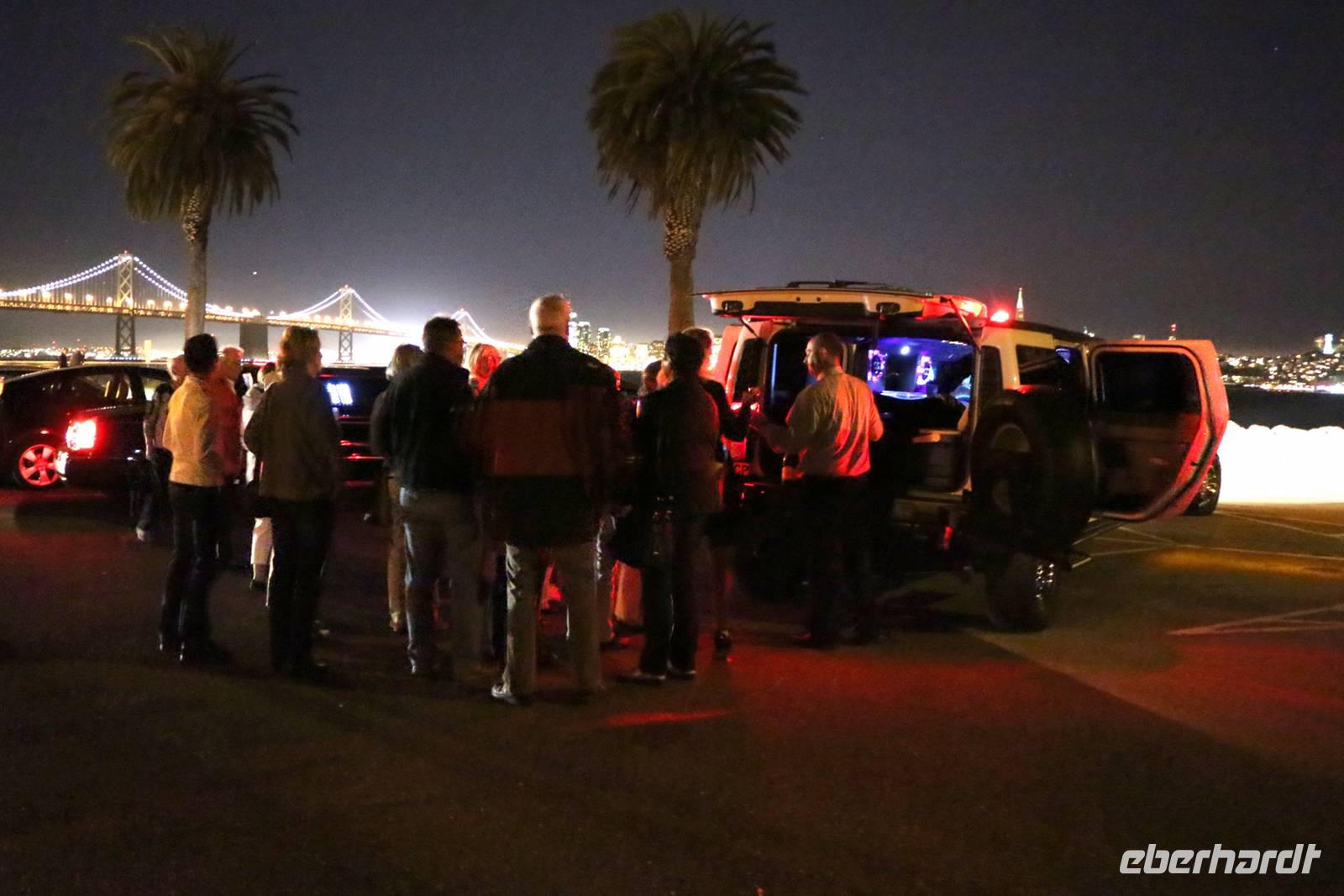 Nach dem Essen erwartet uns der abschließende Höhepunkt unserer Reise: eine Stretchlimousinen-Fahrt durch San Francisco. Vom Pier 39 geht's los durch die nächtliche Stadt, über die San Francisco-Oakland Bay Bridge zur kleinen Insel Treasure Island. Mit Blick auf die beleuchtete Skyline San Franciscos stoßen wir dort mit einem Glas Sekt auf die erlebnisreiche Reise an.