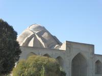 Wir können ausschlafen, es geht erst um zehn los. Wir fahren zur Seidenpapierfabrik Koni Ghil Meros. Wir lernen, wie aufwendig es ist, aus den Zweigen des Maulbeerbaums, Seidenpapier herzustellen. Außer Papier werden hier auch einige Souvenire angeboten, wie Tüten, Kalender, Masken und Püppchen - alles aus Seidenpapier. Nun fahren wir zur Bibi Hanim Moschee, dem größten Projekt von Timur. Dieser hatte nach einem Besuch in Indien, den Plan, die größte und prächtigste Freitagsmoschee seines gesamten Reiches zu errichten. Beeindruckend ist das Bauwerk noch heute. Wir aber lieben die Begegnung mit den Menschen, vor allem den usbekischen Frauen, deren bunte Gewänder wir immer wieder bewundern. Eine Gruppe einheimischer Frauen fällt uns „zum Opfer". Natürlich fragen wir vorher, ob sie sich mit uns fotografieren lassen. Sie scheinen etwas verwundert, haben aber nichts dagegen. Ein tolles Erinnerungsfoto entsteht. Kurz danach erleben wir die gleiche Geschichte, nur umgekehrt. Eine junge Usbekin möchte sich unbedingt mit unserer Gruppe fotografieren lassen. Na klar machen wir da mit. Wir bummeln über den naheliegenden Bazar und kaufen nochmals Tücher, Gewürze und andere Andenken. Am späten Nachmittag fahren wir mit dem Schnellzug nach Taschkent. Nach zwei Stunden treffen wir Umid, der uns am Bahnhof abholt. Unser Abendessen nehmen wir heute in einer kirgisischen Jurte ein. In der Mitte flackert ein Feuer, das eine wohlige Wärme erzeugt. Zum Hauptgang gibt es ein typisch kirgisisches Essen, dass sich „Fünf-Finger" nennt und aus gekochtem Nudelteig mit Rindfleischstückchen besteht. Spät kommen wir im Hotel City Palace an. Hier hatten wir in unserer ersten Nacht etwas Pech mit den Zimmern, was das Management wieder gut machen will, in dem wir heute in großen luxuriösen Suiten übernachten dürfen.