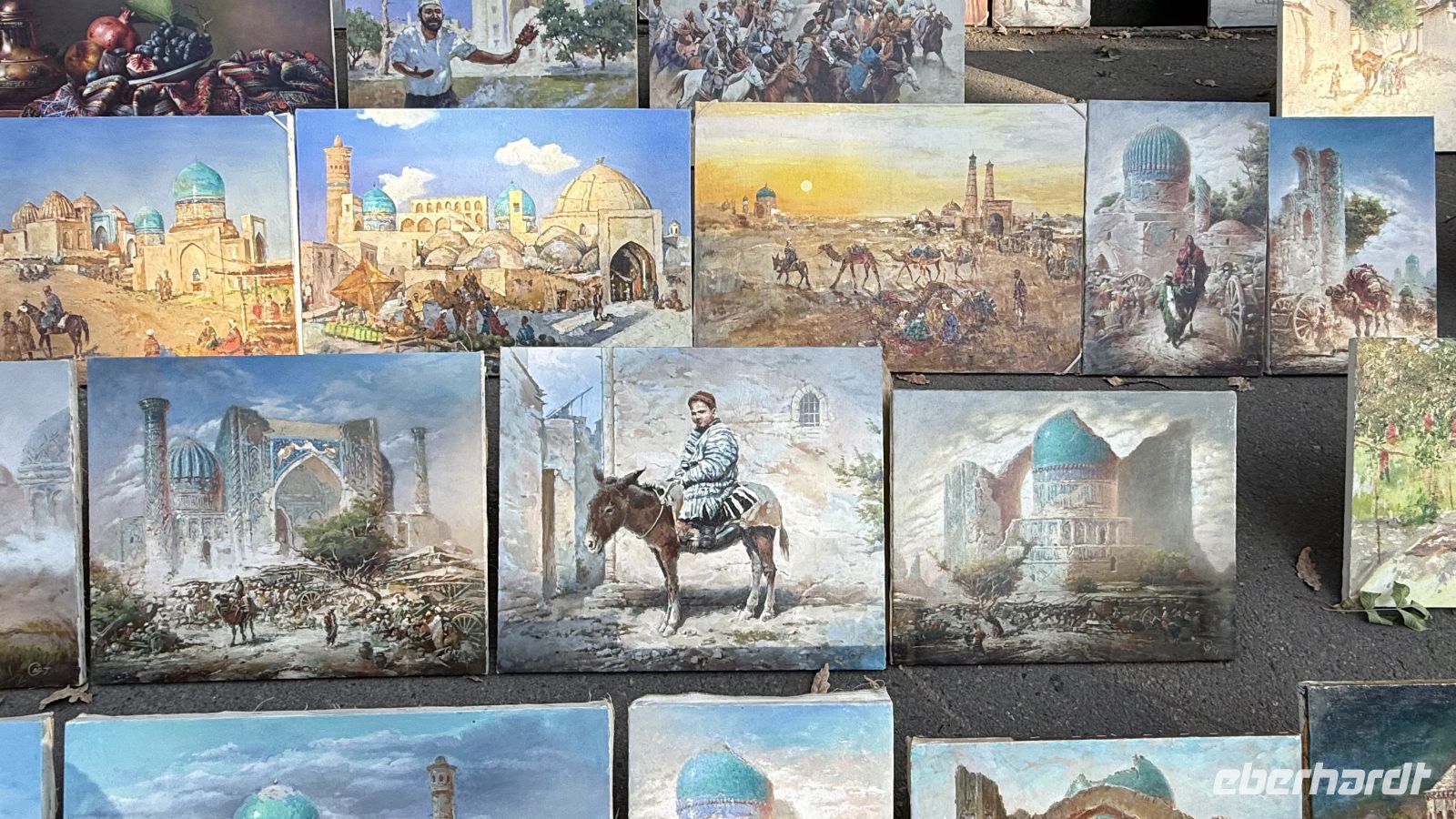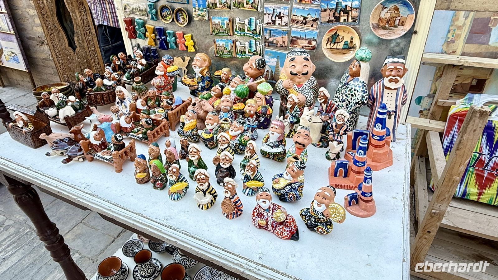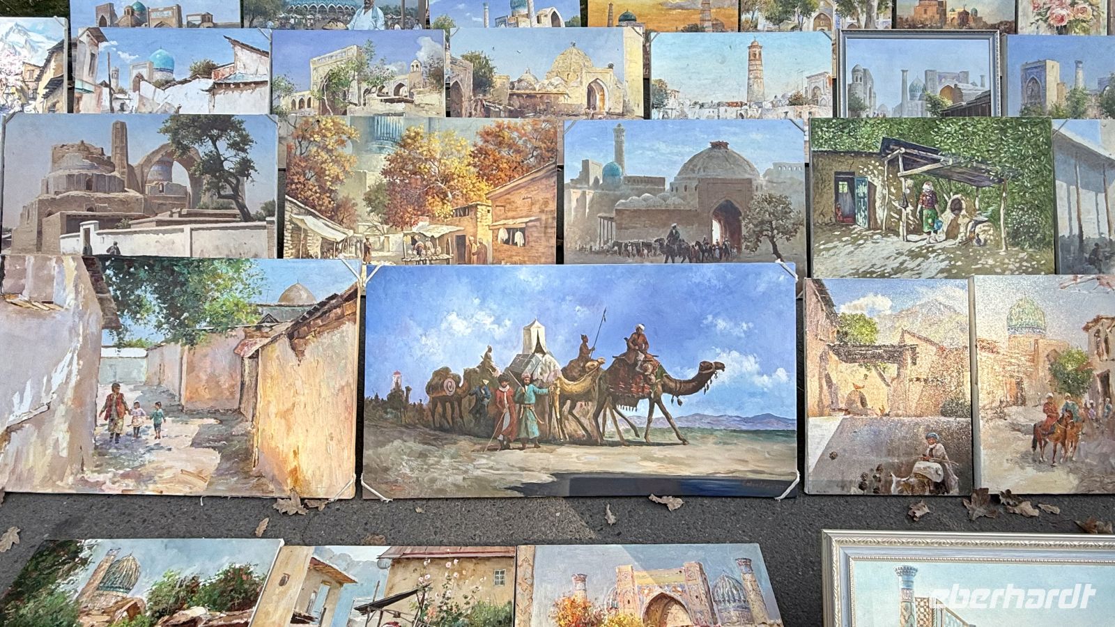 Zur Mittagszeit legten wir eine Pause ein und genossen duftenden usbekischen Tee sowie kleine traditionelle Leckereien. Danach blieb Zeit, durch die Basare und Handwerksmärkte zu schlendern. Dort entdeckten wir kunstvoll gefertigte Teppiche, handbemalte Keramik, Stickereien und feine Miniaturen – ein Paradies für Liebhaber orientalischer Handwerkskunst.