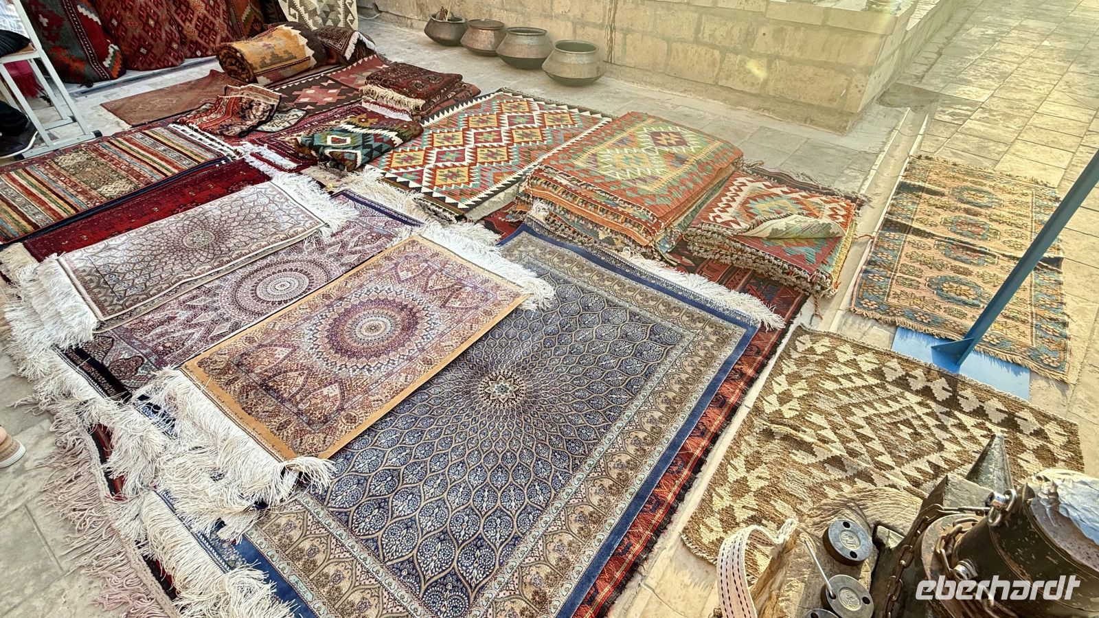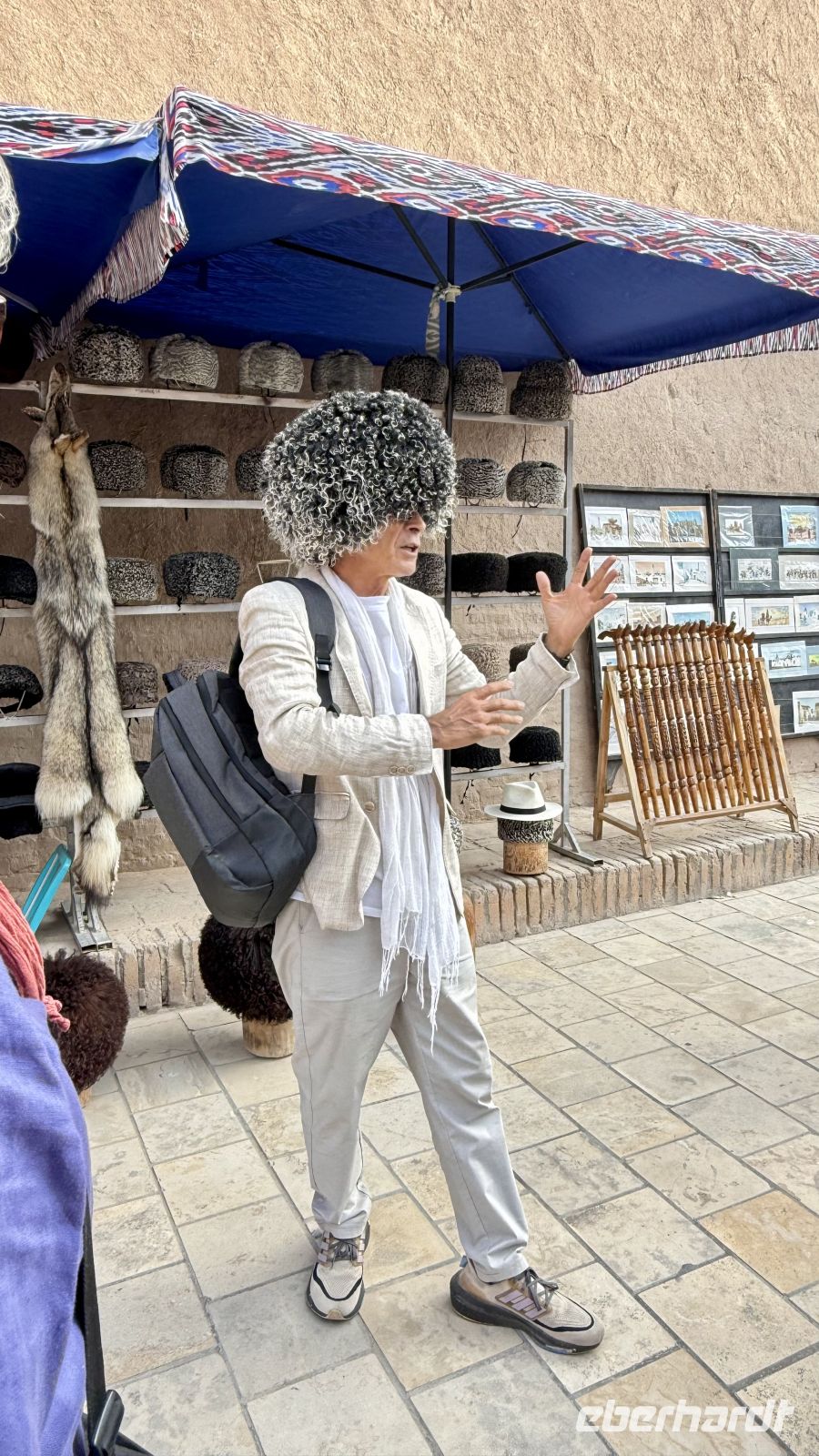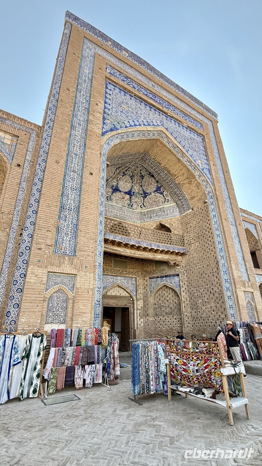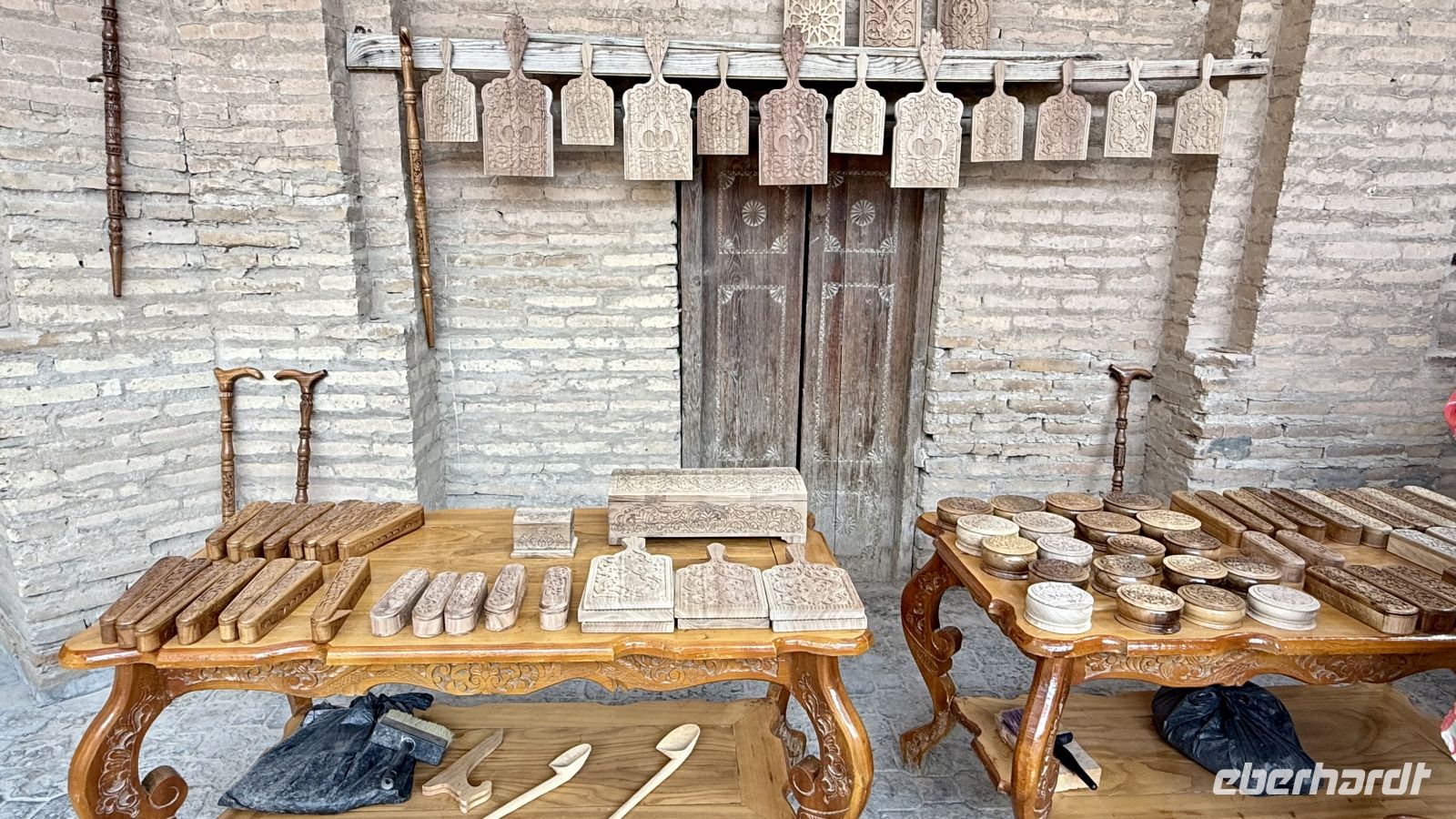 Zur Mittagszeit legten wir eine Pause ein und genossen duftenden usbekischen Tee sowie kleine traditionelle Leckereien. Danach blieb Zeit, durch die Basare und Handwerksmärkte zu schlendern. Dort entdeckten wir kunstvoll gefertigte Teppiche, handbemalte Keramik, Stickereien und feine Miniaturen – ein Paradies für Liebhaber orientalischer Handwerkskunst.