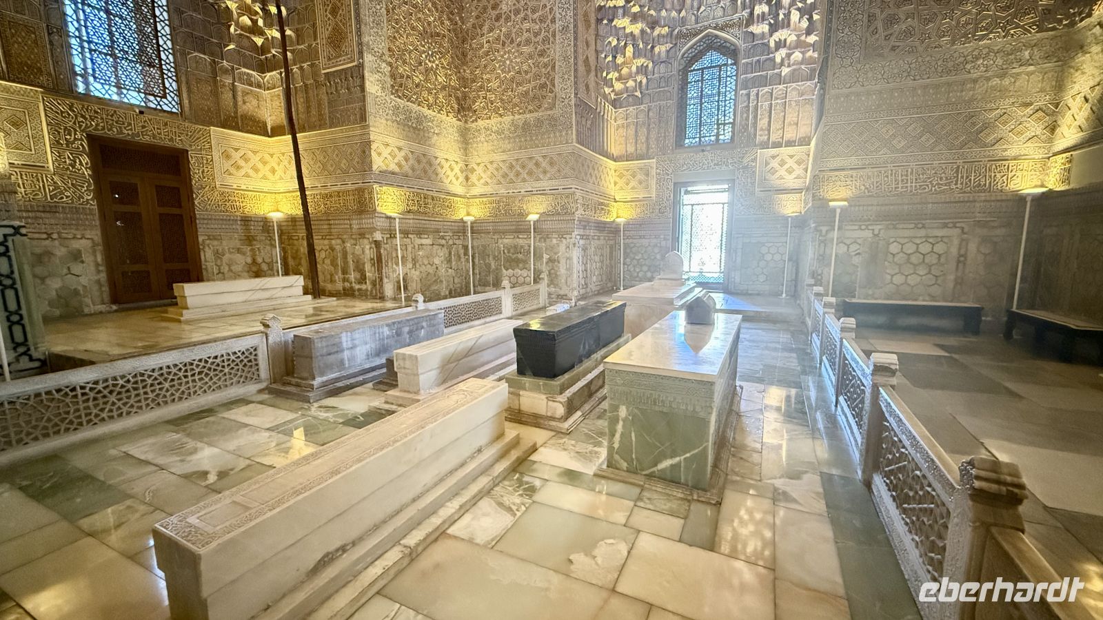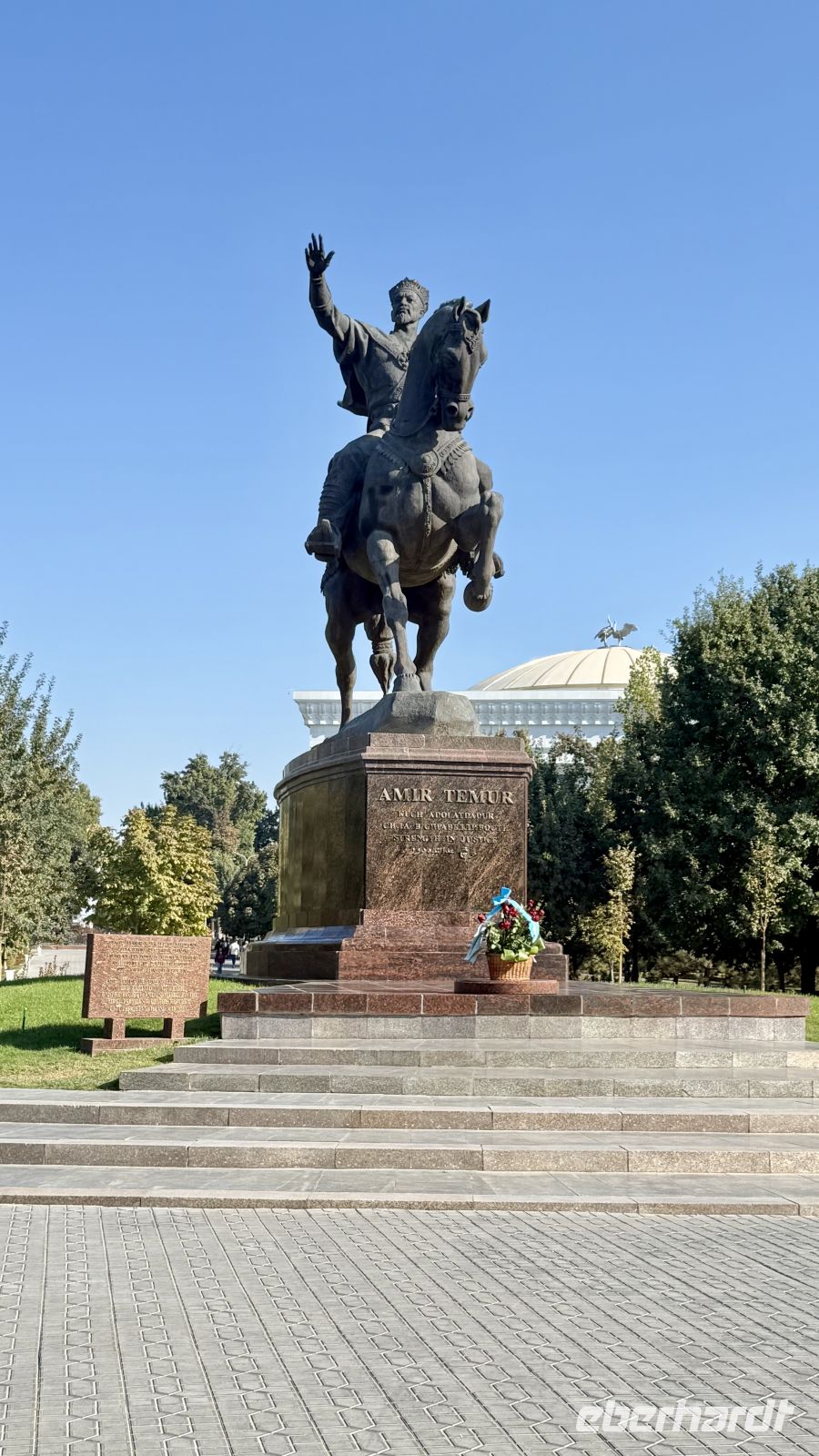 Timur vereinte politische Klugheit, militärisches Genie und schonungslose Härte. Ab den 1360er-Jahren gelang es ihm, ein gewaltiges Reich zu errichten, das sich zeitweise von Indien über Persien, Mesopotamien und das heutige Russland bis an die Grenzen Chinas erstreckte. Seine Eroberungsfeldzüge waren von strategischem Geschick, aber auch von großer Brutalität geprägt. Ganze Städte wurden zerstört, und viele Gegner verloren ihr Leben. Gleichzeitig förderte Timur die Wissenschaften, die Architektur und die Künste – besonders in Samarkand, das er zu seiner prachtvollen Hauptstadt machte. Unter seiner Herrschaft entstand ein kulturelles und architektonisches Erbe von weltweiter Bedeutung. Er ließ beeindruckende Bauwerke wie die Bibi-Chanum-Moschee, das Gur-Emir-Mausoleum (seine eigene Grabstätte) und zahlreiche Medresen errichten, die Samarkand in ein Zentrum der islamischen Hochkultur verwandelten. Timur sah sich selbst als Nachfolger Dschingis Khans und als Verteidiger des Islams. Trotz seiner Härte als Feldherr galt er als kluger Staatsmann, der Handel und Handwerk förderte und Gelehrte aus allen Teilen seines Reiches an seinen Hof einlud. Nach seinem Tod im Jahr 1405 auf einem Feldzug gegen China zerfiel sein Reich rasch, doch sein Name blieb unvergessen. In Usbekistan wird er bis heute als Nationalheld verehrt – ein Symbol für Stärke, kulturellen Aufschwung und die historische Größe des Landes.