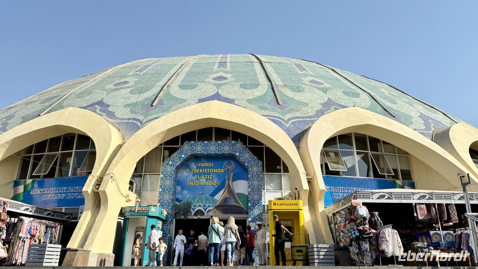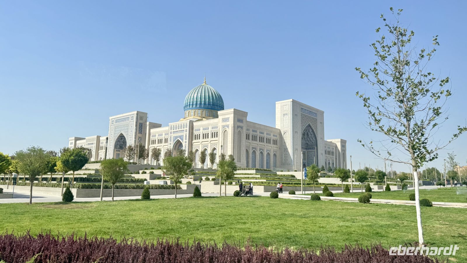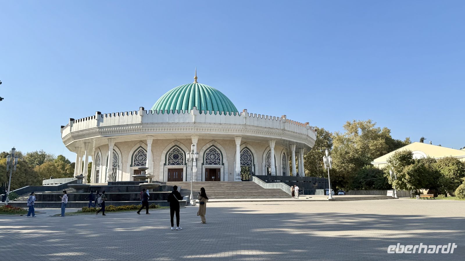 Am Nachmittag unternahmen einige Gäste noch einen kleinen Stadtrundgang. Wir spazierten durch die Fußgängerzone mit ihren gemütlichen Cafés und Kunstständen und erreichten schließlich den Unabhängigkeitsplatz (Mustaqillik Maydoni), das Herz der Hauptstadt. Der Platz symbolisiert den freien und souveränen Staat Usbekistan nach dem Zerfall der Sowjetunion im Jahr 1991. In seiner Mitte steht das beeindruckende Unabhängigkeitsdenkmal, gekrönt von einer bronzenen Kugel mit einer Weltkarte, auf der Usbekistan hervorgehoben ist – ein starkes Symbol für die Eigenständigkeit und den Stolz des Landes.