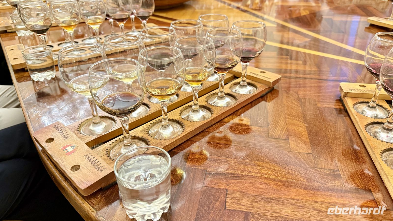 Zum krönenden Abschluss des Tages nahmen wir an einer Weinverkostung teil, bei der wir verschiedene usbekische Weine und Liköre probierten – darunter Riesling, Chardonnay, Cabernet Sauvignon, georgischen Rotwein, Dessertwein, Carnot, Cognac und einen aromatischen Kräuterlikör.