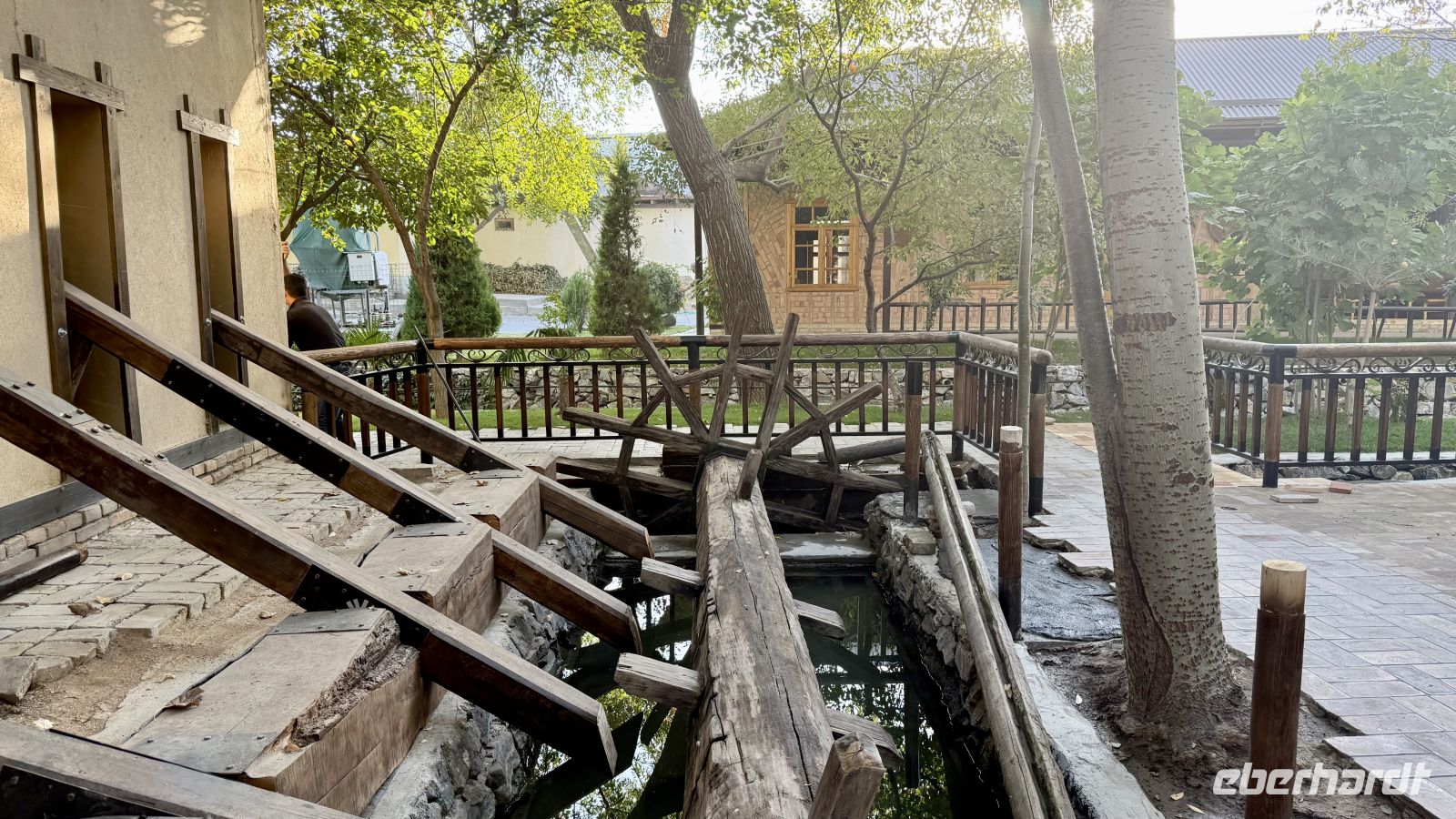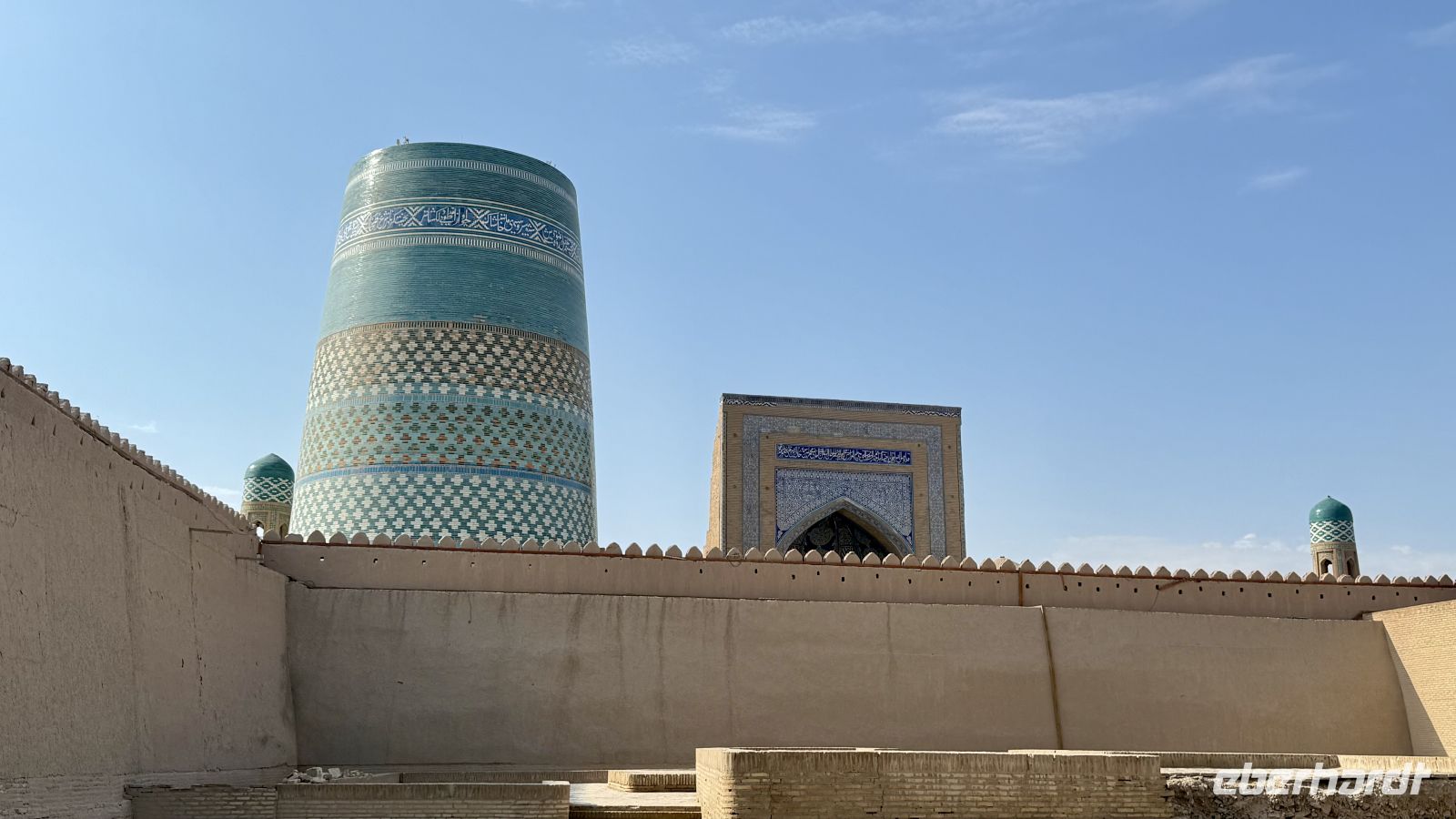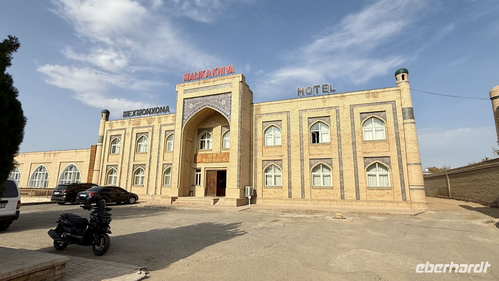 Noch früh am Morgen starteten wir unsere Reise nach Urgentsch. Mit dem Flugzeug konnten wir einen Teil von Usbekistan nun auch aus der Vogelperspektive betrachten. Dort angekommen fuhren wir weiter zu unserer Unterkunft in Chiwa — die historische Altstadt Ichan-Qal’a ist Teil des UNESCO-Welterbes und bekannt für ihre gut erhaltene mittelalterliche Architektur. Hier frühstückten wir erst einmal, bevor unser Stadtrundgang startete. Wir besichtigten die Dschuma-Moschee (Juma Mosque) mit ihren vielen geschnitzten Holzsäulen, die einst Teil eines großen Säulensaales waren. Dann stand das Islam Khodja Minarett und die Madrasa Islam Khodja auf dem Programm: das Minarett ist etwa 44–56 m hoch, mit einer Wendeltreppe innen und einer Aussichtsplattform, von der man einen weiten Blick über Chiwa hat; die Madrasa hat 42 kleine Zellen auf zwei Stockwerken und beherbergt heute das Museum für angewandte Kunst. Auch der Tash-Hauli Palast beeindruckte uns mit seinen drei Innenhöfen, prächtigen Majolika-Fliesen, geschnitzten Holzsäulen, Loggien und den privaten Räumen des Khans sowie dem Harem.