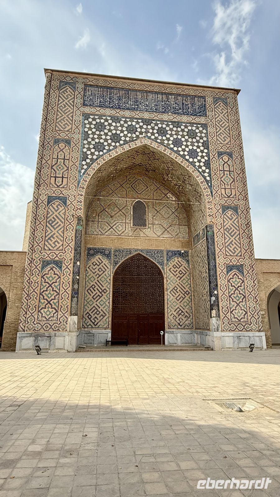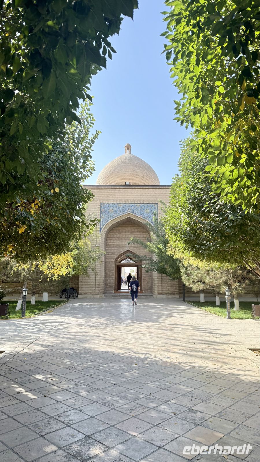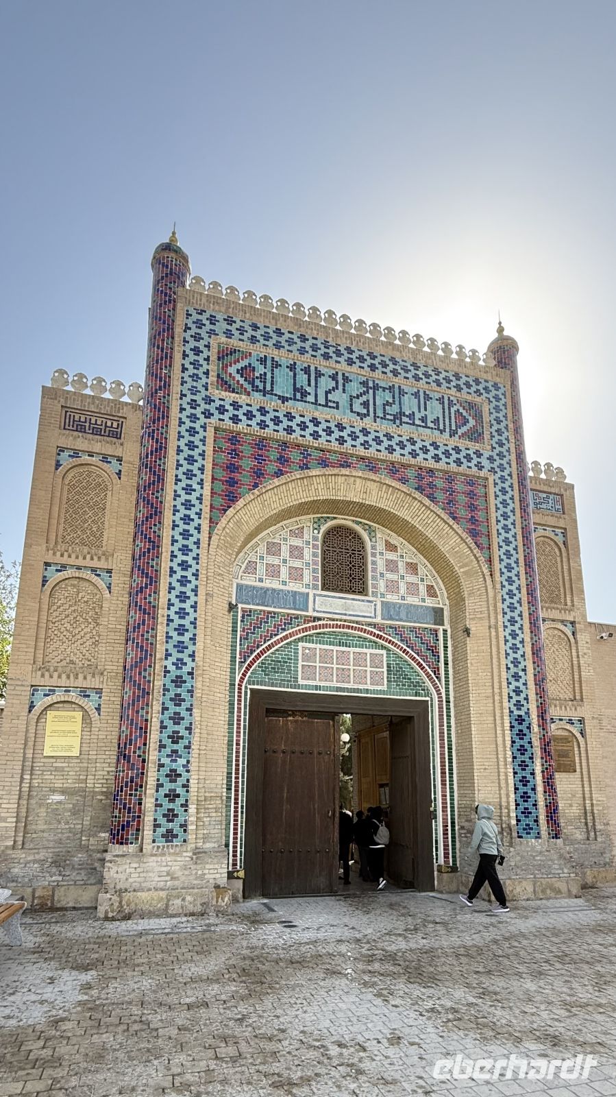 Unser erster Programmpunkt war der Besuch des Mausoleumskomplexes Gur-Emir, der als letzte Ruhestätte Timurs und seiner Nachkommen dient. Das prachtvolle Bauwerk mit seiner türkisblauen Kuppel gilt als eines der schönsten Beispiele timuridischer Architektur. Besonders beeindruckend sind die feinen Stuckarbeiten, Marmorverzierungen und goldenen Ornamente im Inneren. Da wir früh am Morgen dort waren, konnten wir die majestätische Stille dieses Ortes ganz für uns genießen – ein unvergesslicher Moment.