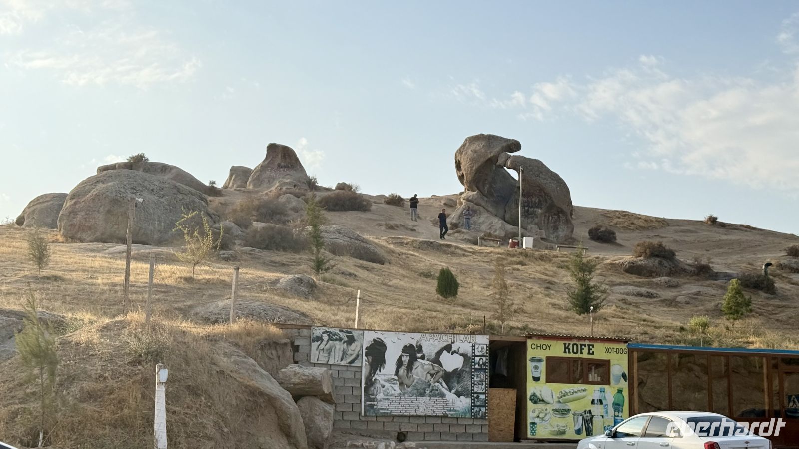 Am heutigen Tag konnten wir etwas länger schlafen – das war auch nötig, denn wir hatten noch Schlaf nachzuholen. Mit neuer Energie starteten wir in den Tag. Unsere Reise führte uns heute durch die endlosen Weiten der Kizilkum-Wüste, eine der größten Wüsten Zentralasiens. Sie liegt zwischen den Flüssen Amu-Darja und Syr-Darja und erstreckt sich über rund 300.000 Quadratkilometer. Die Landschaft ist geprägt von Sanddünen, Halbwüsten und spärlicher Vegetation, die sich erstaunlich gut an die extremen Bedingungen angepasst hat.