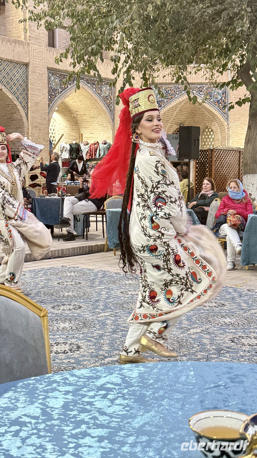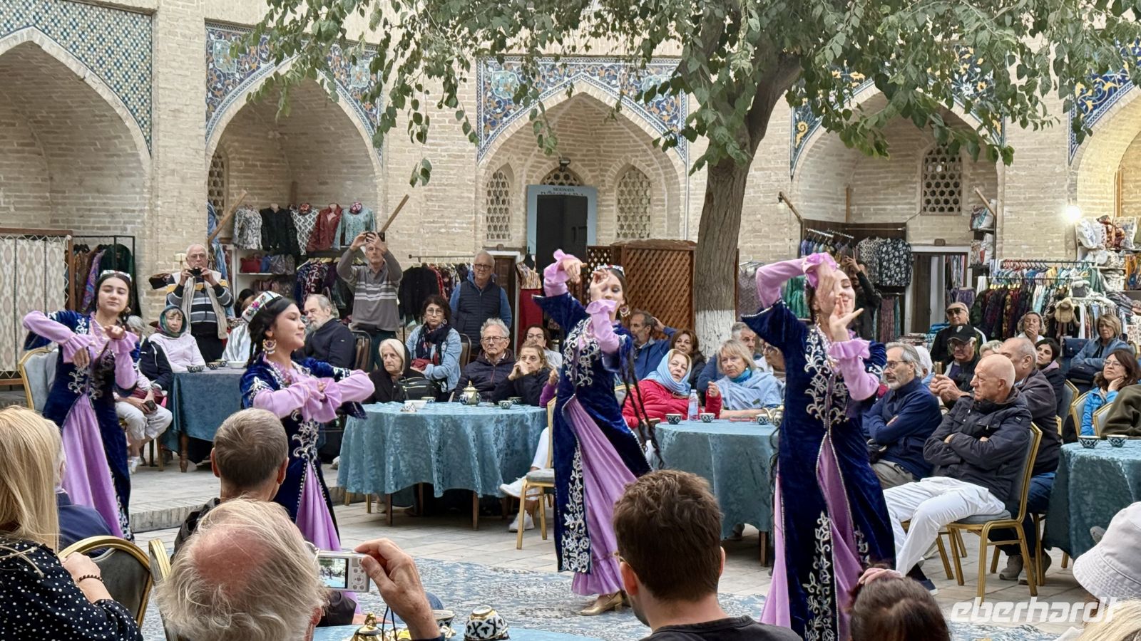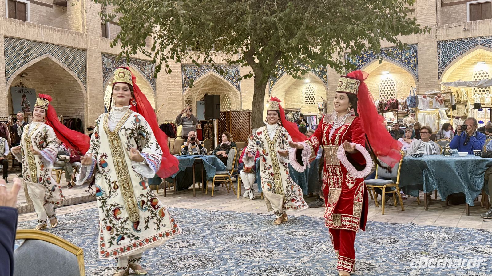 Am Abend stand ein besonderes Highlight auf dem Programm: unser Folklore-Abend. In stimmungsvoller Atmosphäre lauschten wir traditioneller usbekischer Musik, sahen Tänze in farbenprächtigen Kostümen und erhielten einen Einblick in die kulturelle Vielfalt des Landes.