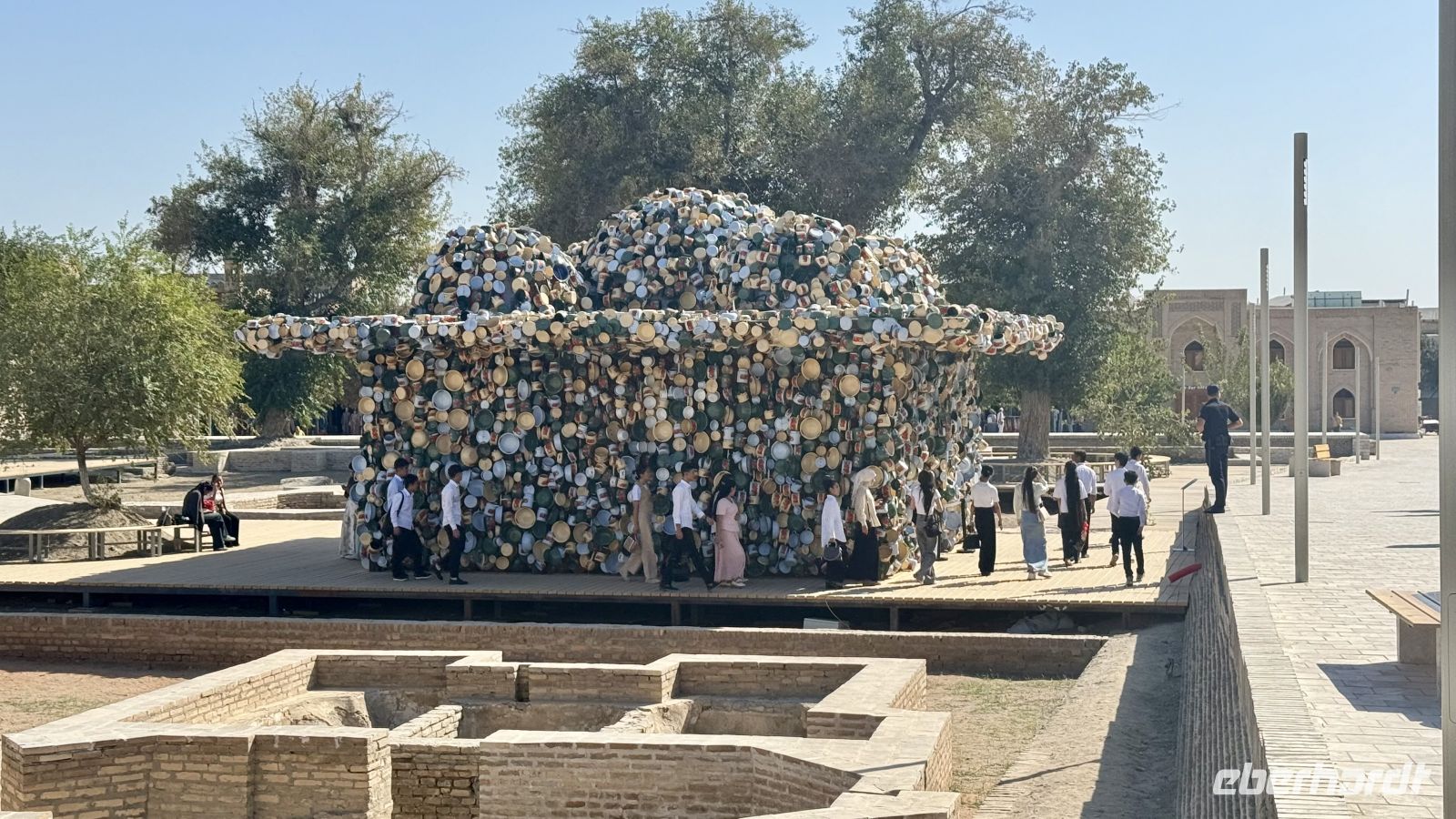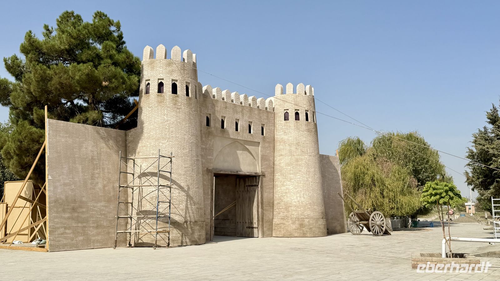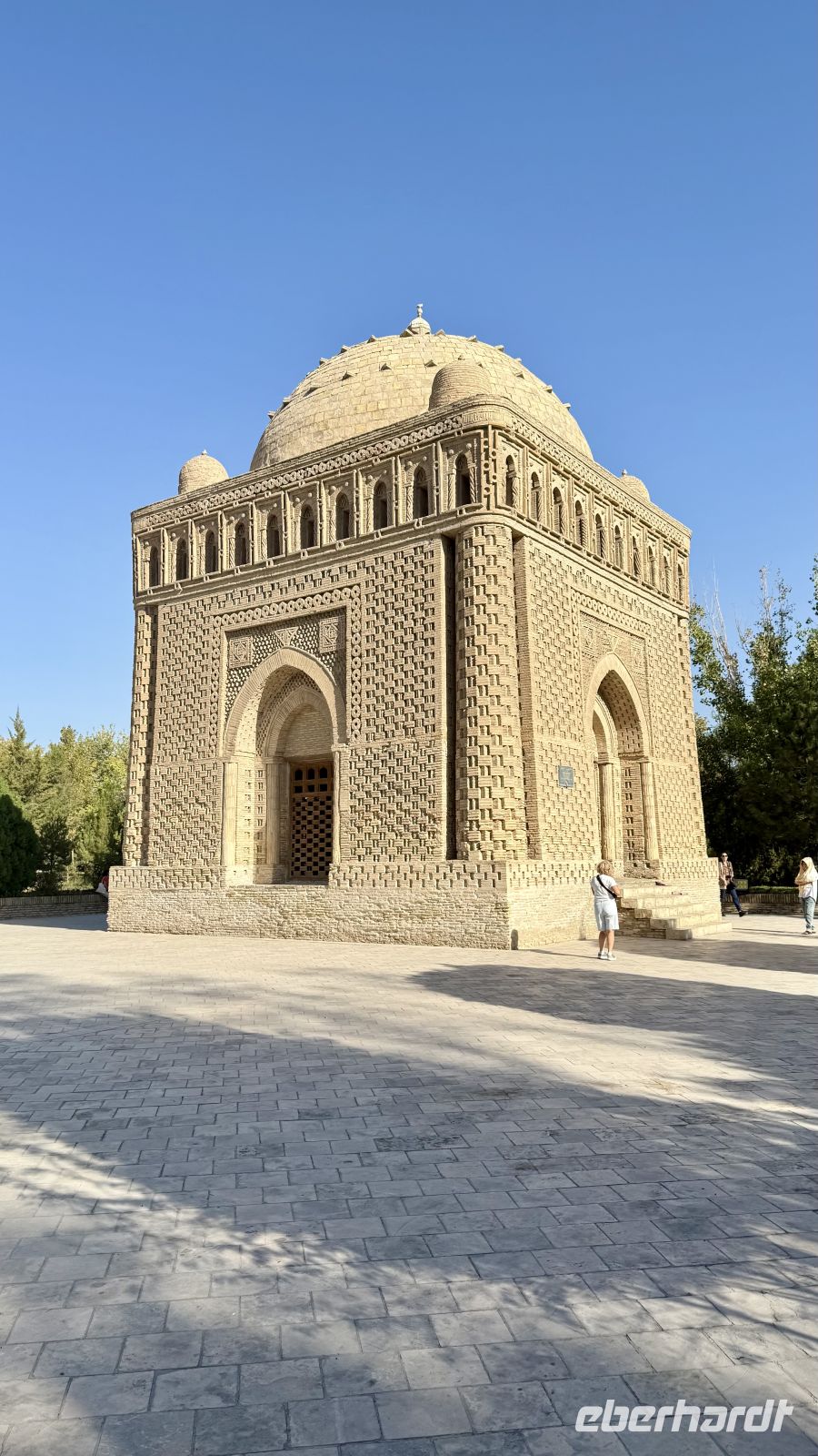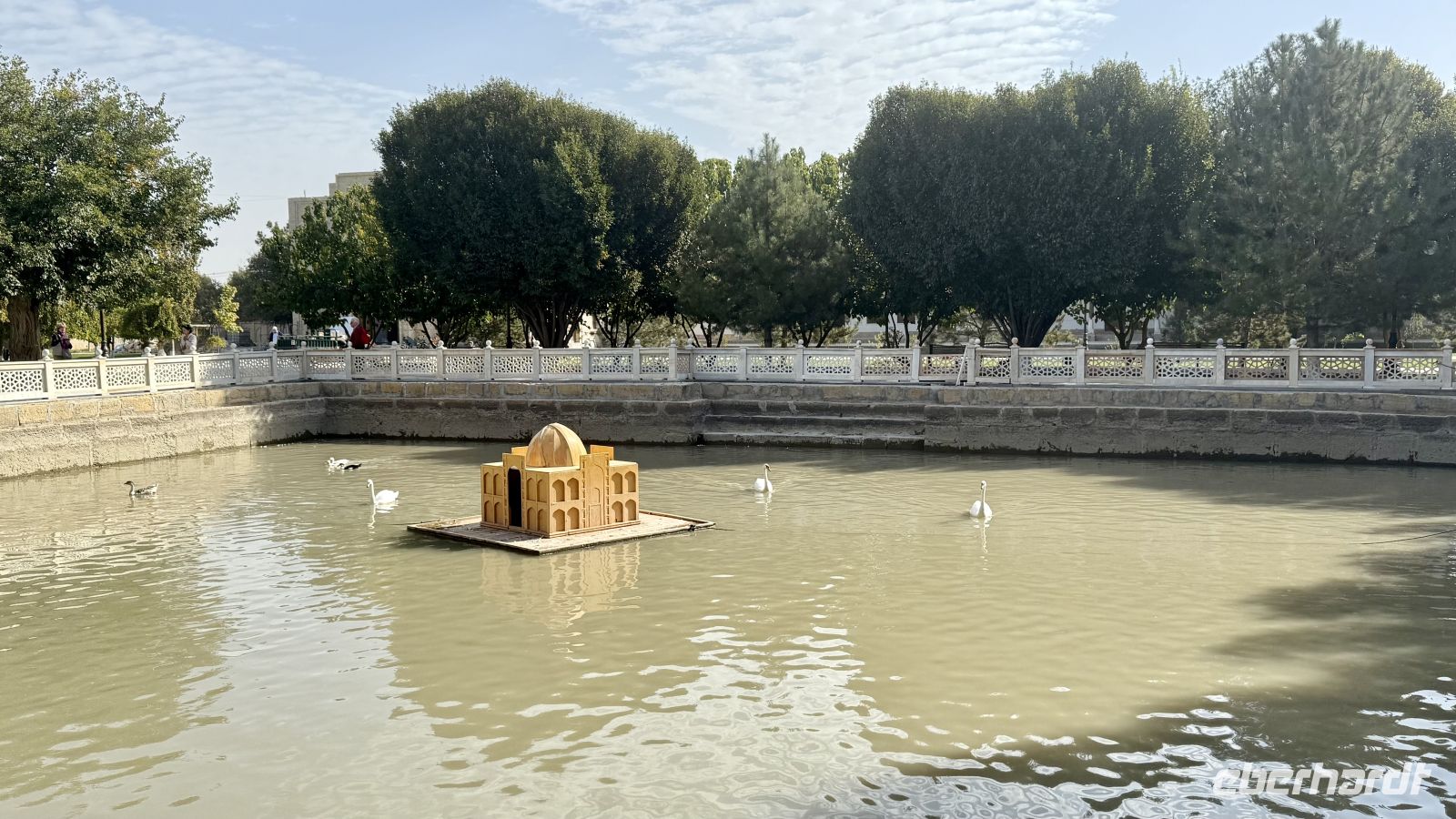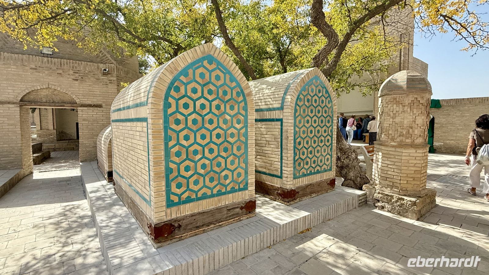 Unser erster Halt war das Mausoleum der Samaniden, eines der ältesten Bauwerke Zentralasiens und ein Meisterwerk islamischer Architektur aus dem 9. Jahrhundert. Es diente als Grabstätte für Ismail Samani, den Gründer der Samaniden-Dynastie, und beeindruckt mit seiner harmonischen Backsteinarchitektur, deren geometrische Muster je nach Lichteinfall unterschiedliche Schattierungen zeigen.
