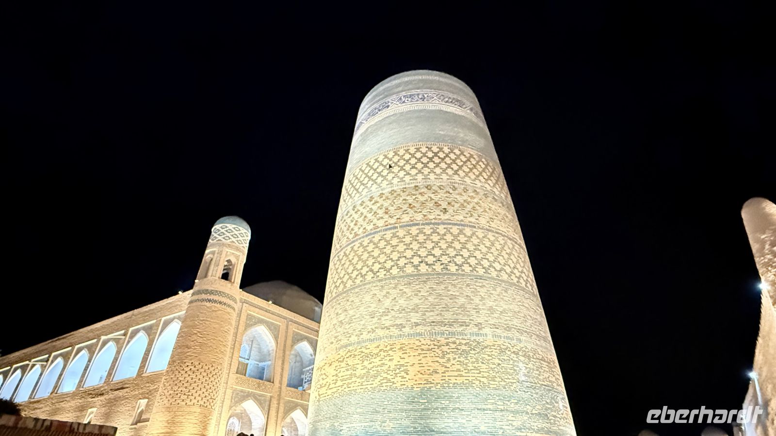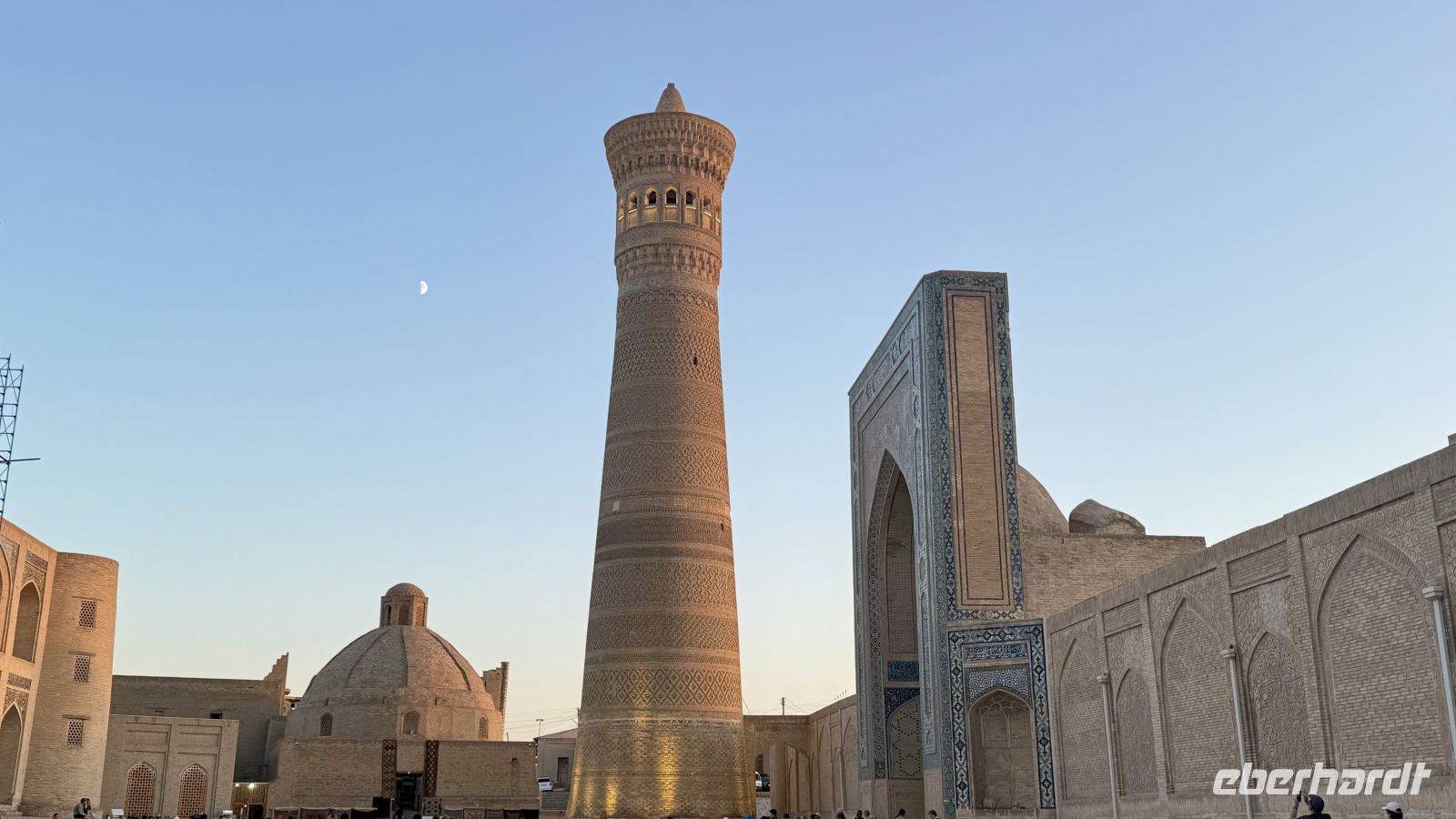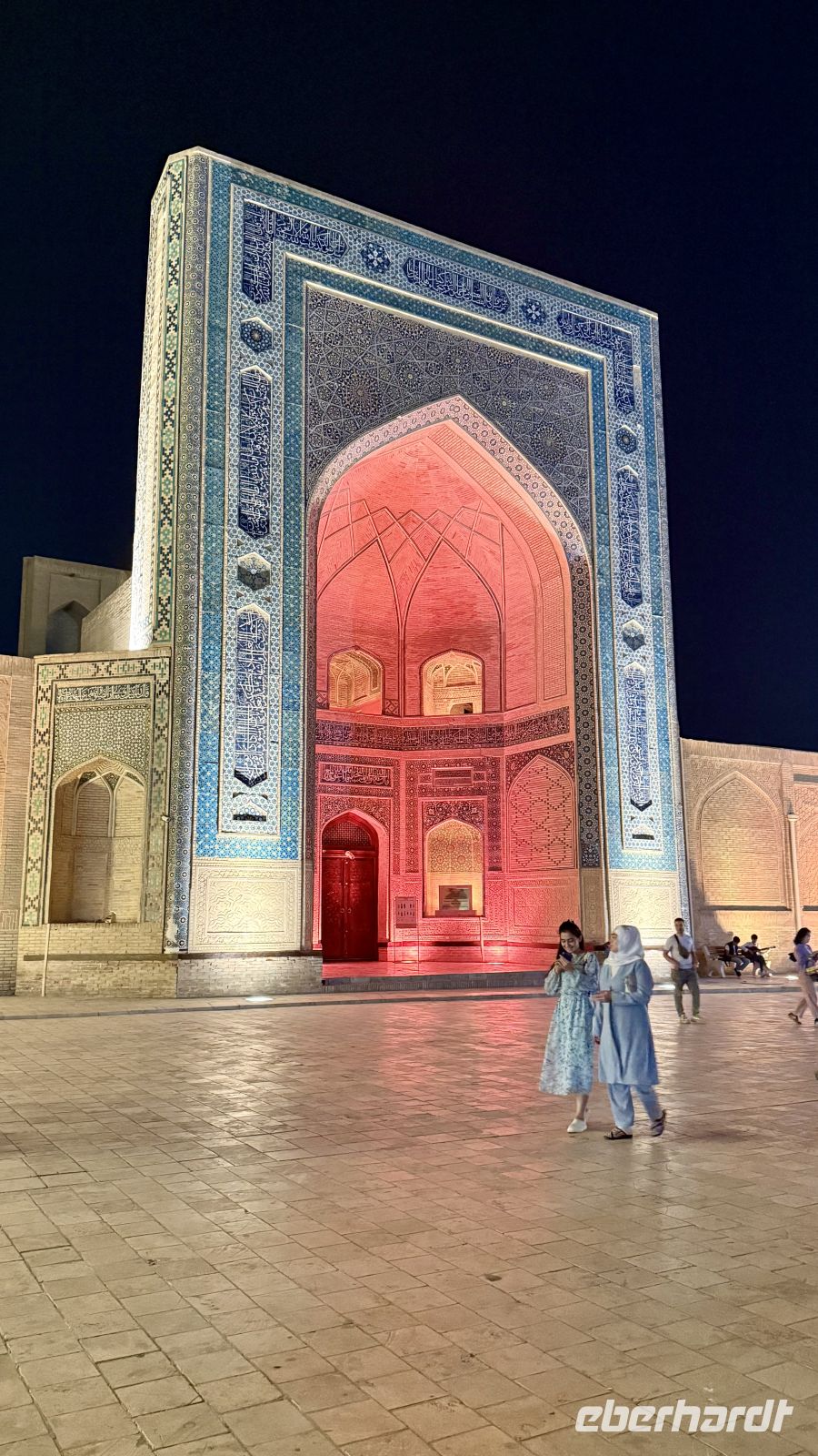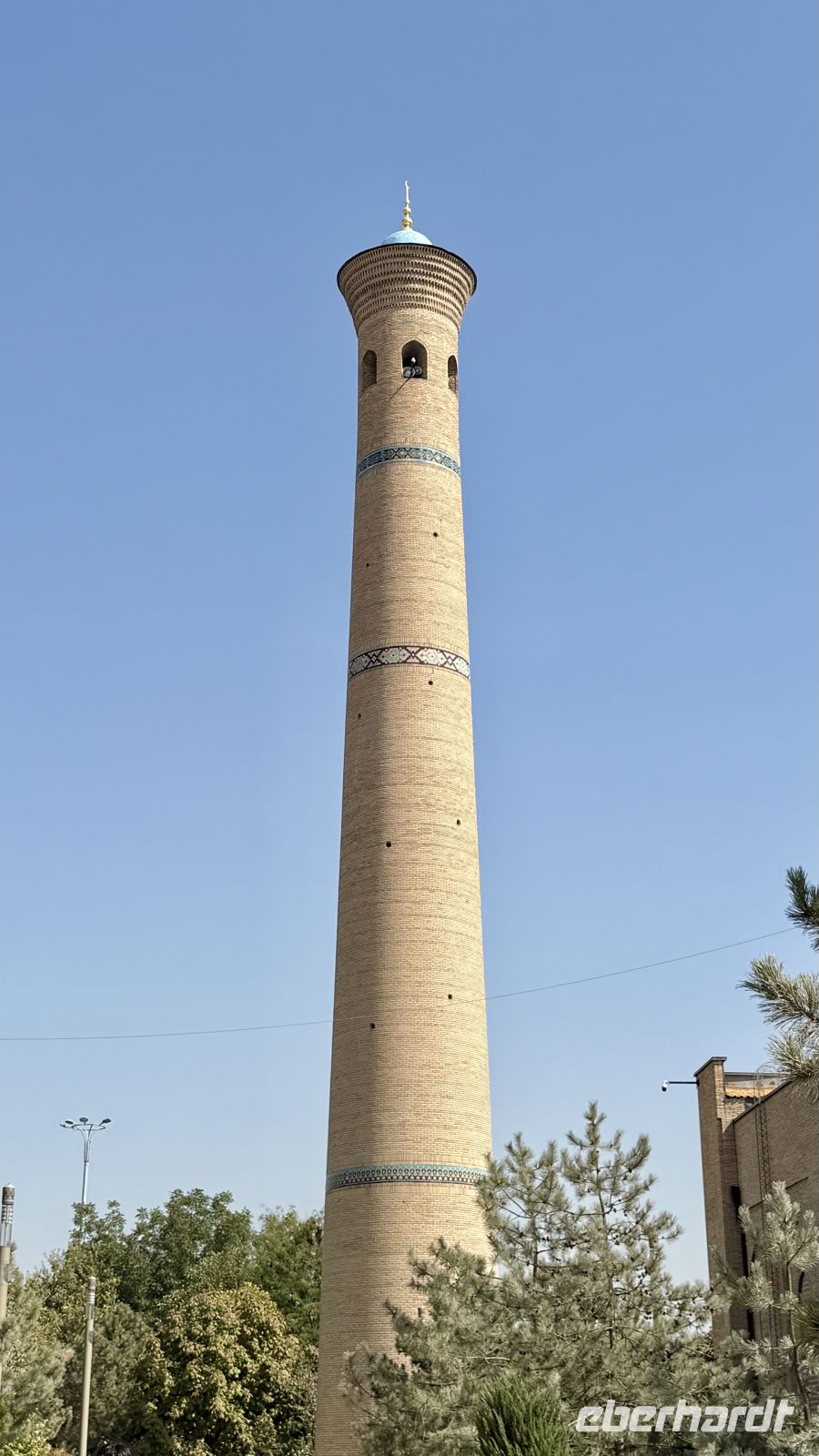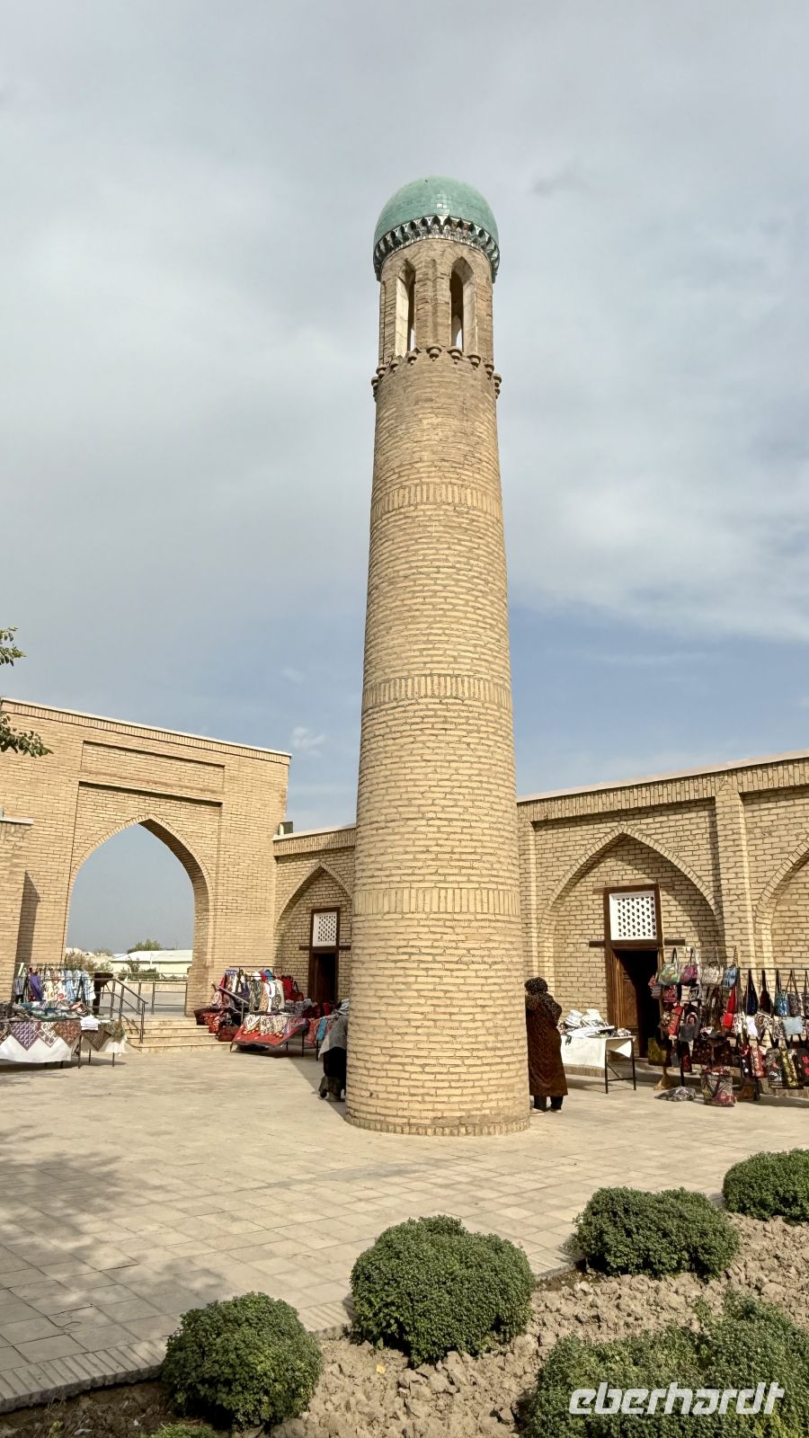 Anschließend besuchten wir die Kalyan-Moschee mit ihrem imposanten Kalyan-Minarett, das rund 46 Meter hoch in den Himmel ragt. Das Minarett stammt aus dem Jahr 1127 und wurde aufgrund seiner Schönheit und Stabilität nie zerstört – selbst Dschingis Khan verschonte es, als er die Stadt einnahm. Die Moschee selbst bietet Platz für bis zu 10.000 Gläubige und ist ein bedeutendes Zentrum des religiösen Lebens in Buchara.