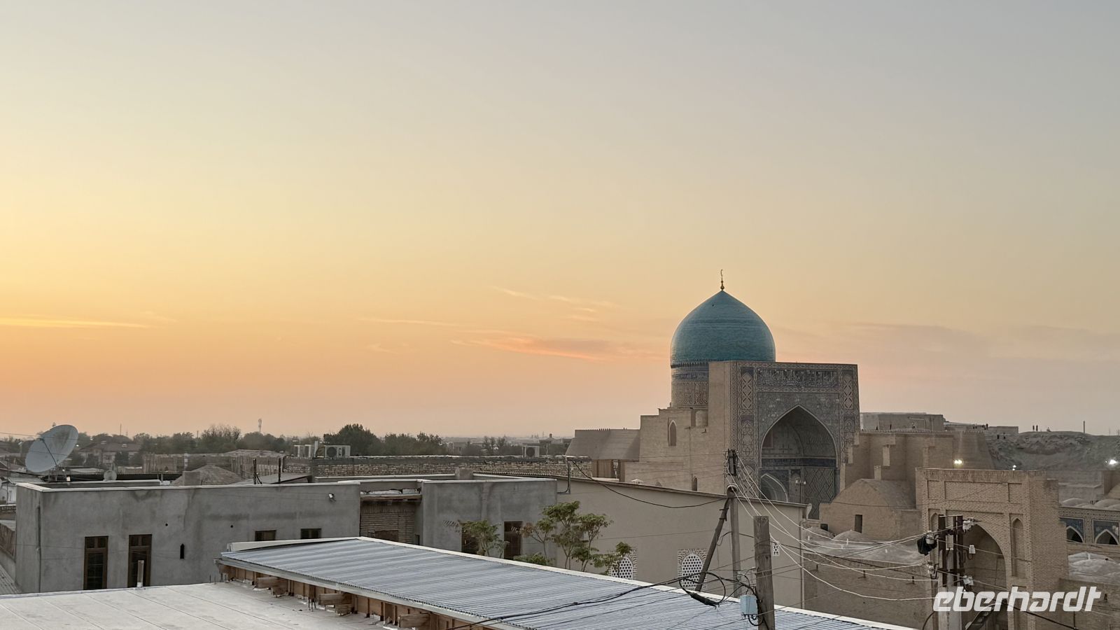 Am Abend erreichten wir schließlich Buchara, eine der geschichtsträchtigsten Städte des Landes, und ließen den Tag bei einem gemeinsamen Abendessen ausklingen. Buchara, eine der ältesten und bedeutendsten Städte entlang der historischen Seidenstraße, liegt im Herzen Usbekistans und gilt als wahres Juwel islamischer Kultur und Architektur. Die Stadt blickt auf über 2.500 Jahre Geschichte zurück und war über Jahrhunderte ein wichtiges Zentrum für Handel, Wissenschaft, Religion und Kunst. Schon früh entwickelte sich Buchara zu einem Schmelztiegel verschiedener Kulturen und zu einem der bedeutendsten Knotenpunkte zwischen Ost und West. Besonders im Mittelalter erlebte die Stadt ihre Blütezeit, als sie unter der Herrschaft der Samaniden, später der Karakhaniden und Timuriden, zu einem geistigen und wirtschaftlichen Zentrum der islamischen Welt aufstieg. Zahlreiche Gelehrte, Theologen und Dichter wirkten hier, darunter der berühmte Arzt und Philosoph Avicenna (Ibn Sina). Buchara wurde zu einem Ort des Wissens, an dem sich Studierende aus dem gesamten Orient versammelten, um in den Medresen – den islamischen Hochschulen – Theologie, Mathematik, Astronomie und Philosophie zu studieren.