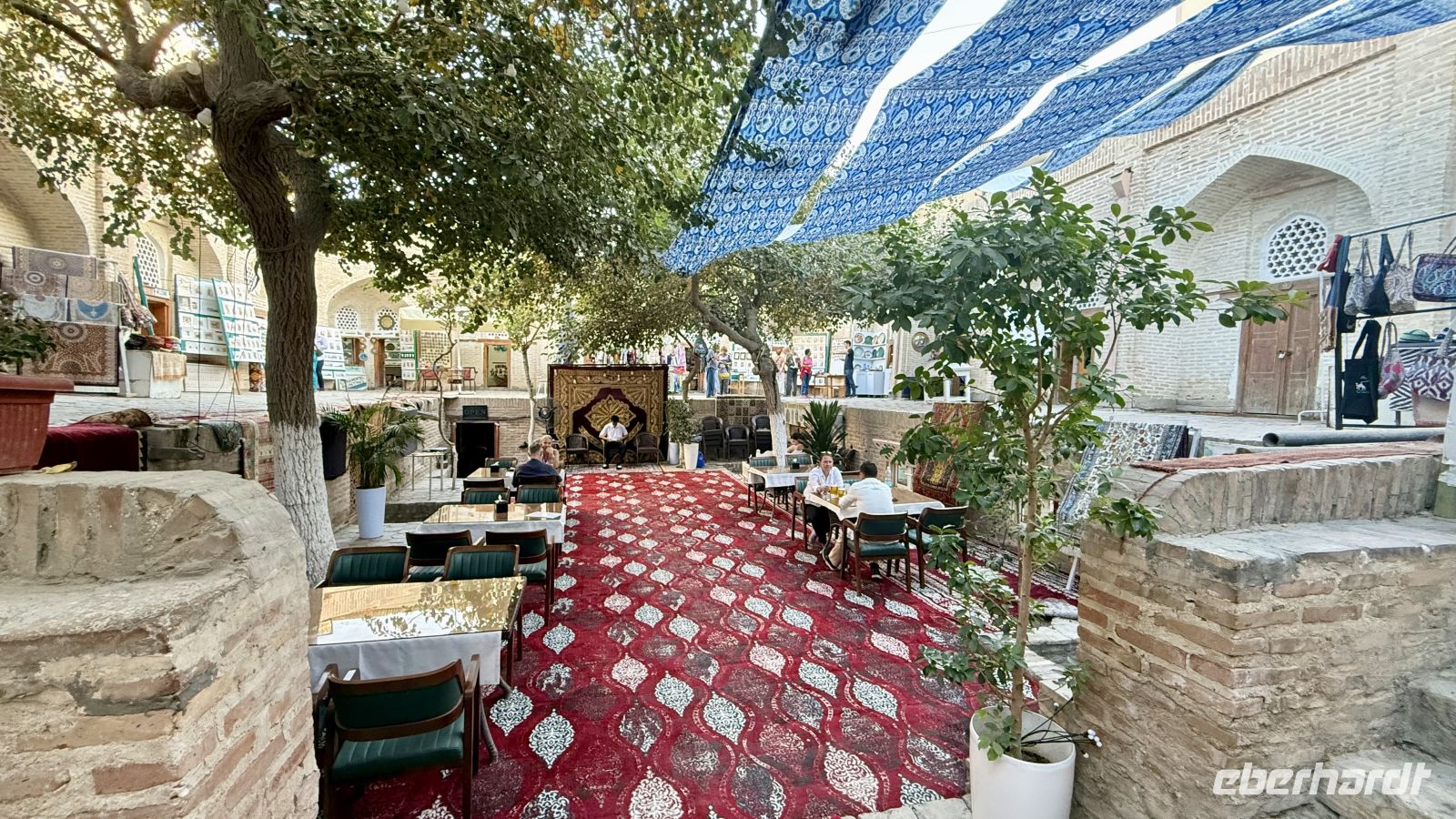 Gegen Mittag kehrten wir nach Buchara zurück. Es blieb ausreichend Zeit, um in einem der gemütlichen Innenhöfe zu Mittag zu essen, einen Tee zu trinken oder einfach durch die Gassen zu bummeln und das Leben der Stadt auf sich wirken zu lassen.