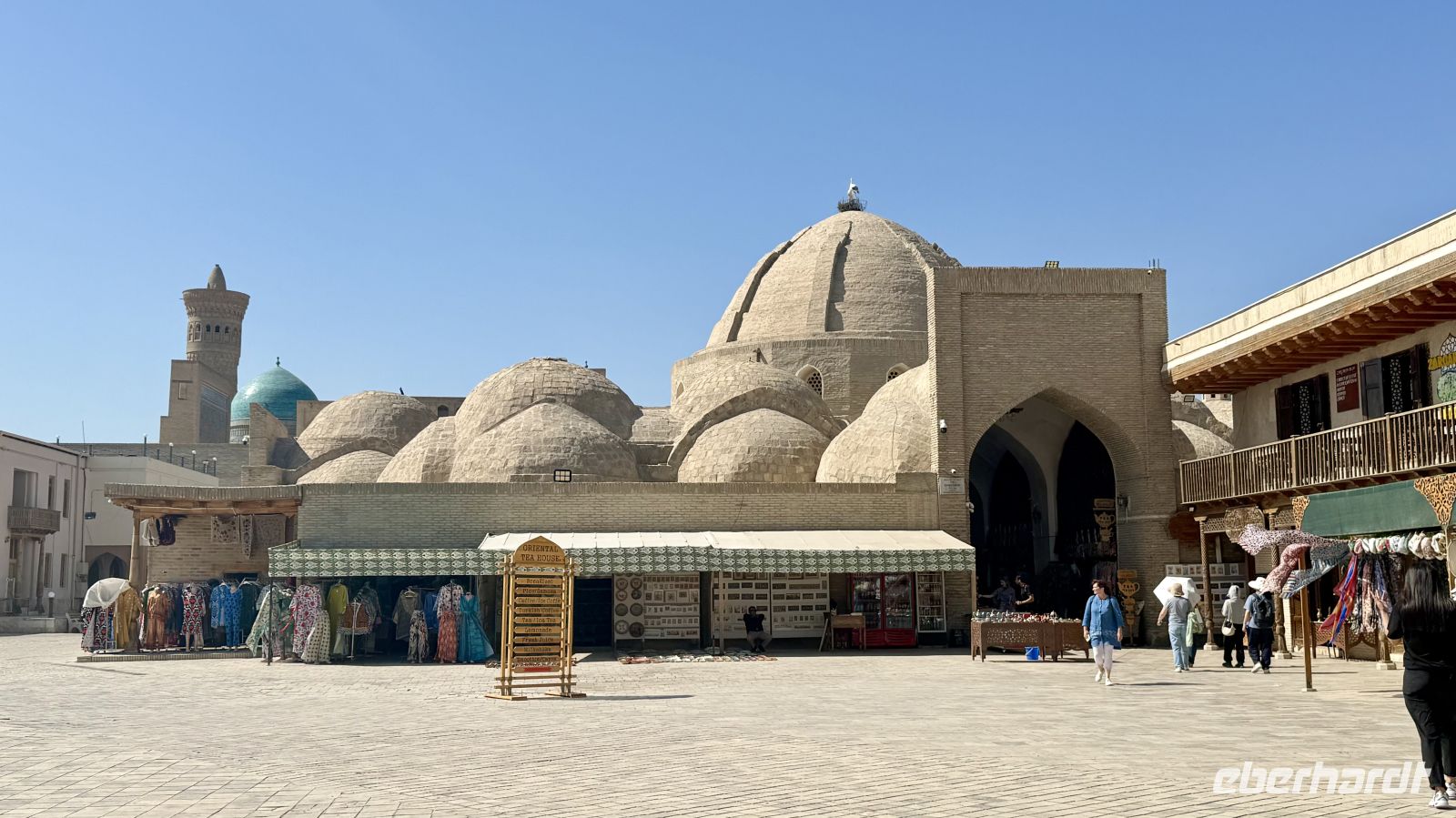 Den heutigen Tag nutzten wir, um Buchara in all seiner Vielfalt kennenzulernen. Zu Fuß erkundeten wir die Altstadt, die als eine der ältesten und besterhaltenen Städte der Seidenstraße gilt und seit 1993 zum UNESCO-Weltkulturerbe gehört.
